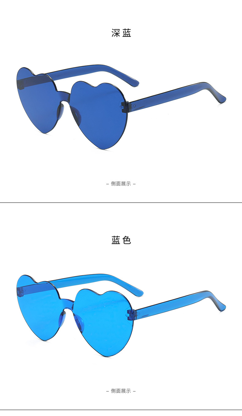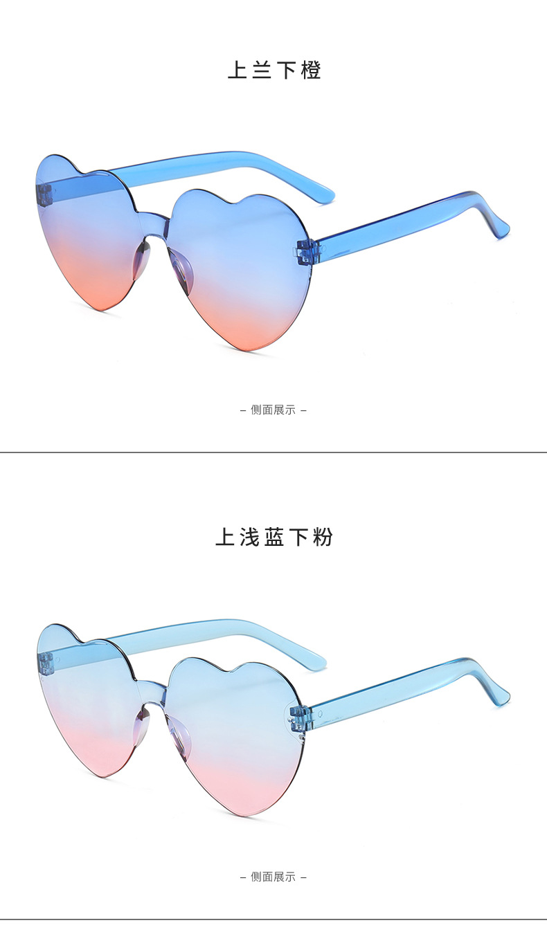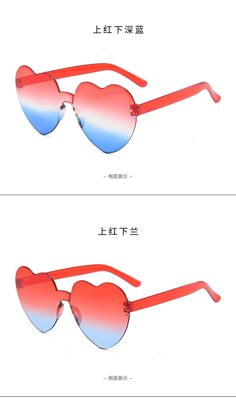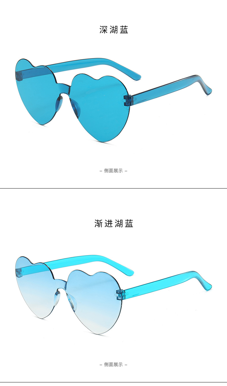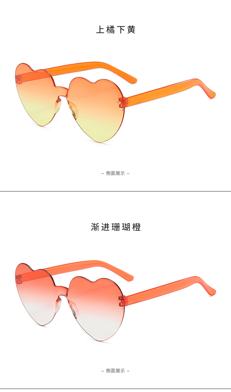 新款跨境桃心太阳镜爱心眼镜欧美潮流无框连体海洋片炫目色彩墨镜