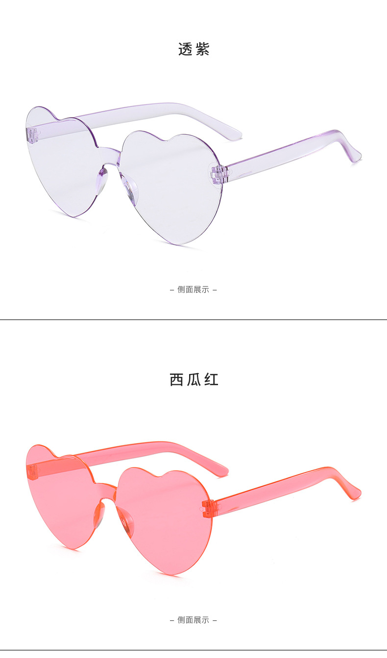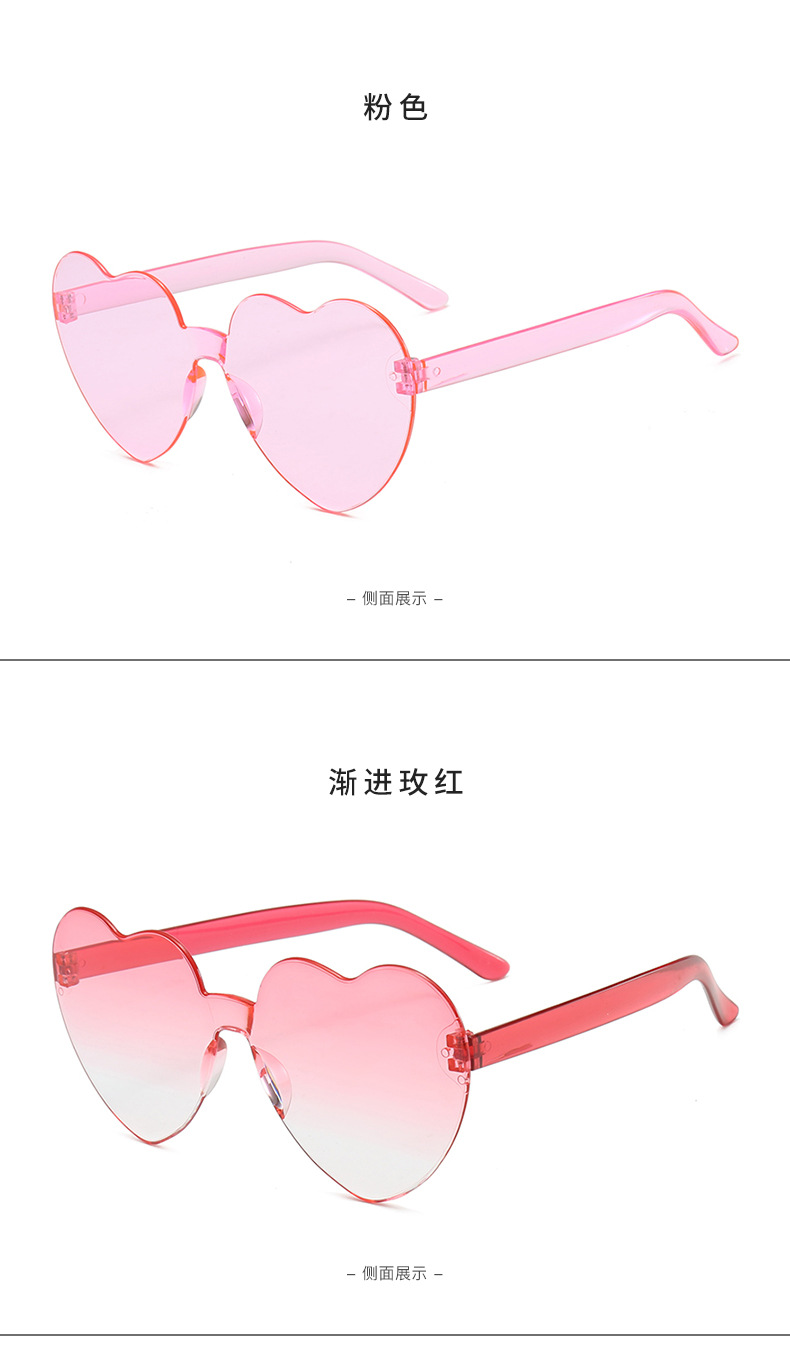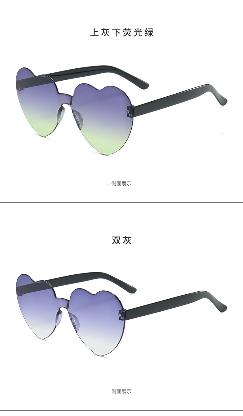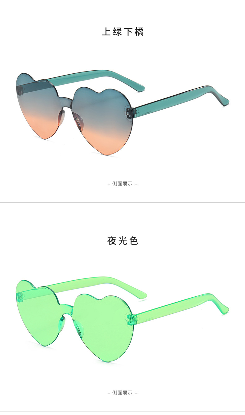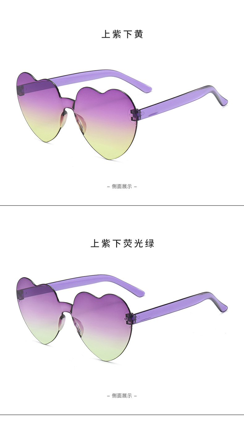 新款跨境桃心太阳镜爱心眼镜欧美潮流无框连体海洋片炫目色彩墨镜