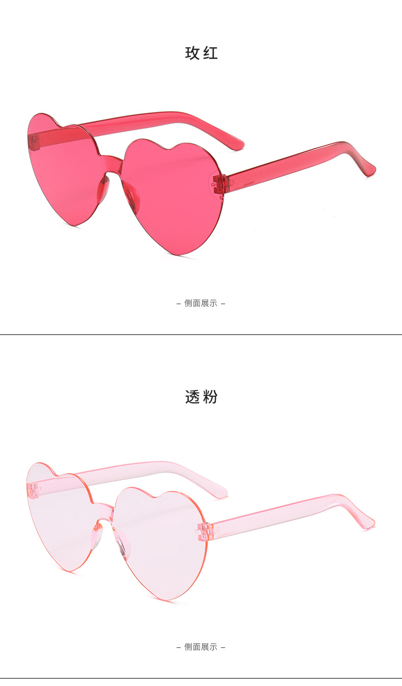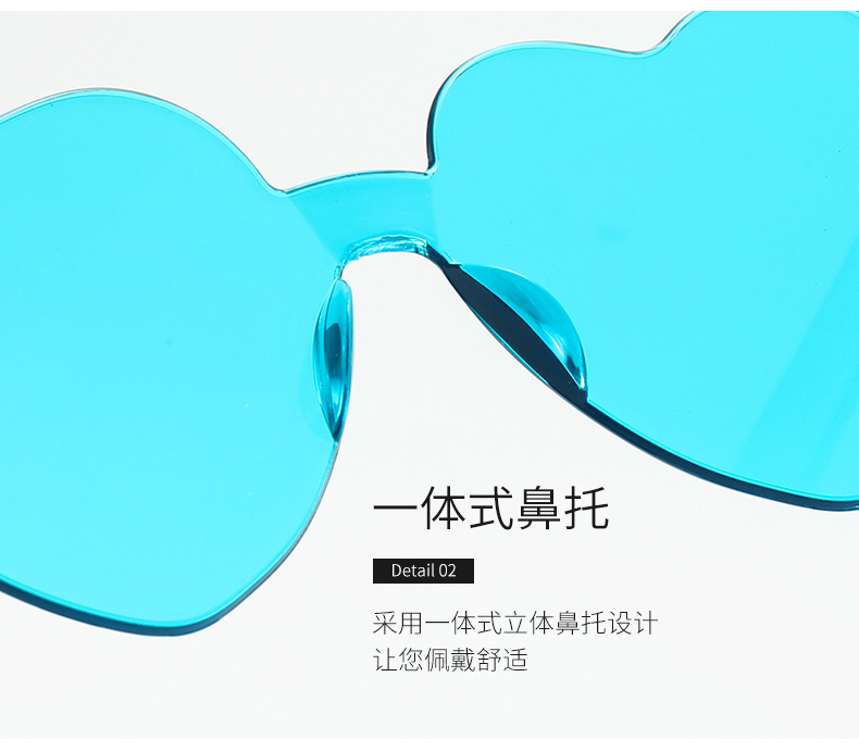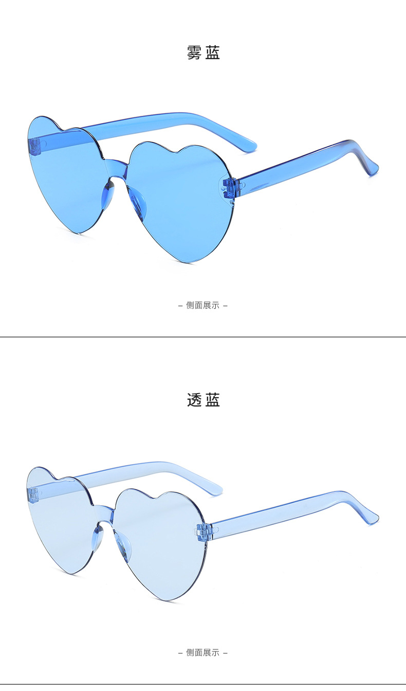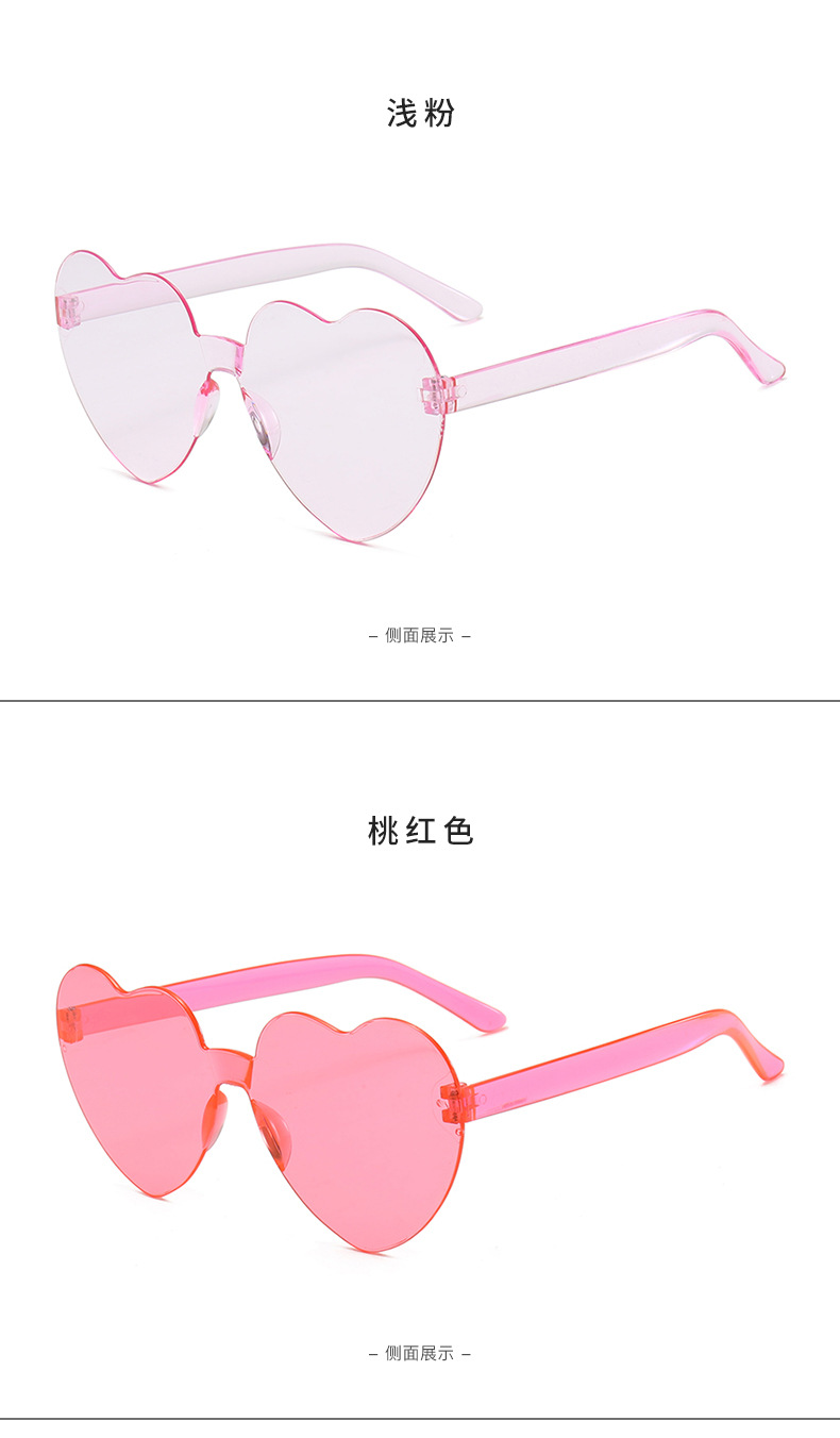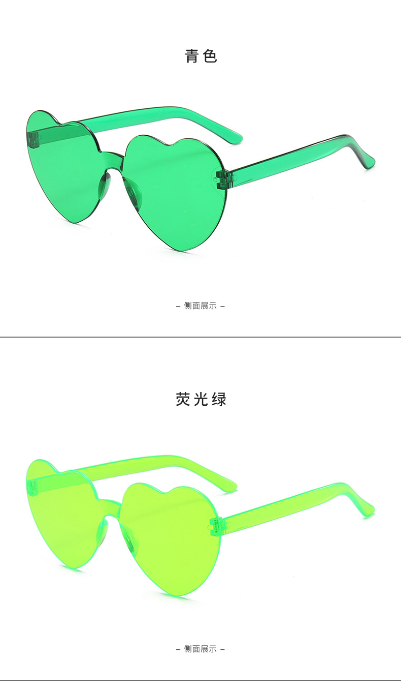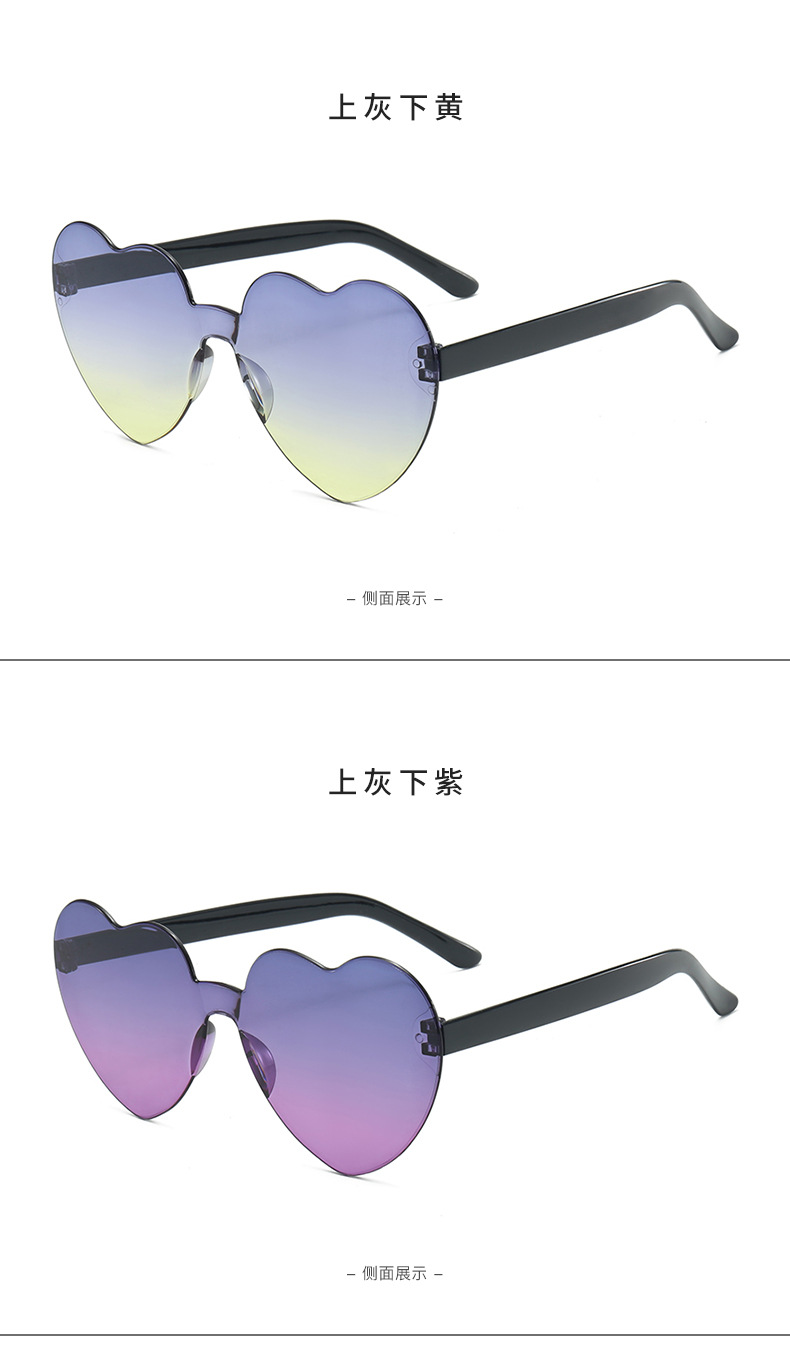新款跨境桃心太阳镜爱心眼镜欧美潮流无框连体海洋片炫目色彩墨镜