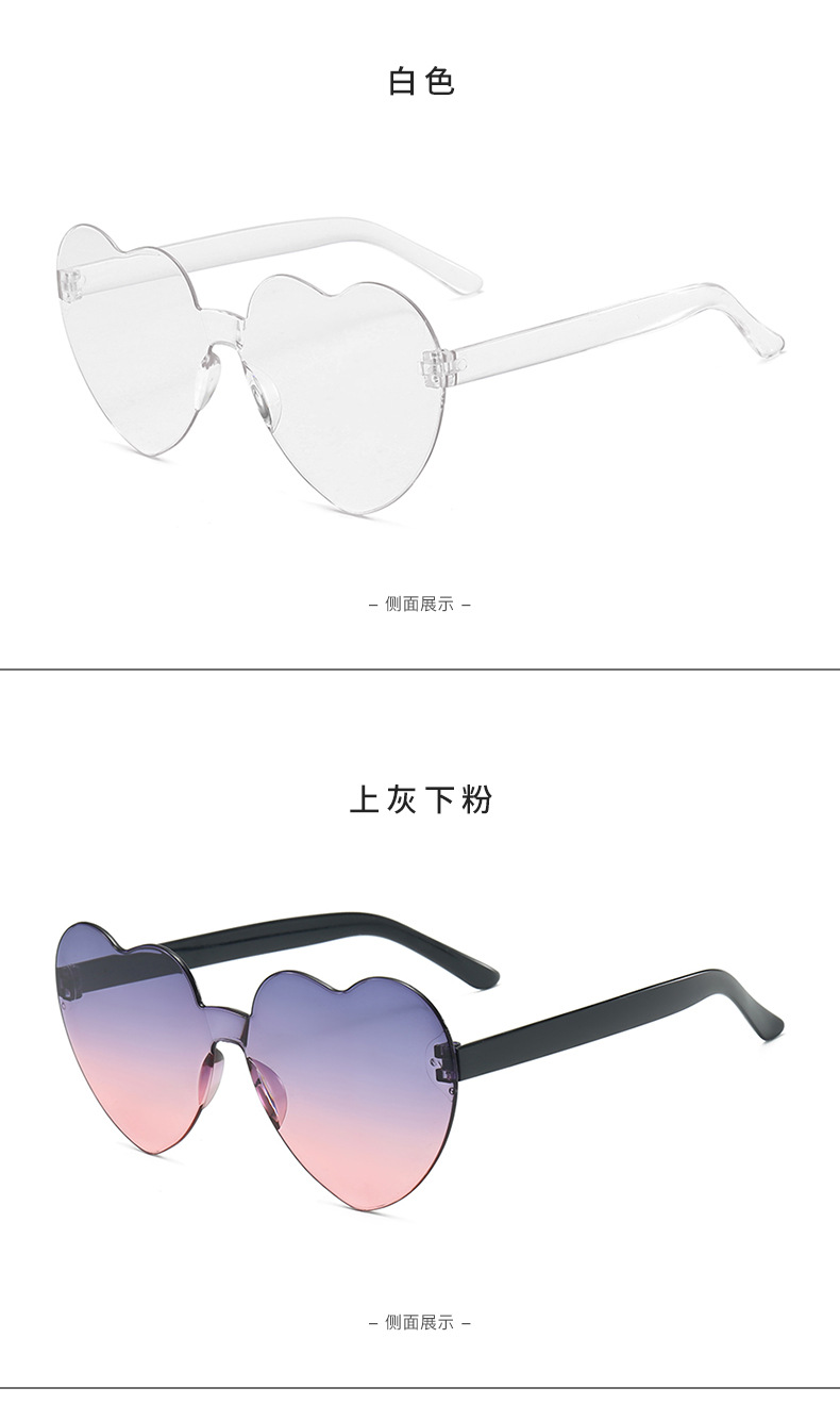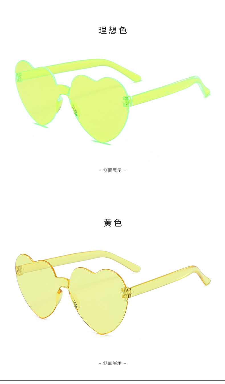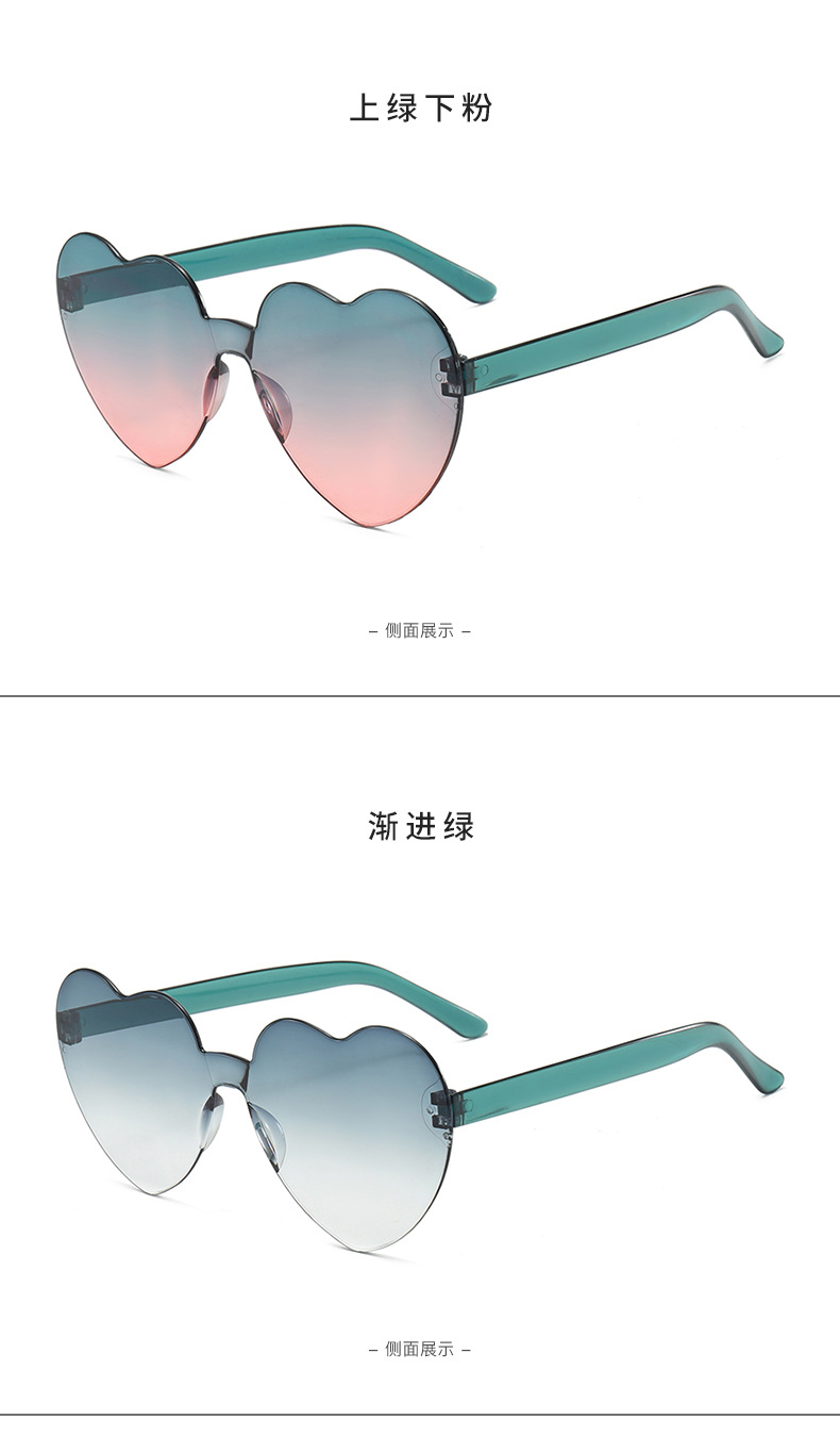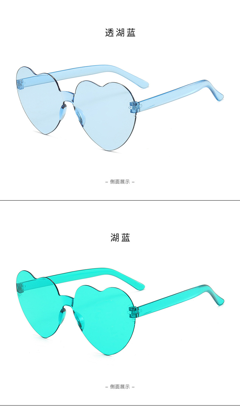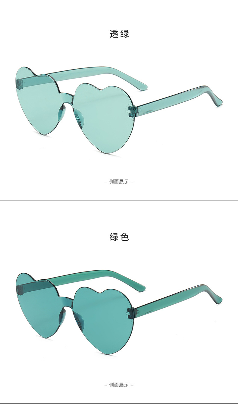 新款跨境桃心太阳镜爱心眼镜欧美潮流无框连体海洋片炫目色彩墨镜