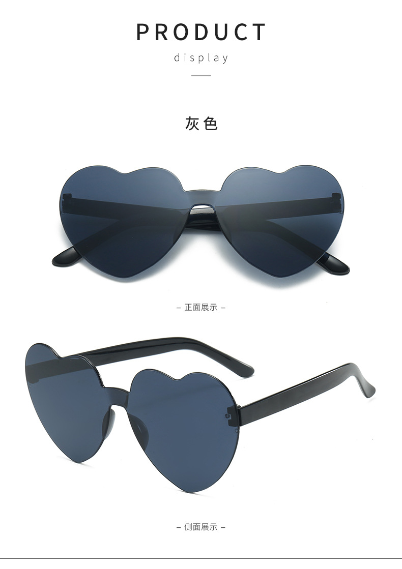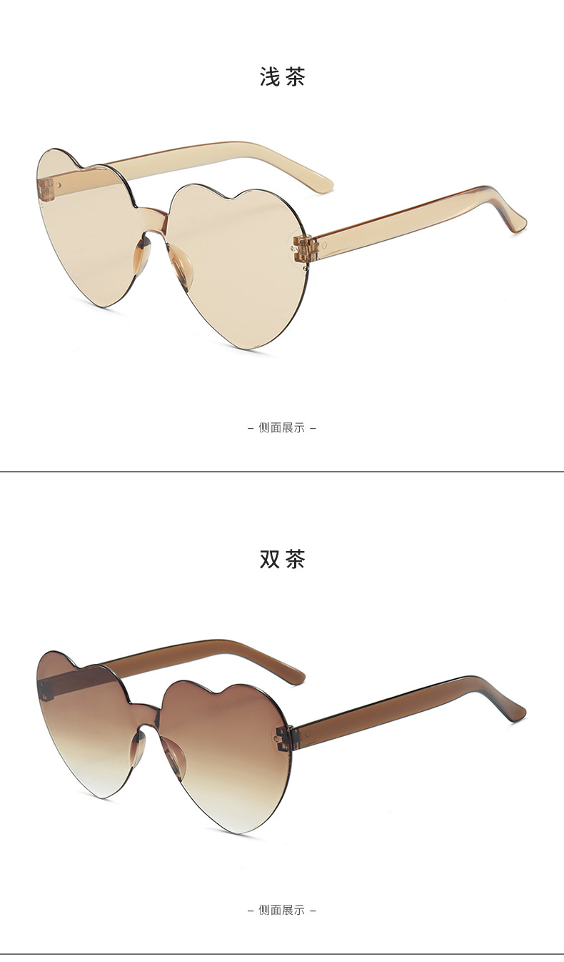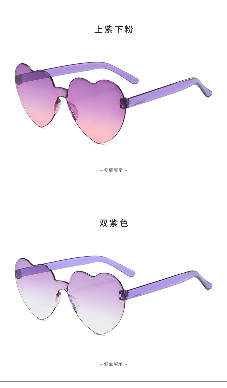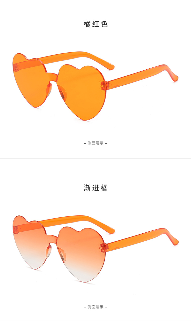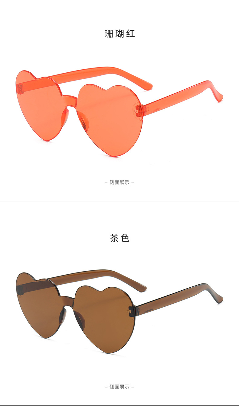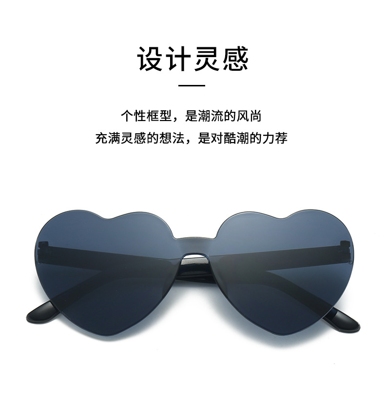 新款跨境桃心太阳镜爱心眼镜欧美潮流无框连体海洋片炫目色彩墨镜