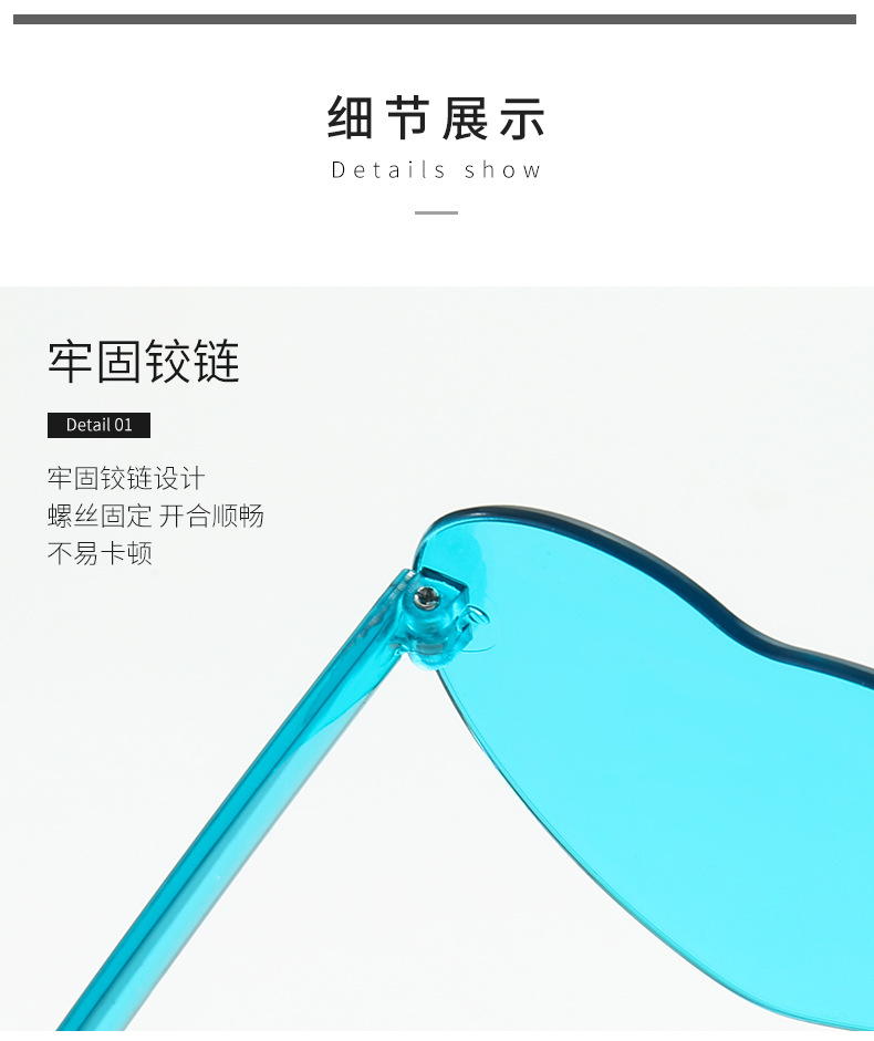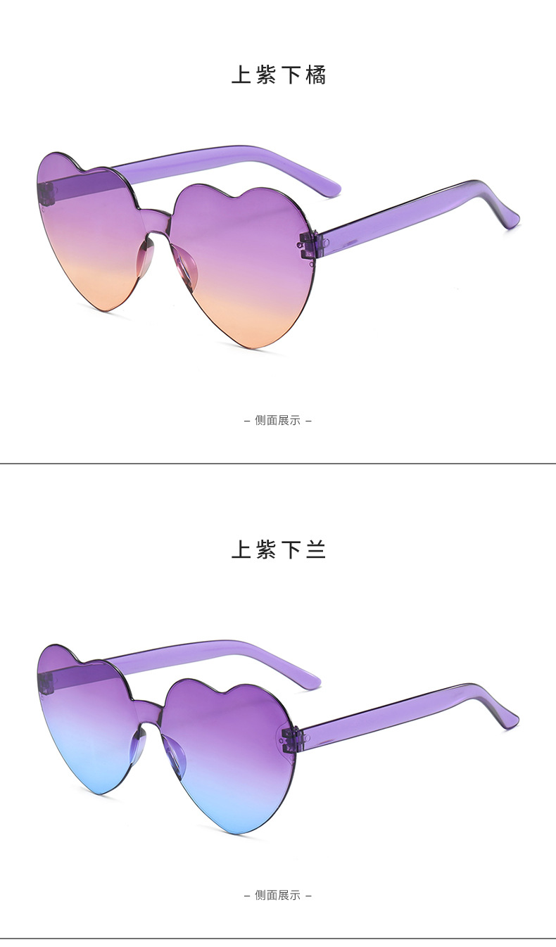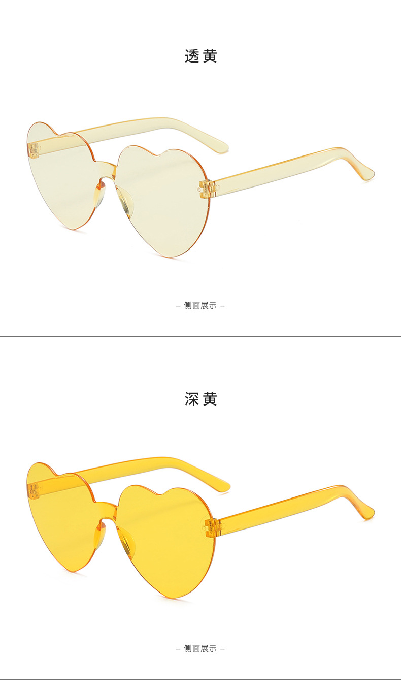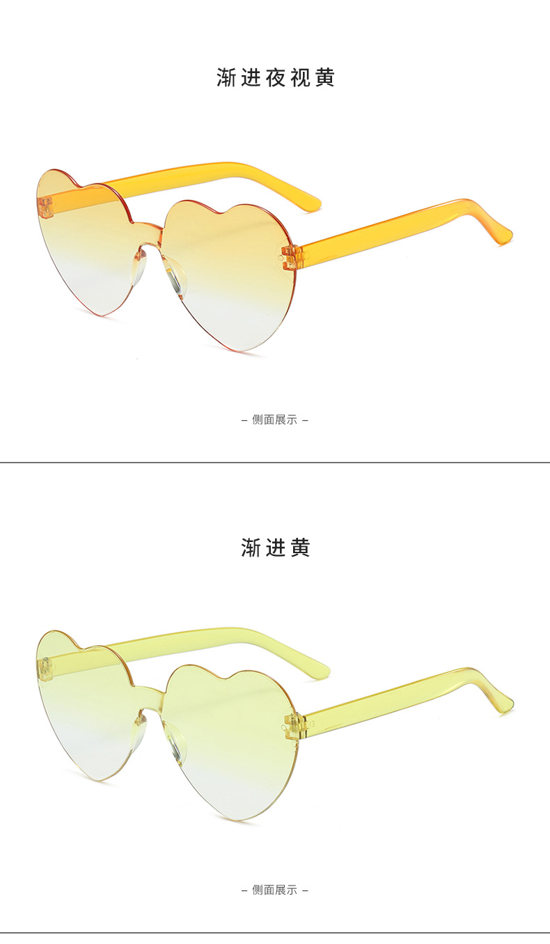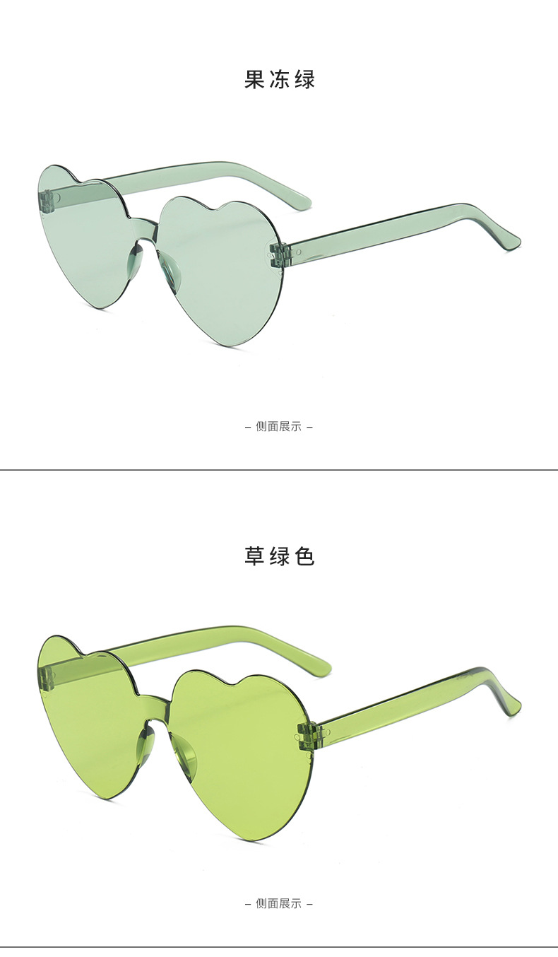 新款跨境桃心太阳镜爱心眼镜欧美潮流无框连体海洋片炫目色彩墨镜