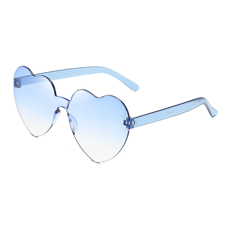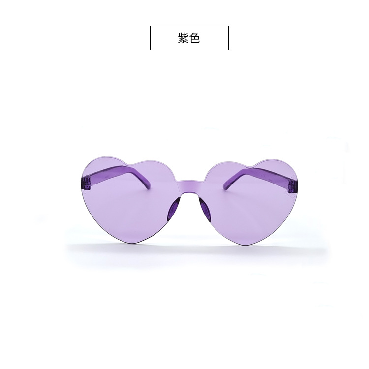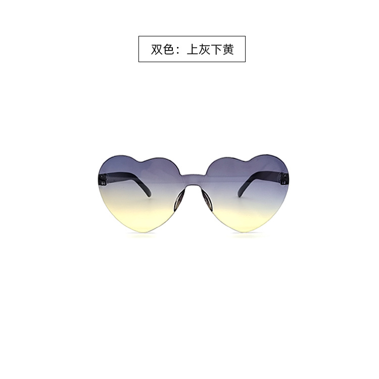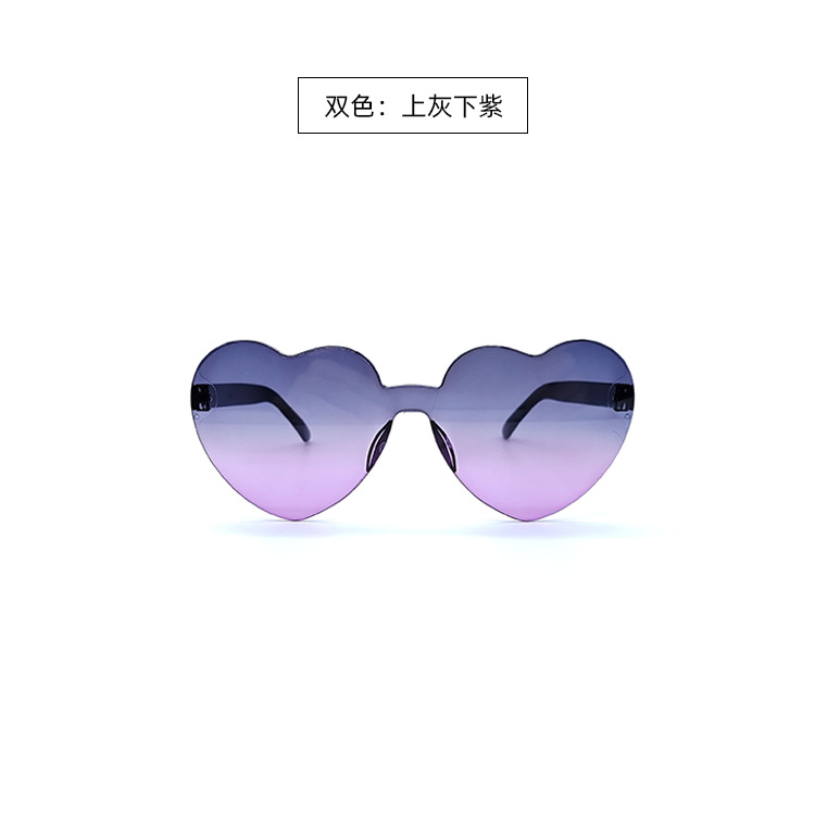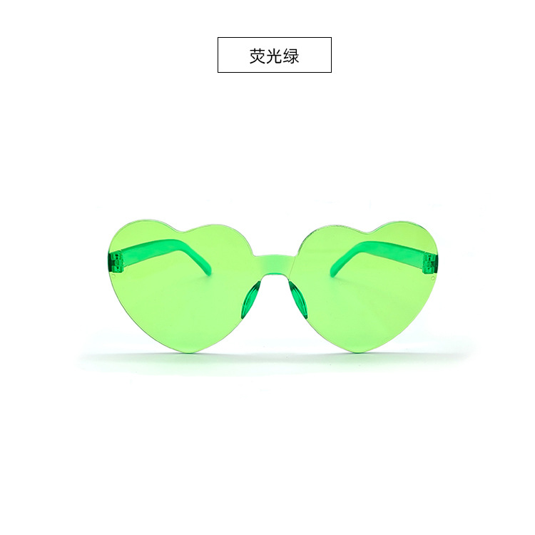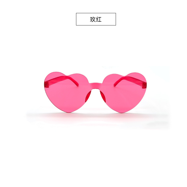 新款爱心太阳眼镜 果冻色无框心型连体眼镜 炫目色彩桃心太阳镜