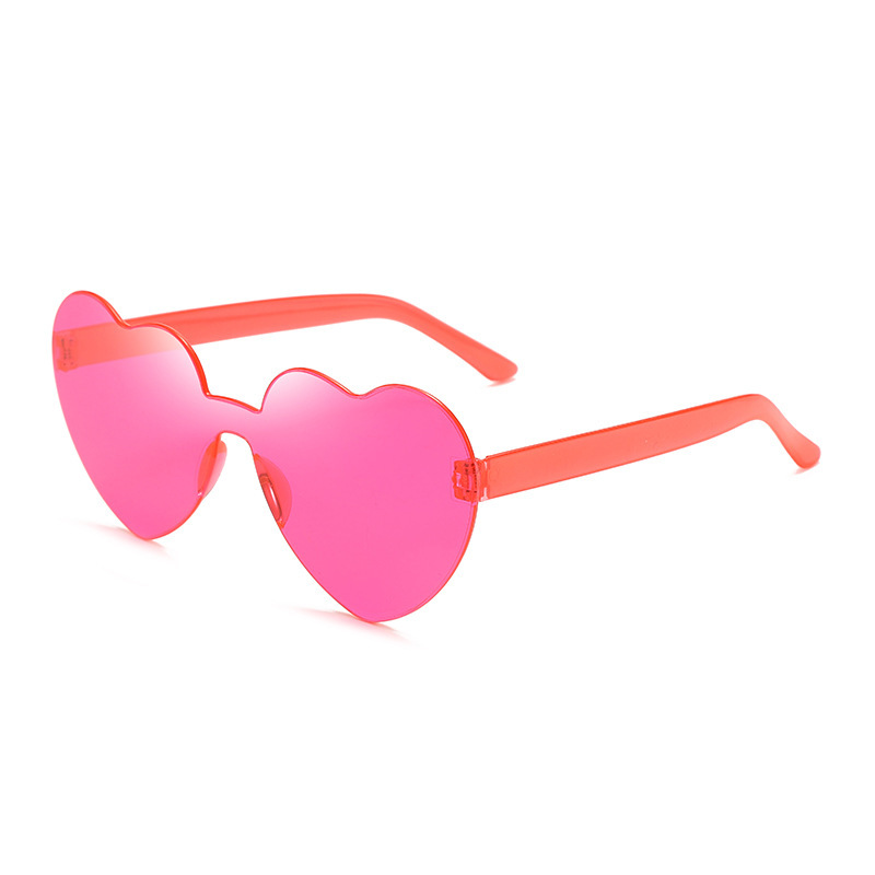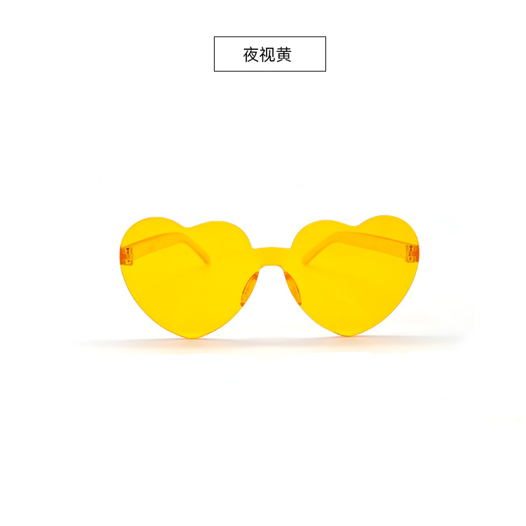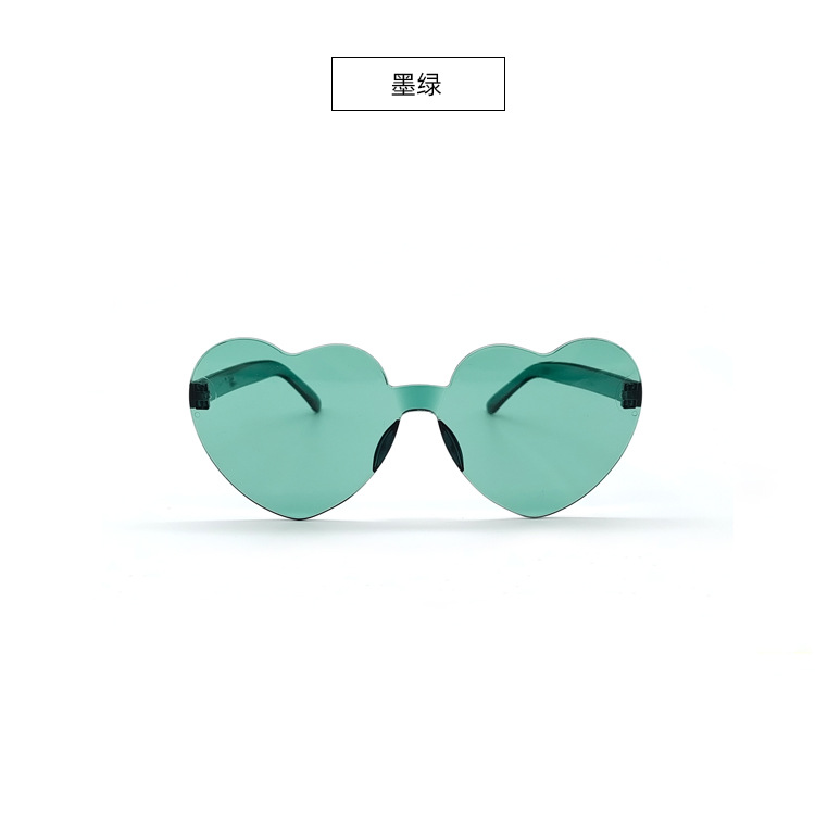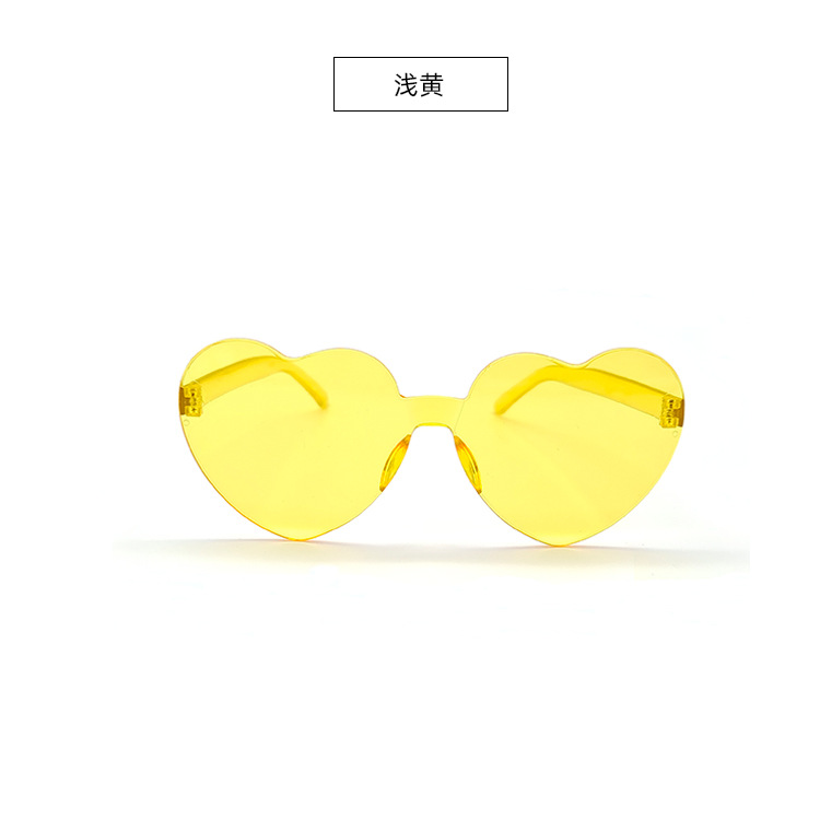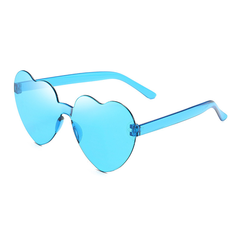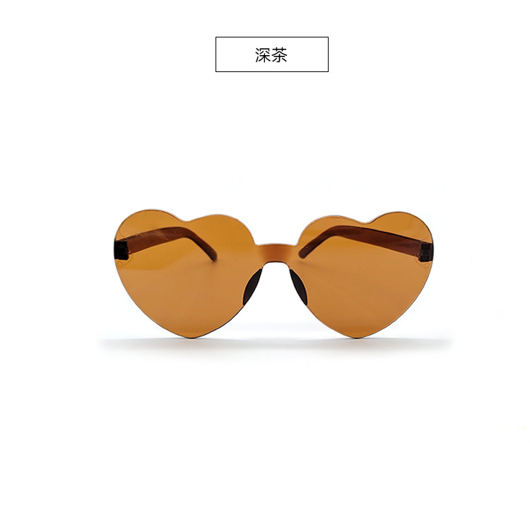 新款爱心太阳眼镜 果冻色无框心型连体眼镜 炫目色彩桃心太阳镜