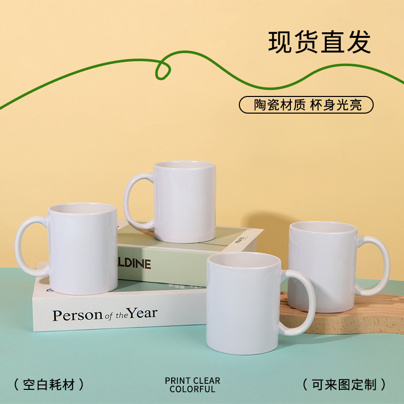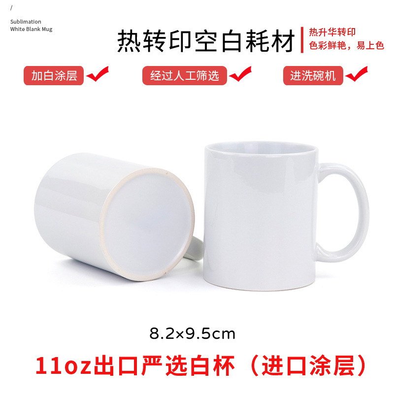 热转印11oz白杯加白涂层马克杯热升华个性创意影像杯白色陶瓷杯子