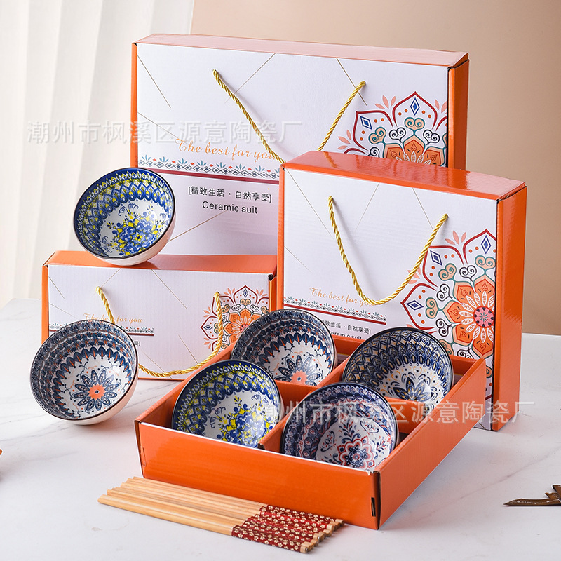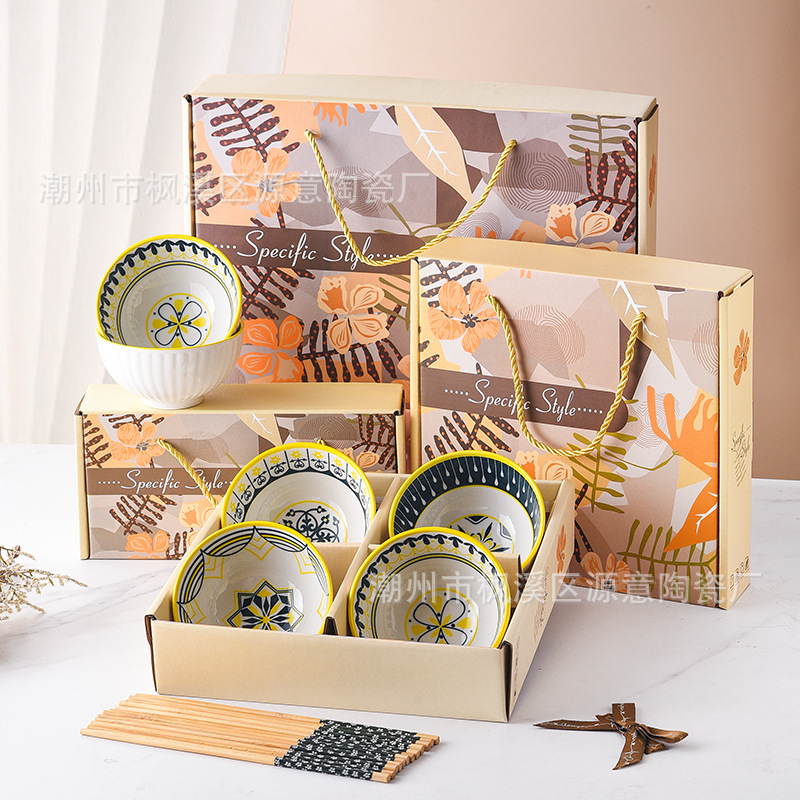 礼品碗套装山茶花陶瓷餐具套碗礼盒装会销开业礼品伴手礼碗筷套碗