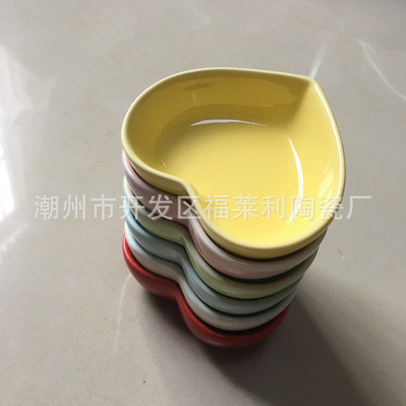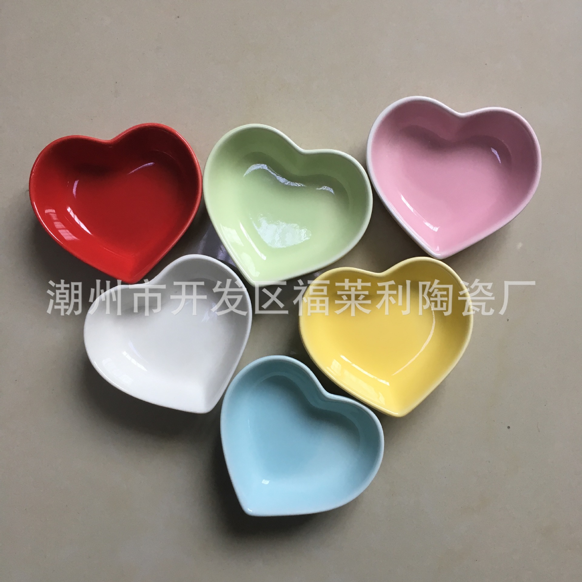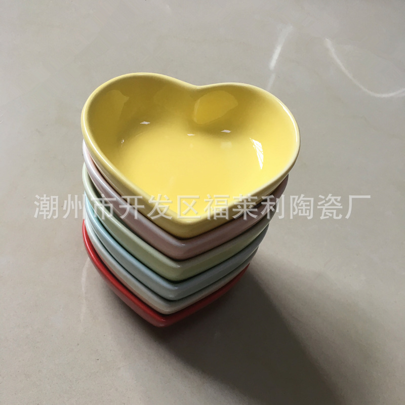 厂家直销陶瓷小碟子桃心日韩式酱醋碟调味碟桃心碗心形碗色釉瓷
