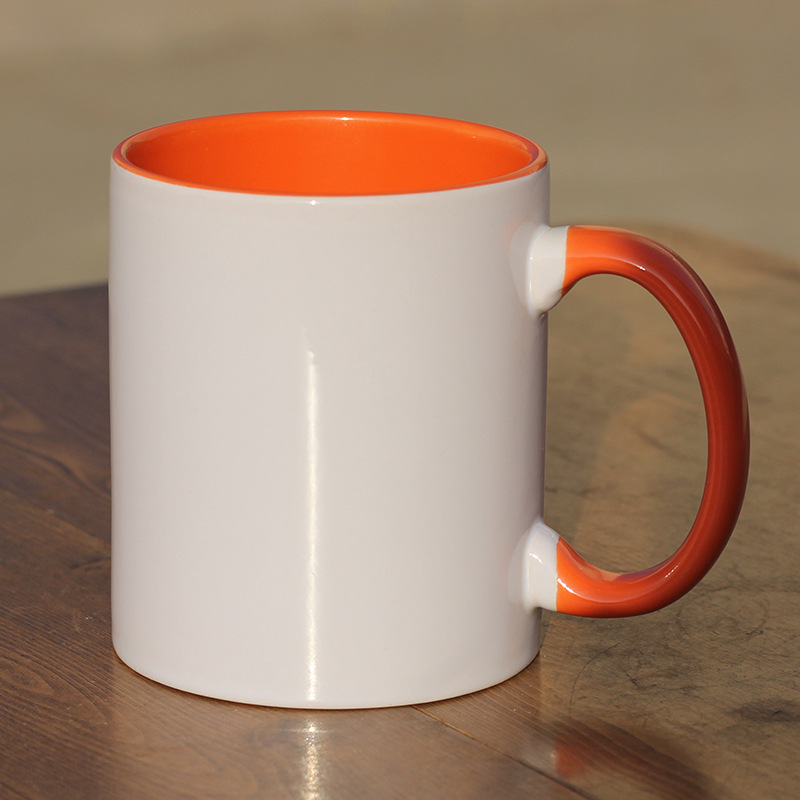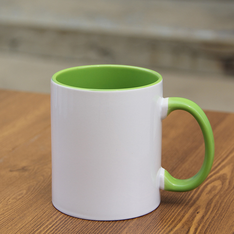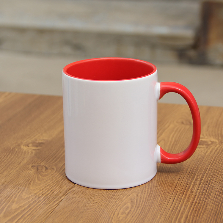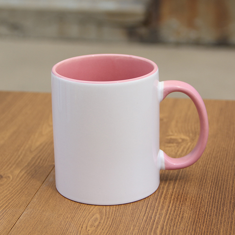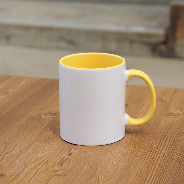 11oz双色陶瓷杯内彩把彩热转印马克杯空白批发热升华涂层杯