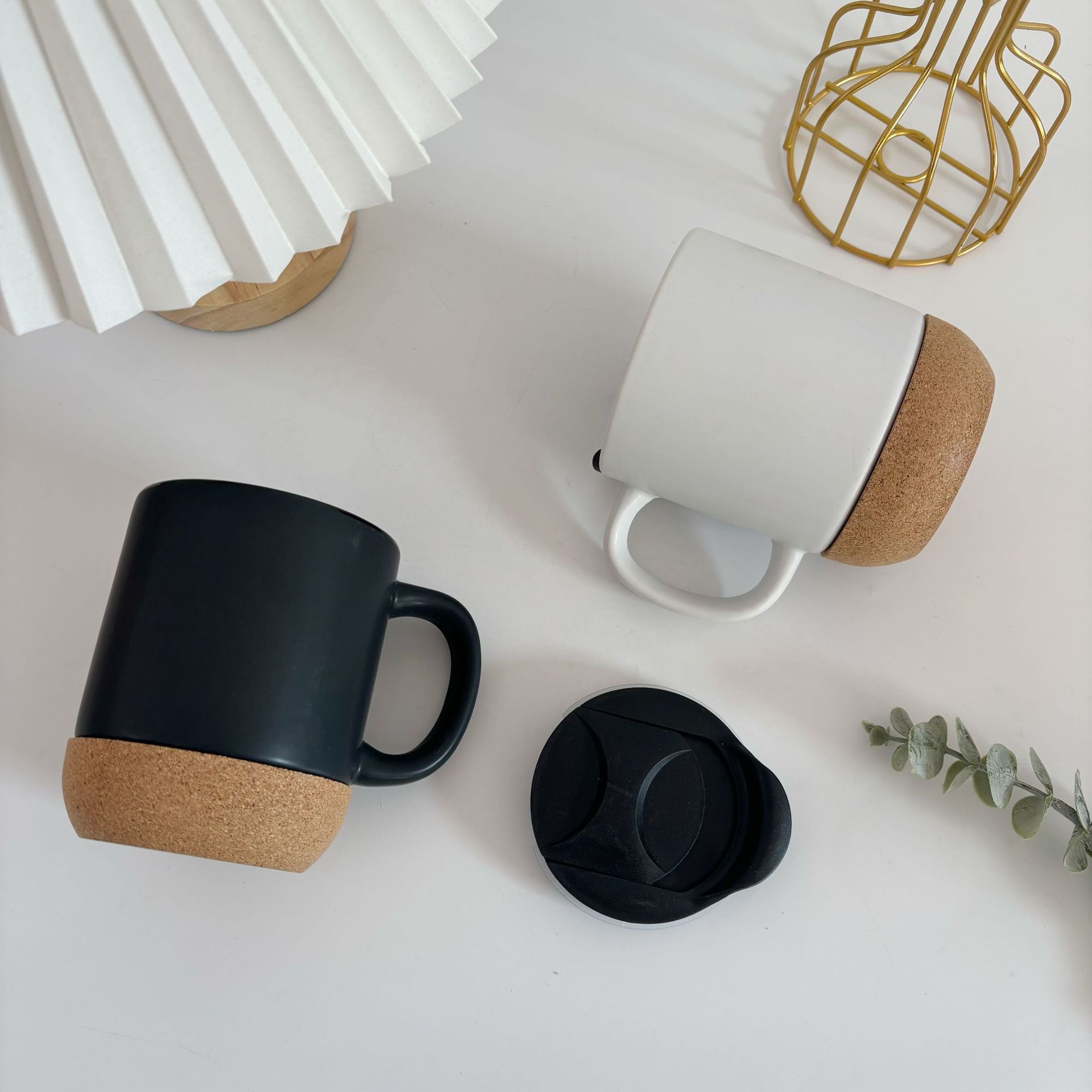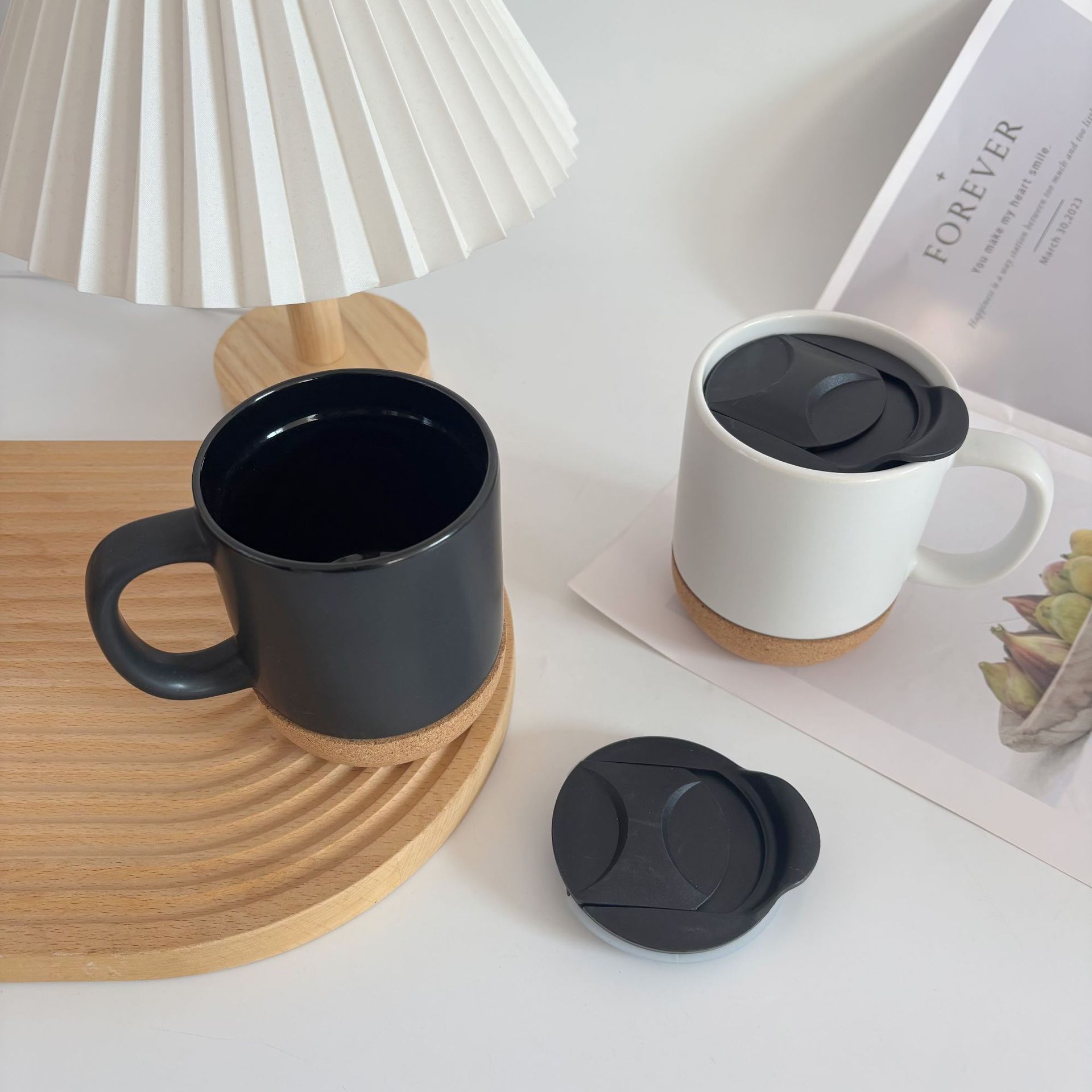 带盖软木底陶瓷杯牛奶杯咖啡杯软木底马克杯带盖水杯