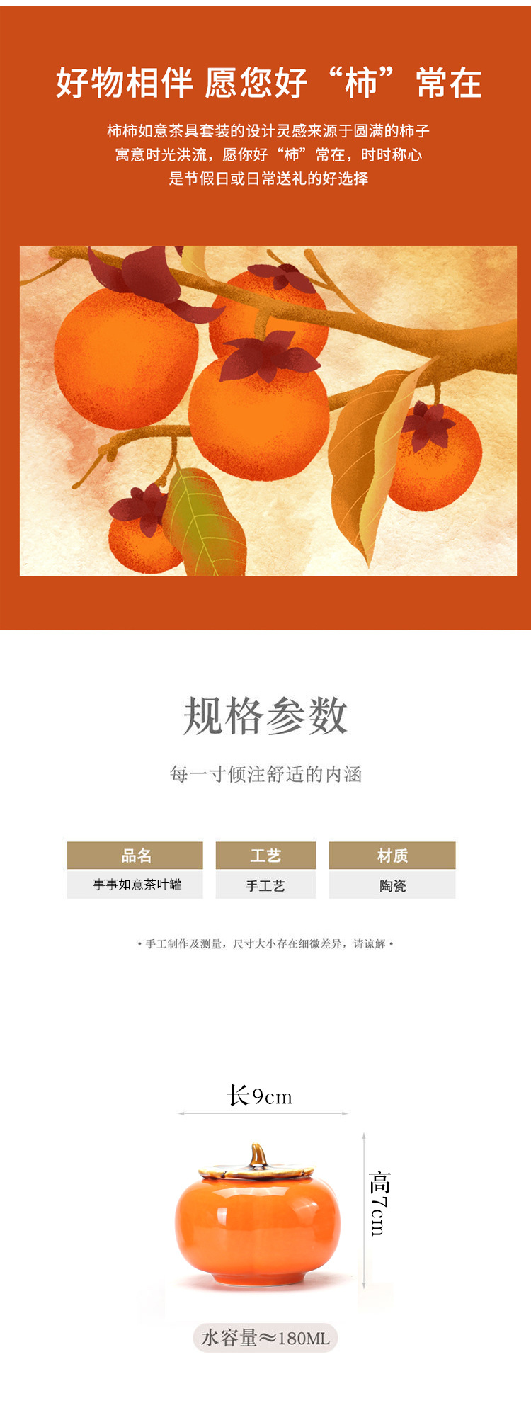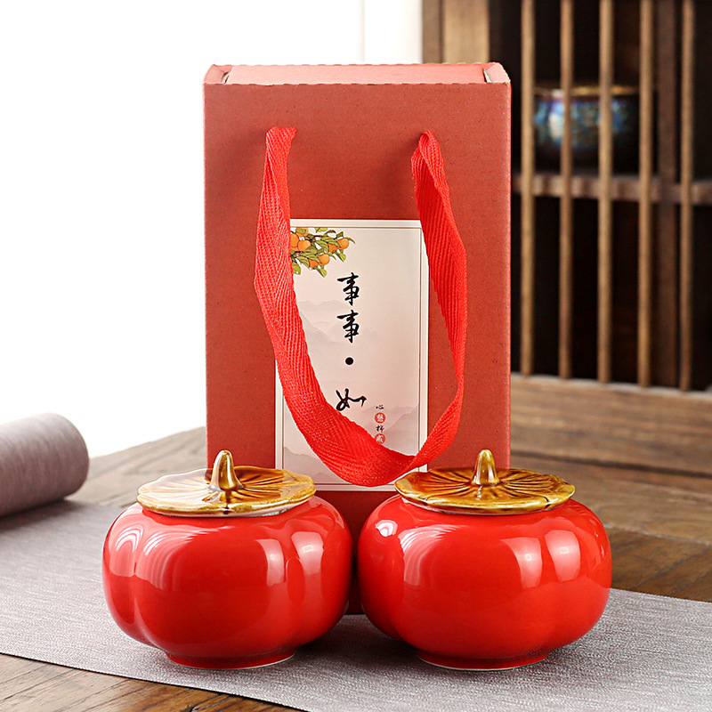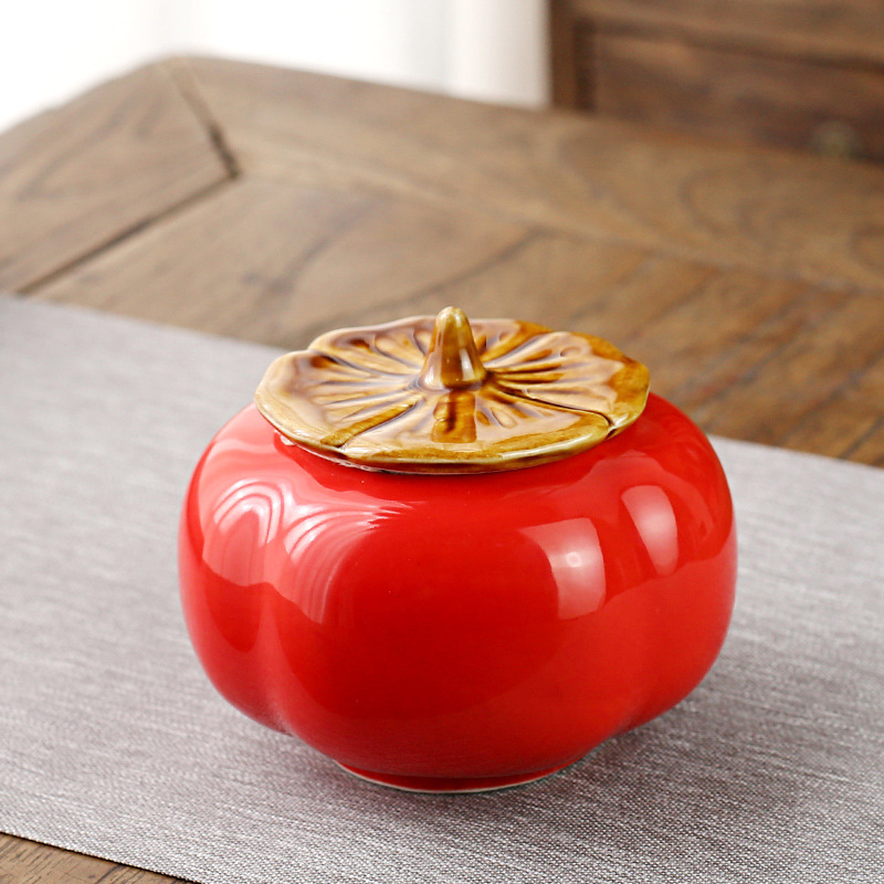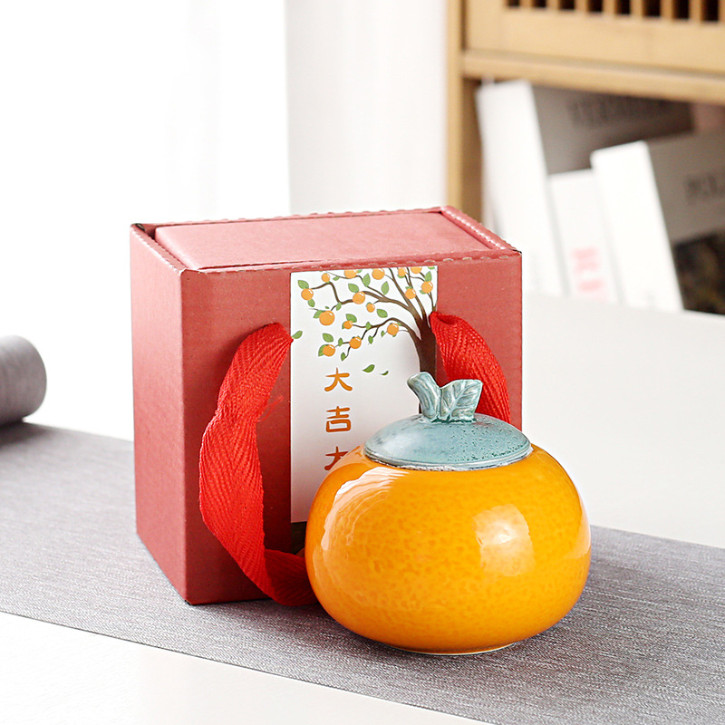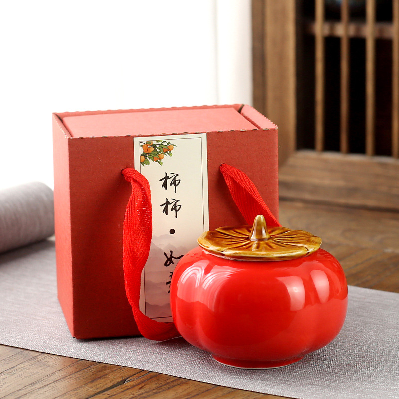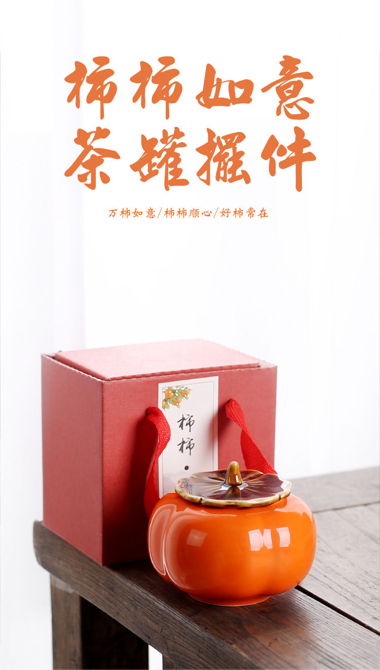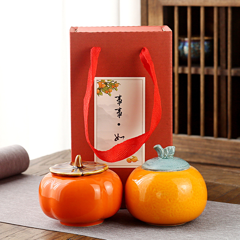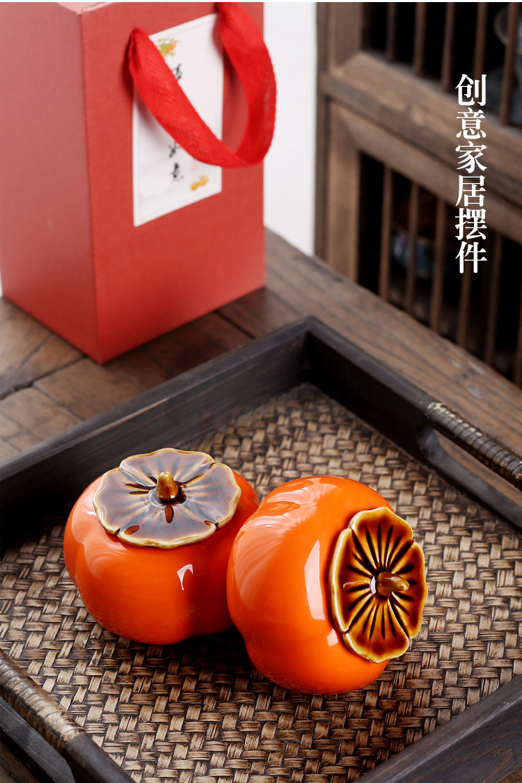 柿子如意陶瓷密封喜柿糖盒糖果创意茶叶罐迷你小号包装喜糖罐罐子
