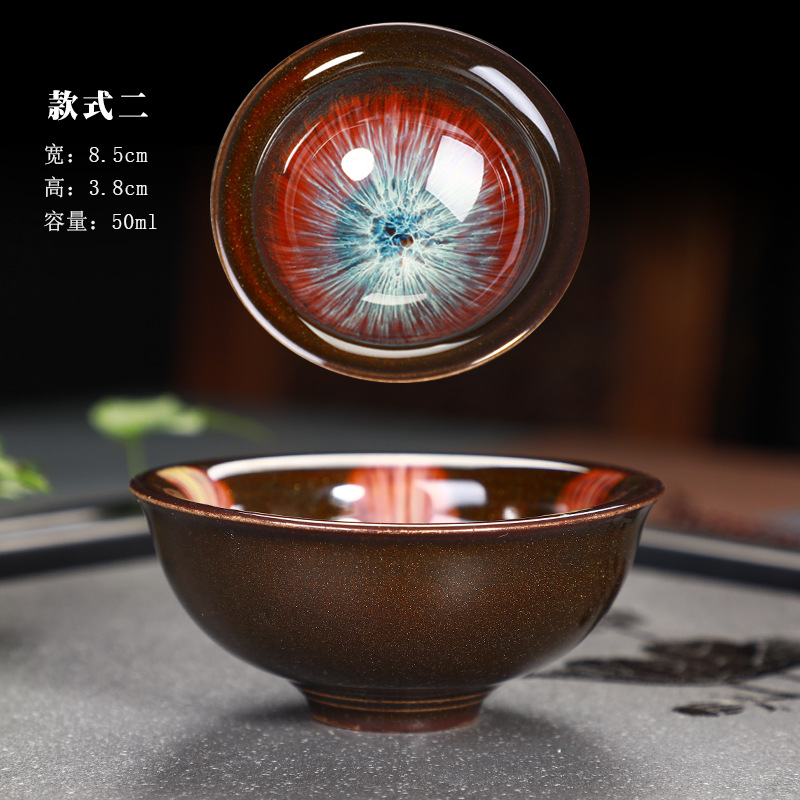 窑变陶瓷单杯建盏天目釉茶杯茶盏创意个人主人杯大号品茗杯斗笠杯