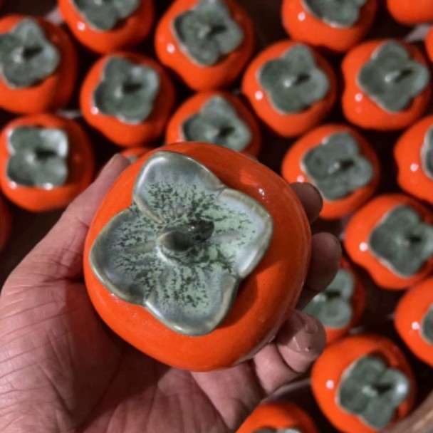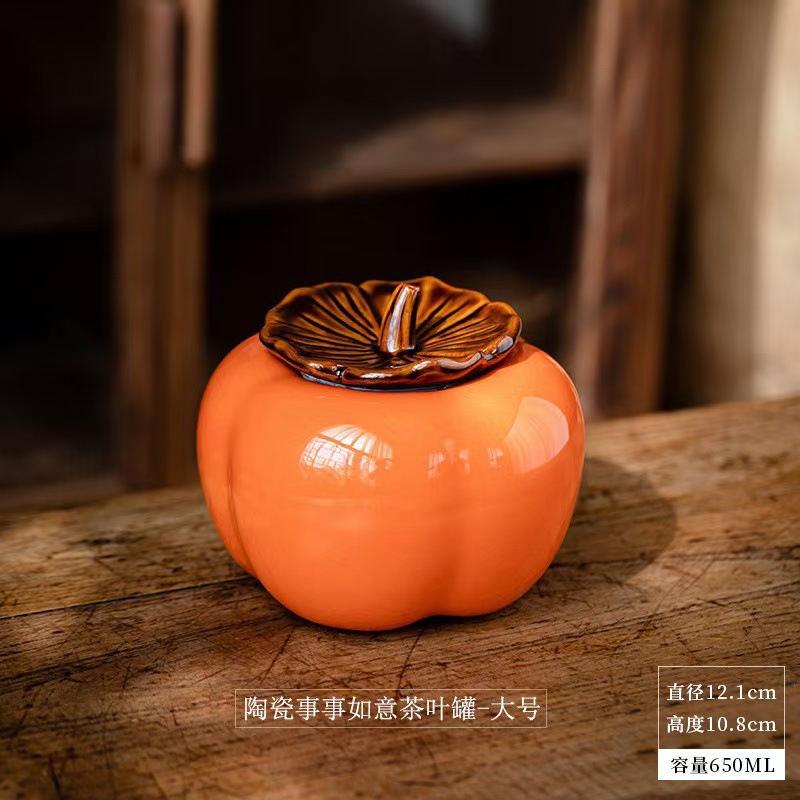 陶瓷仿真水果柿子茶叶香膏粉小号喜糖罐蜡烛容器婚庆礼品结婚糖果