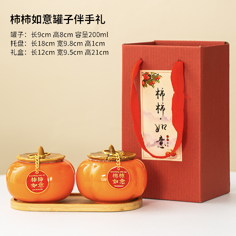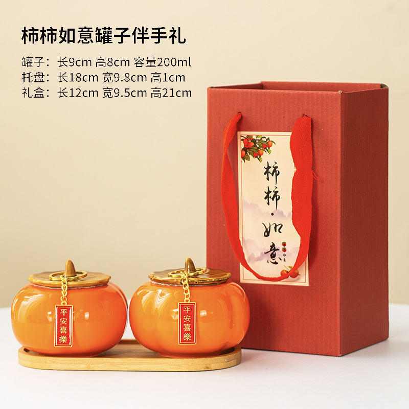 柿柿如意柿子罐喜糖罐茶叶罐陶瓷罐子小号结婚糖罐礼盒茶具伴手礼