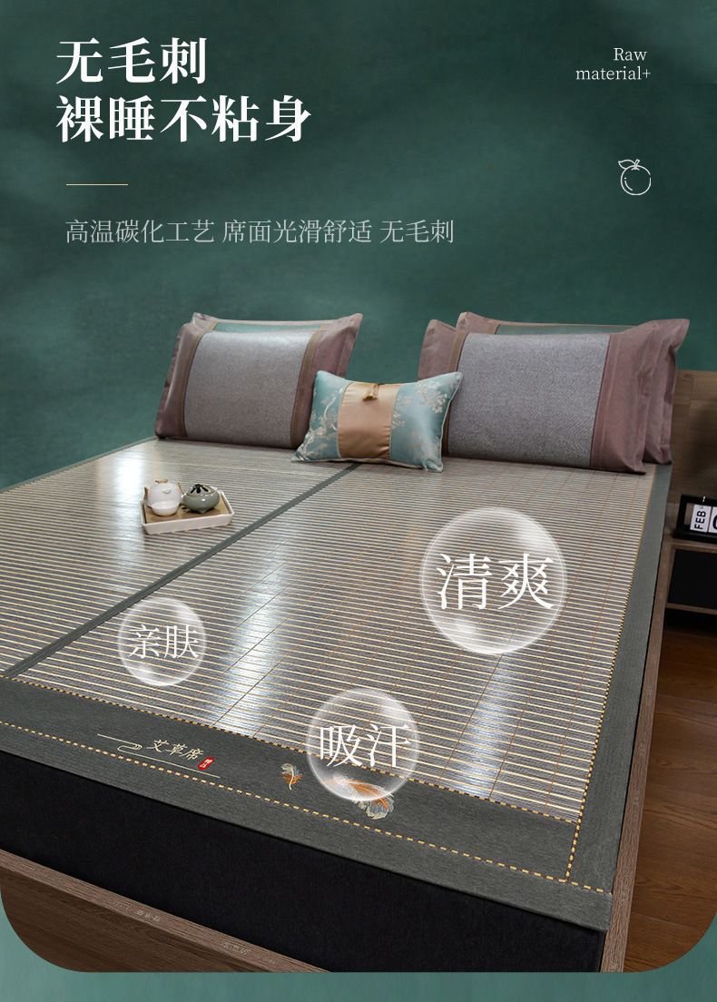 夏季碳化双面竹席冰丝凉感凉席藤席可折叠家用草席空调席厂家批发
