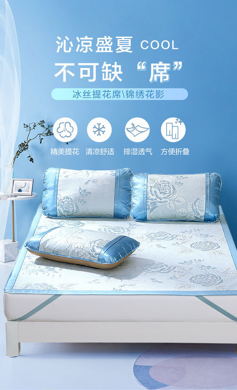 夏季冰丝凉席简约清凉透气不沾身凉而不冰可折叠学生宿舍外贸批发