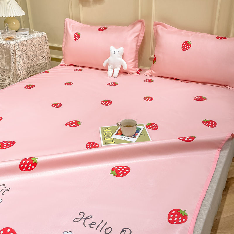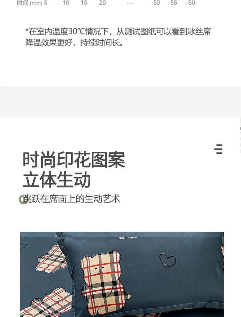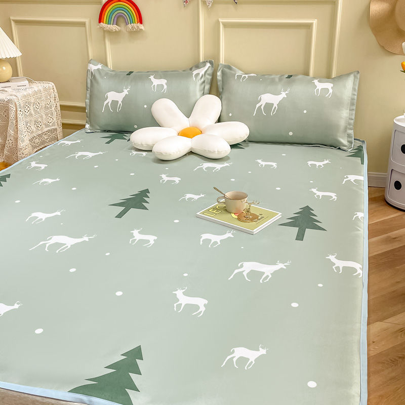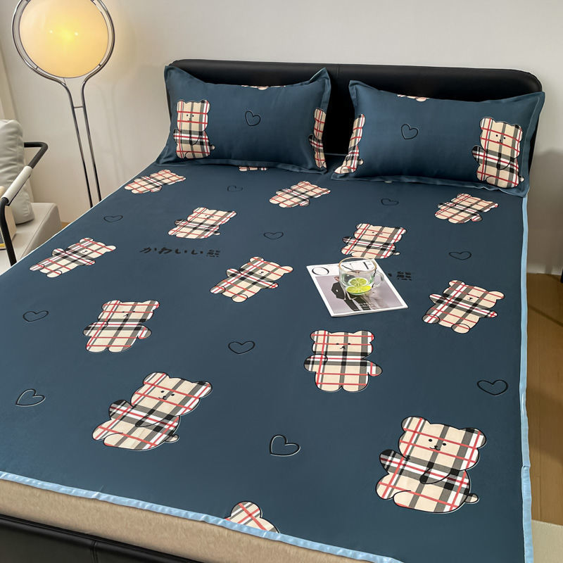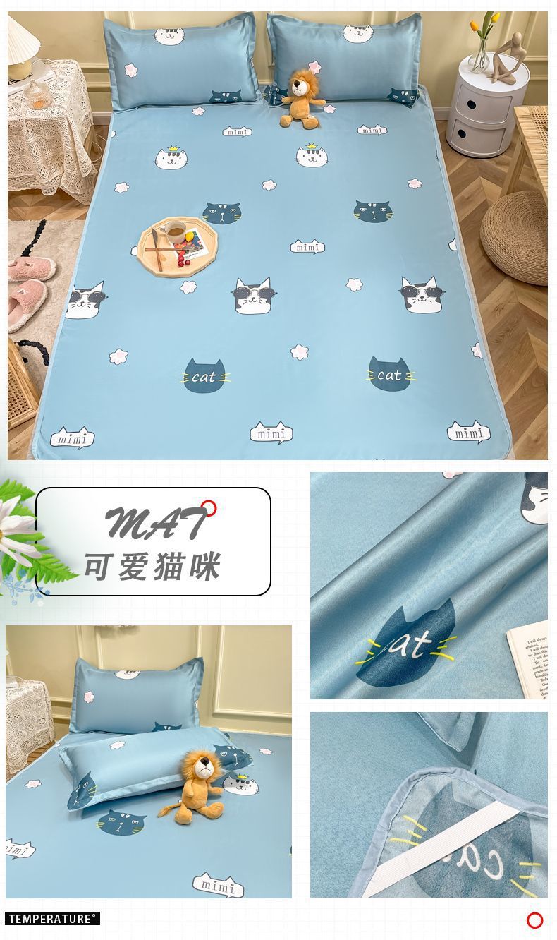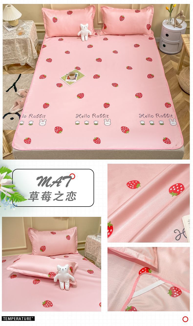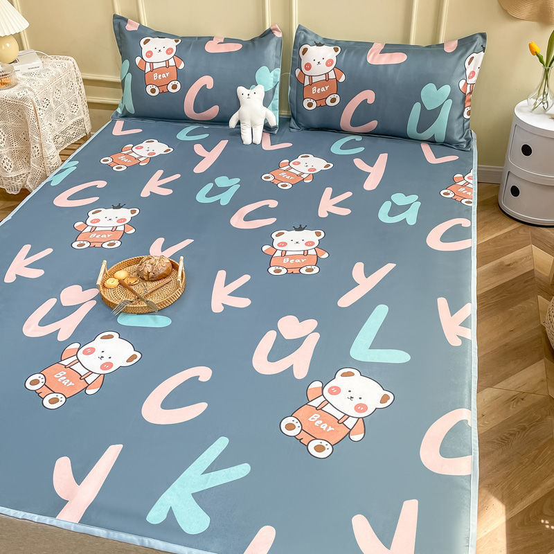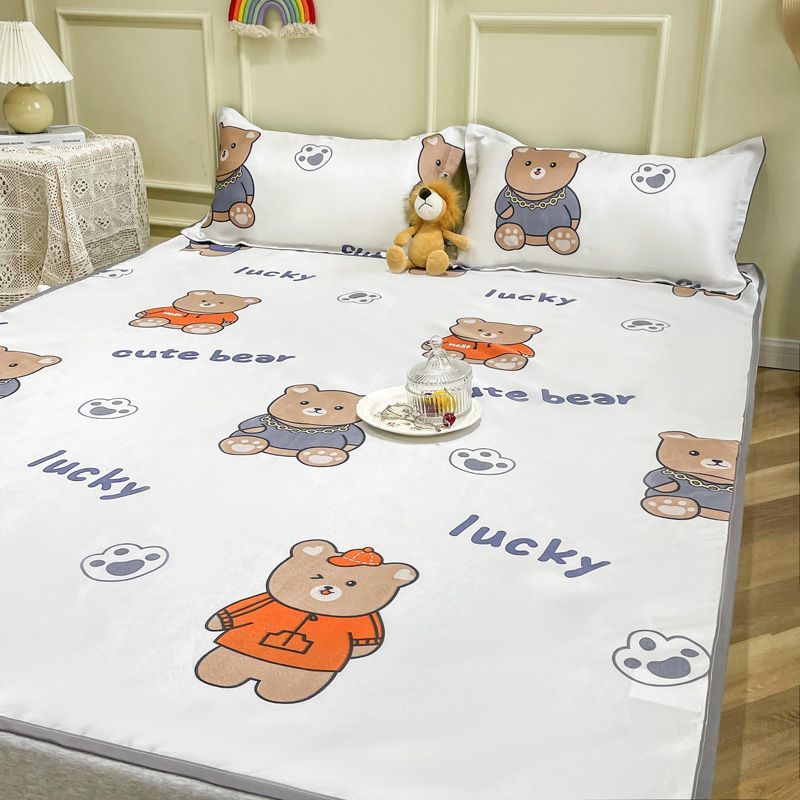 夏天ins卡通冰丝凉席套件可机洗大学生宿舍防滑床单人空调软席子