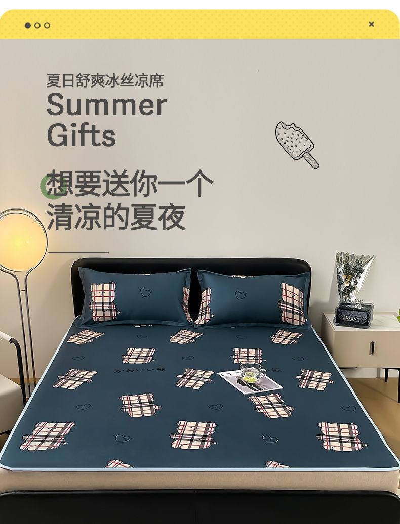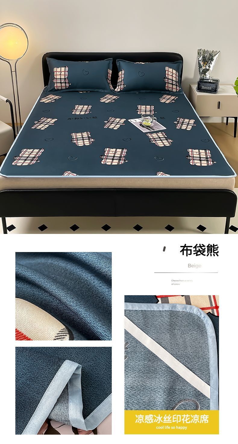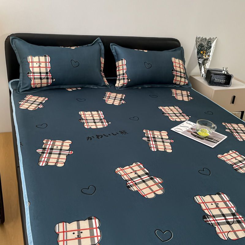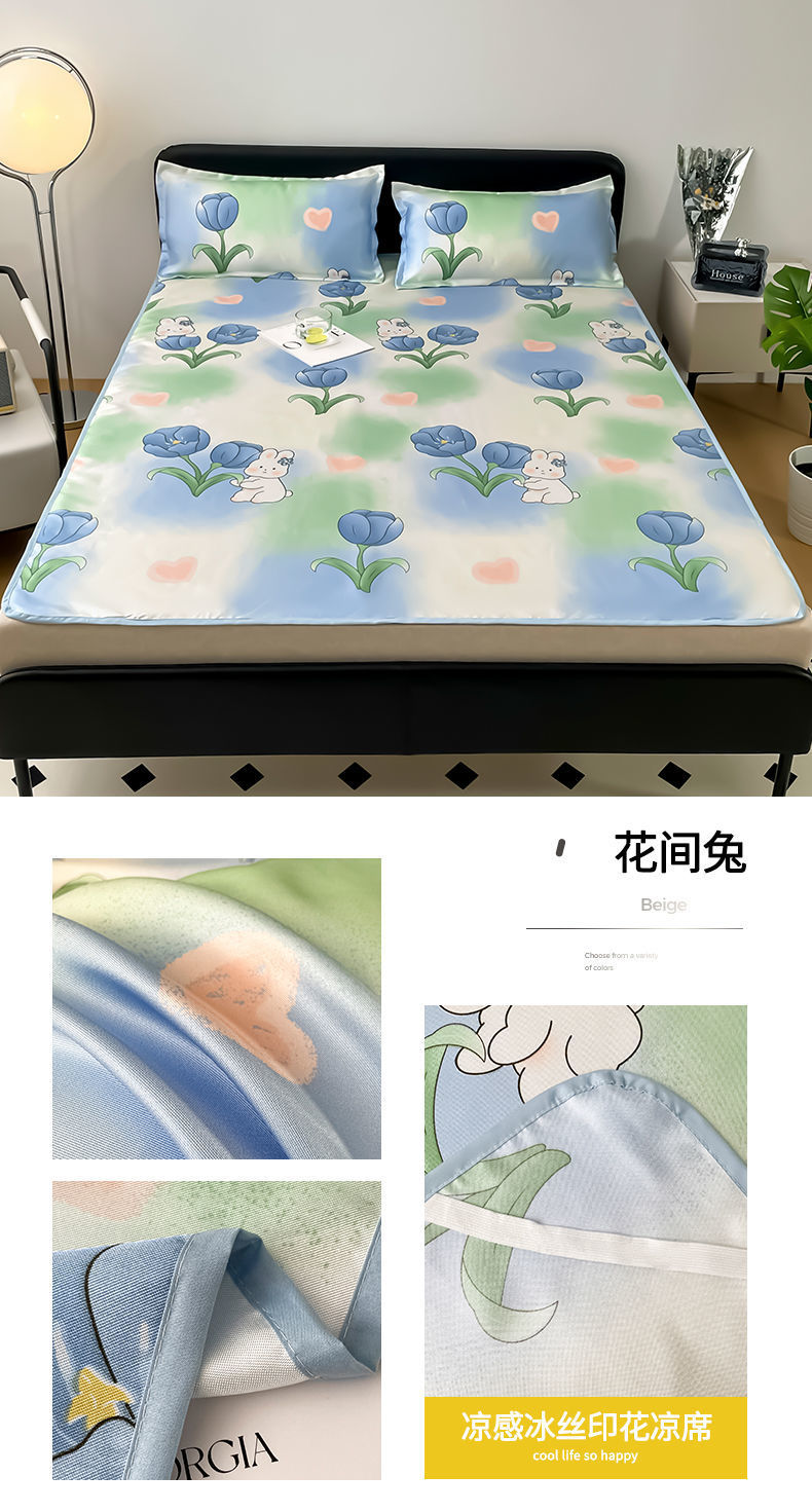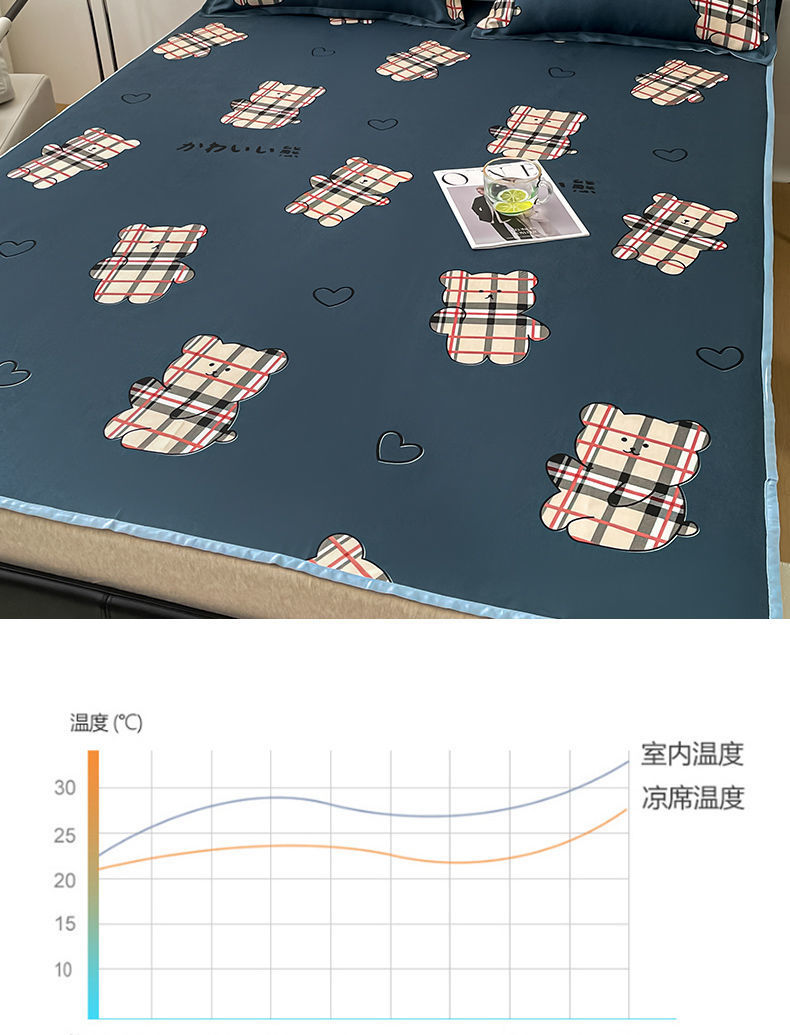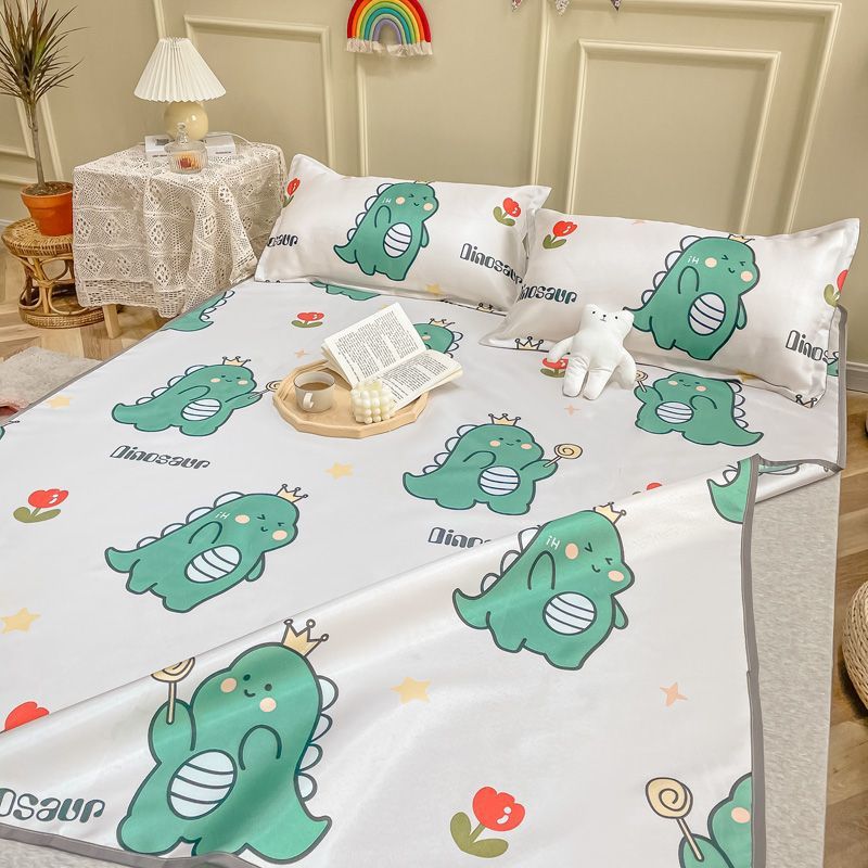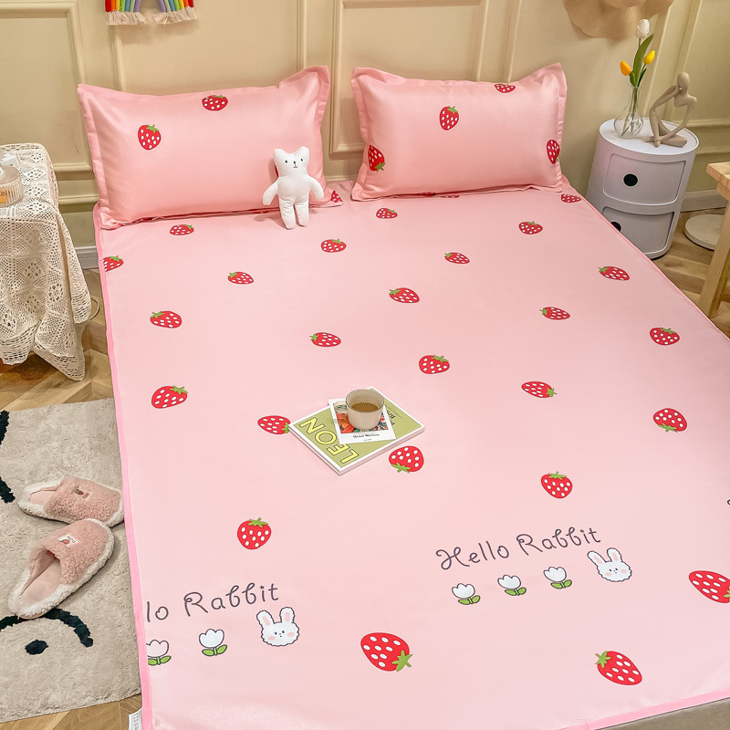 夏天ins卡通冰丝凉席套件可机洗大学生宿舍防滑床单人空调软席子