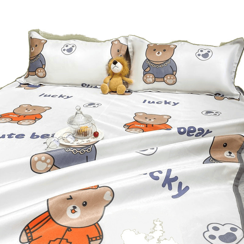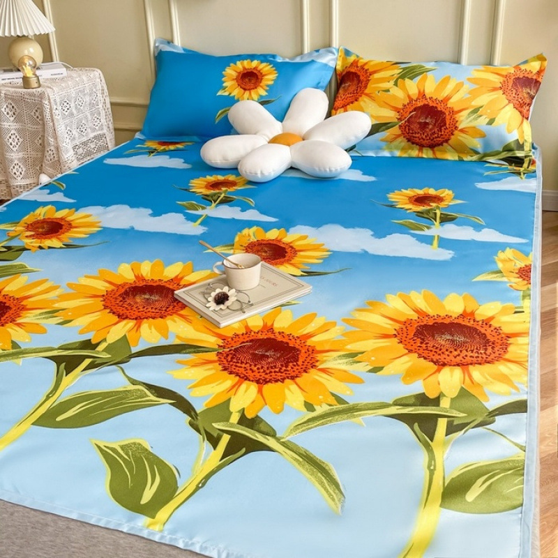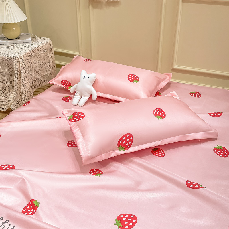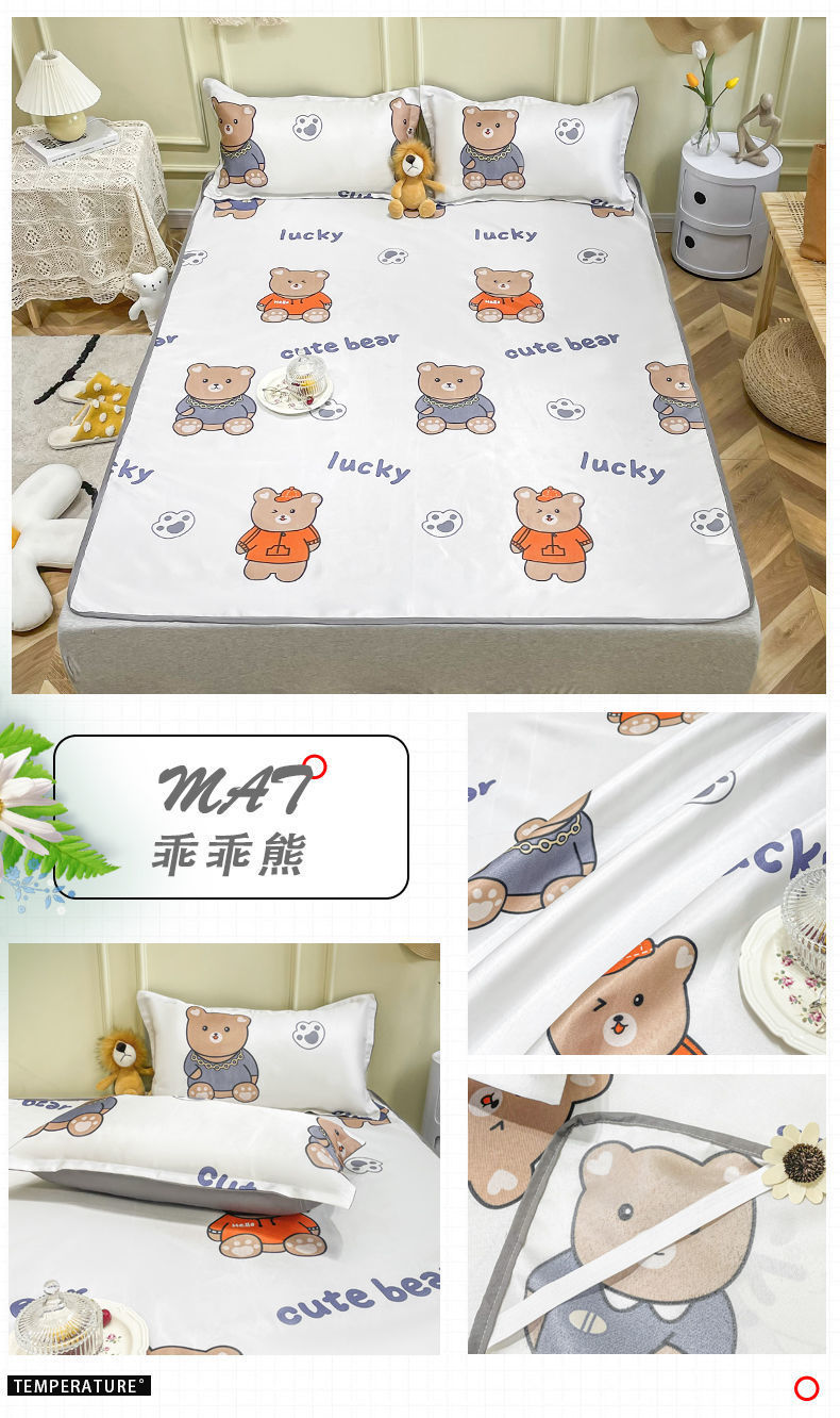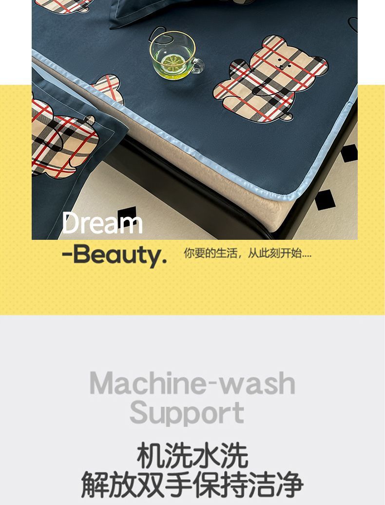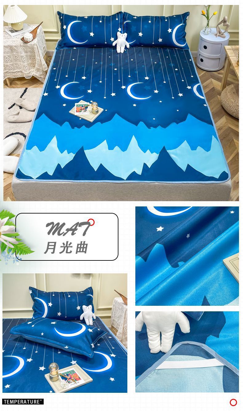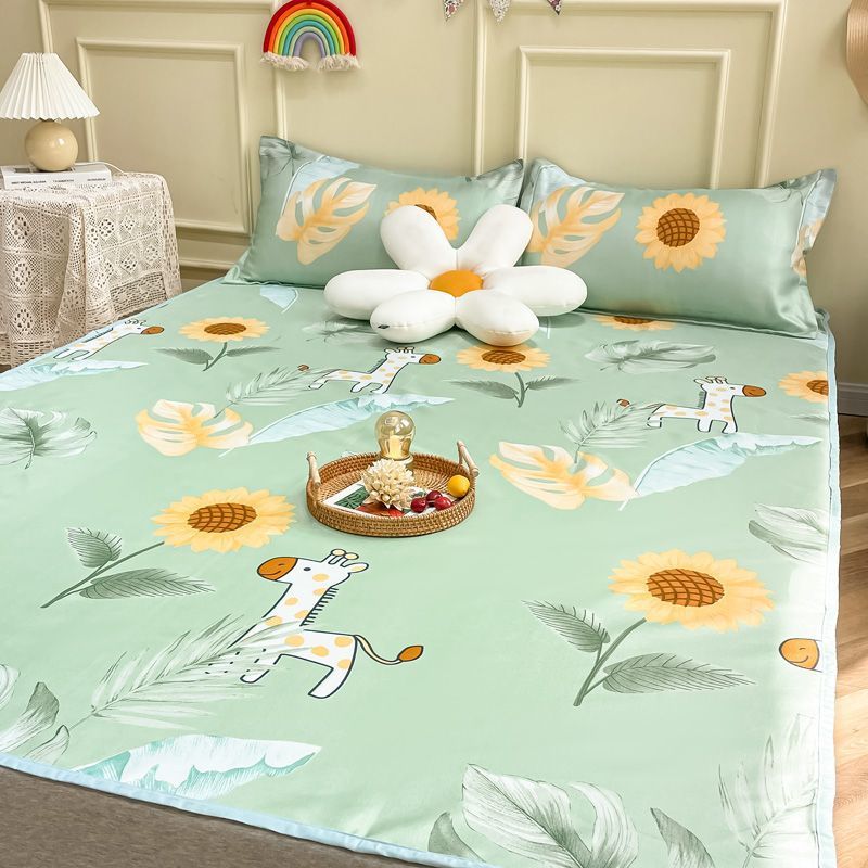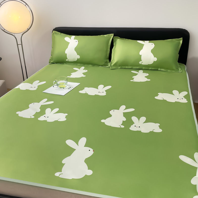 夏天ins卡通冰丝凉席套件可机洗大学生宿舍防滑床单人空调软席子