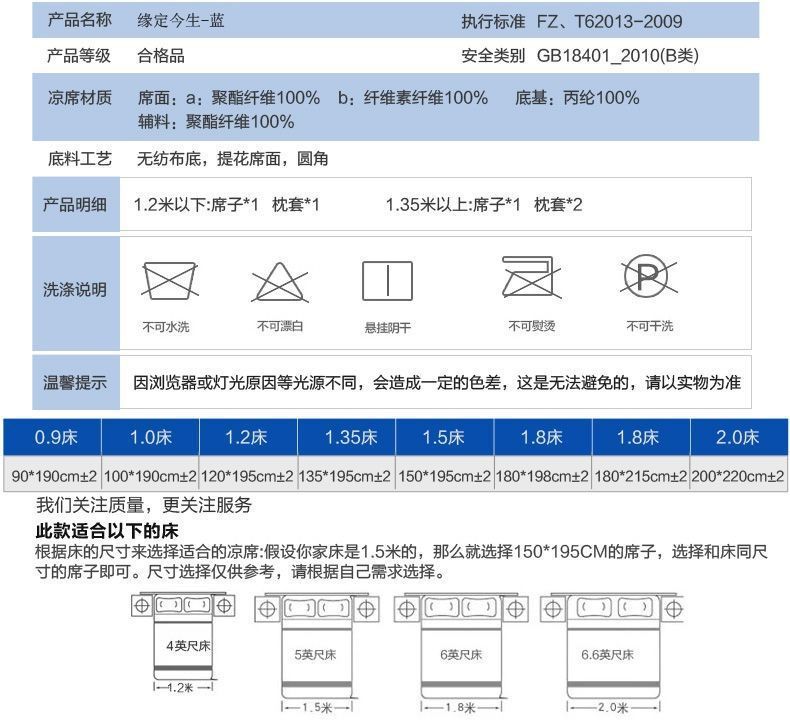 | 200 * 220cm mat in pair pillowcase(200*220CM席子配双枕套) | USD $9.98 | 1000 bed available |
