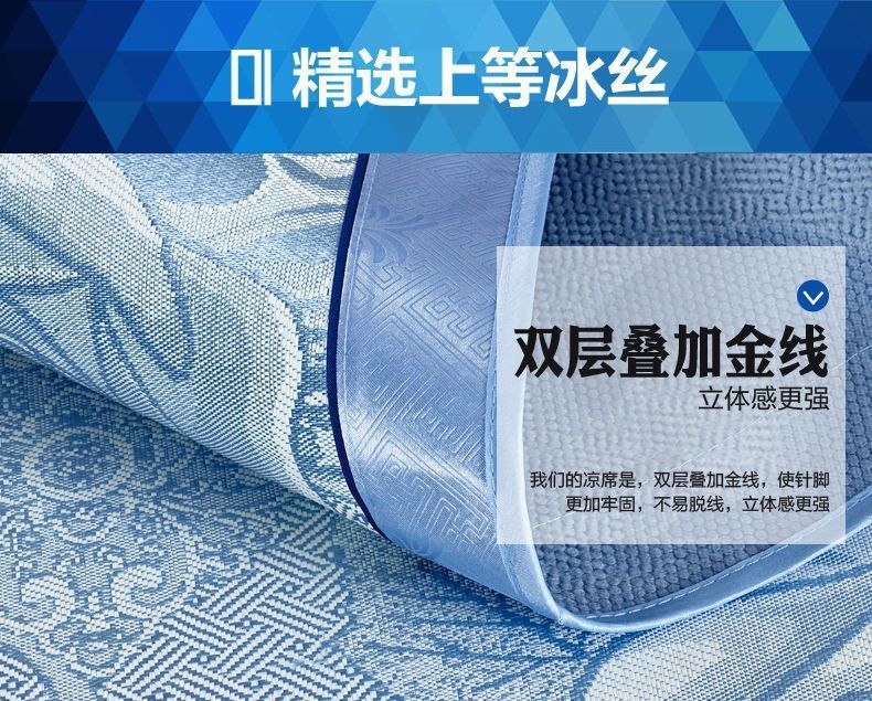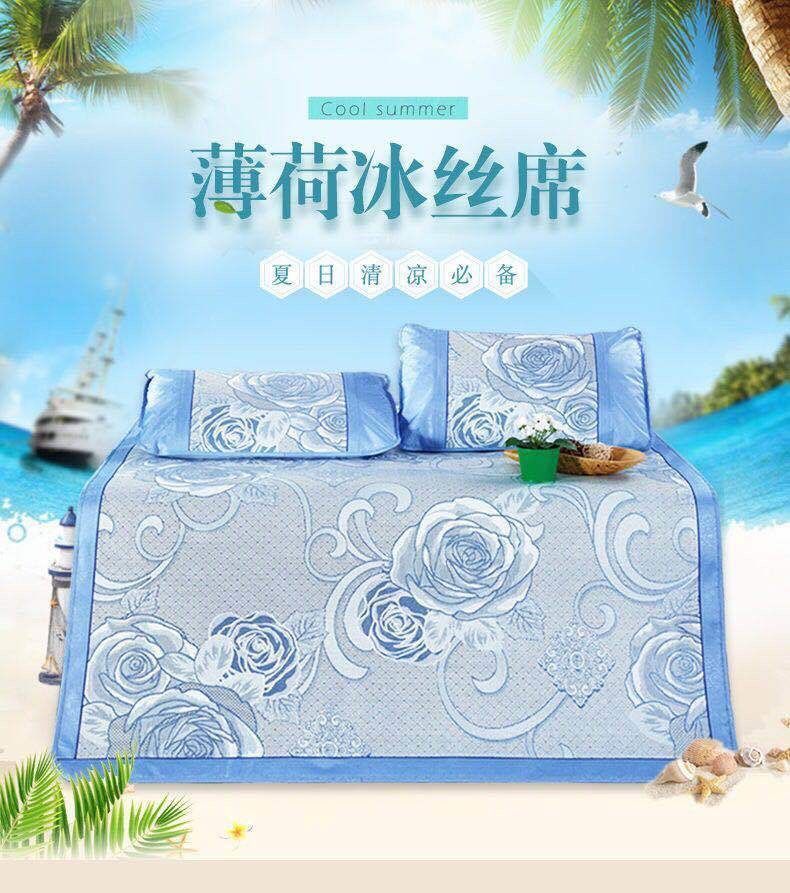 冰丝凉席单件/三件套可折叠席子0.9/1.5/1.8米单双人学生宿舍48cm