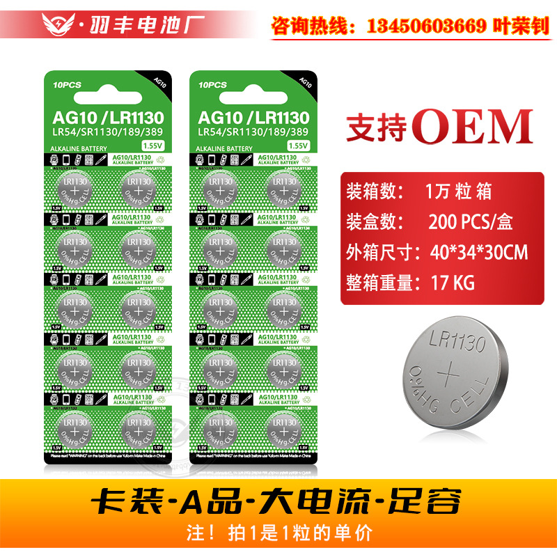厂家直销AG10纽扣电池LR1130玩具礼品lr54手表电子1.55V锌锰电池