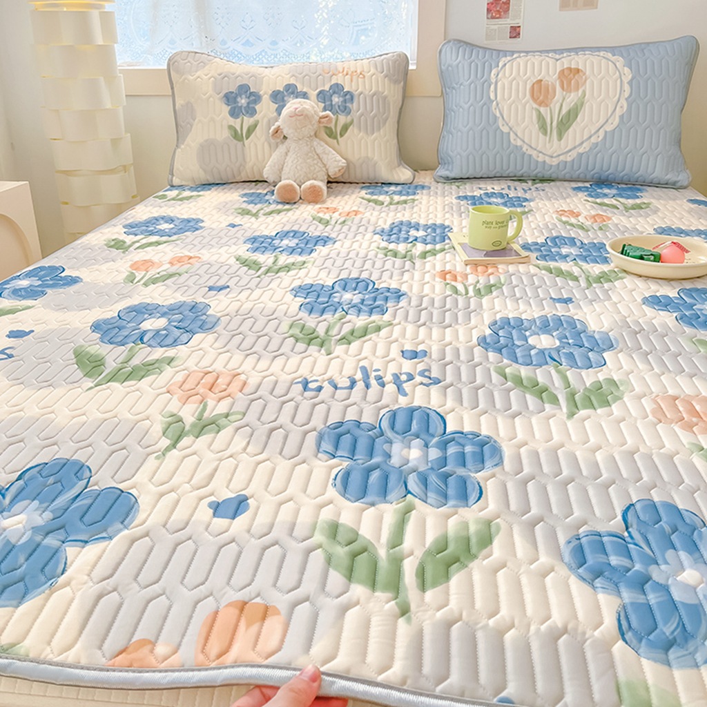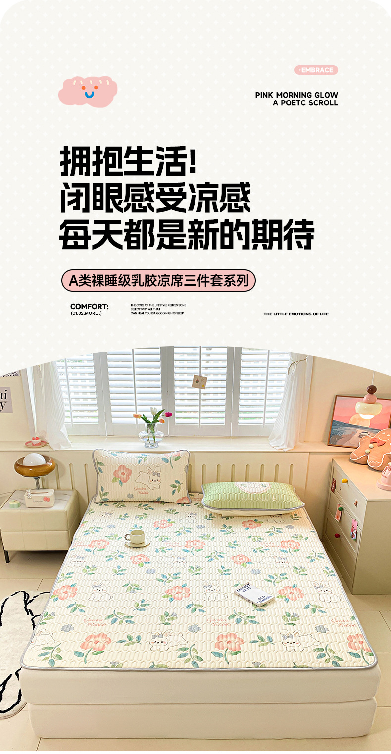 a类乳胶凉席三件套夏季冰丝床单可折叠防滑凉感丝软席子空调席ins