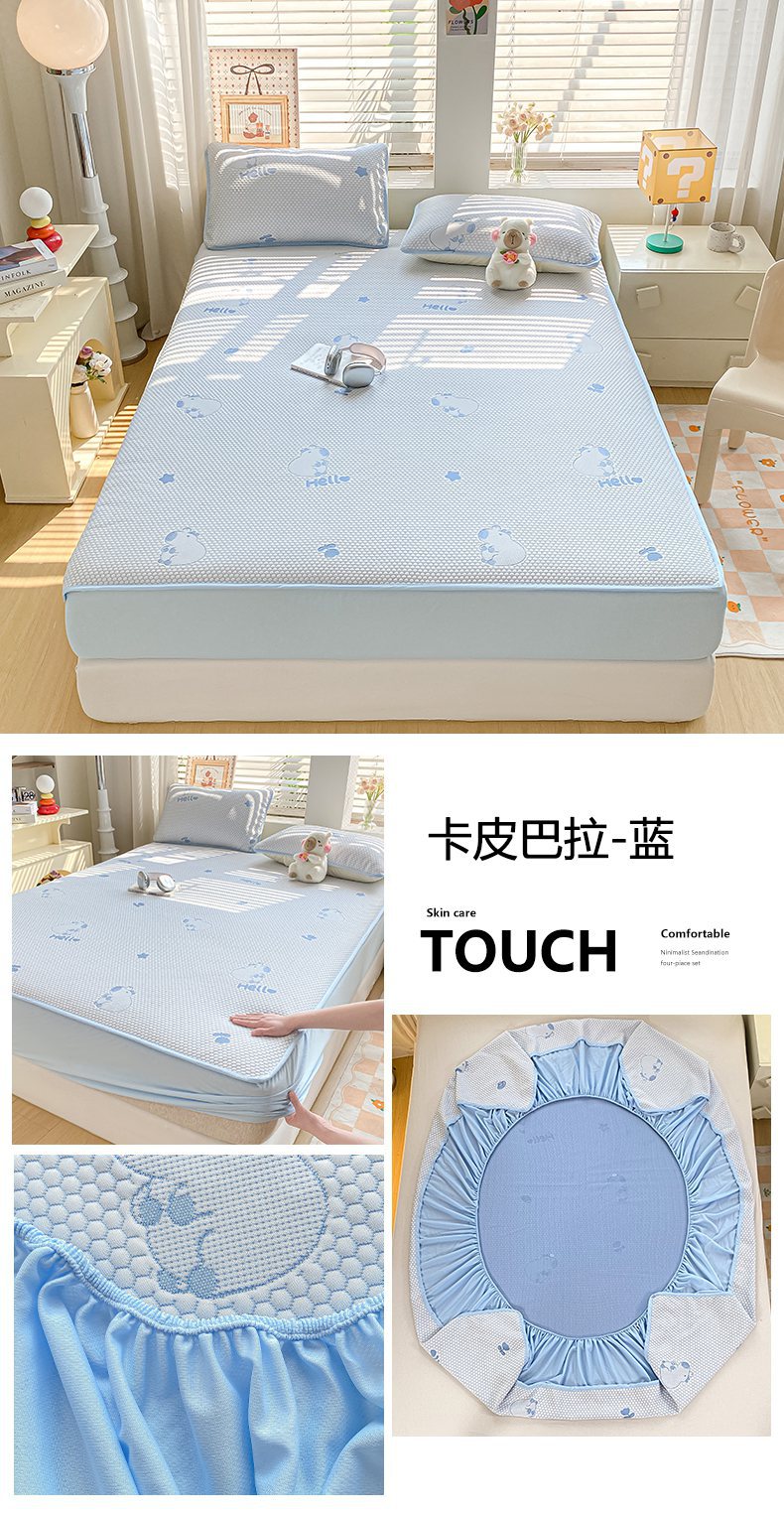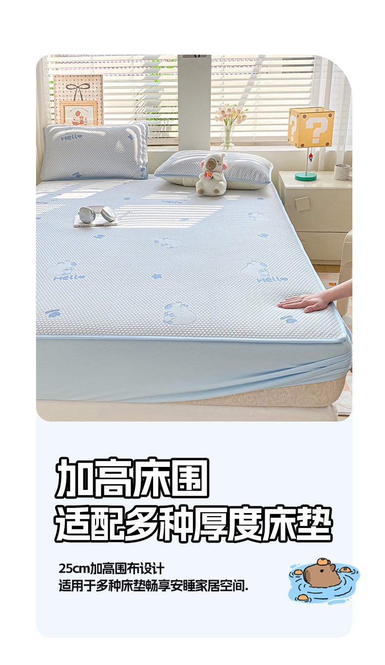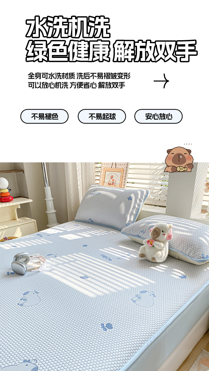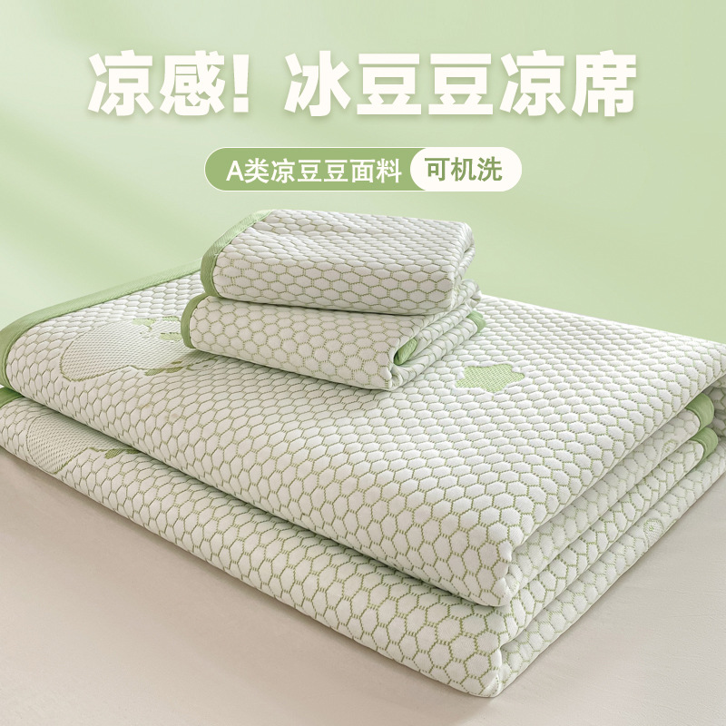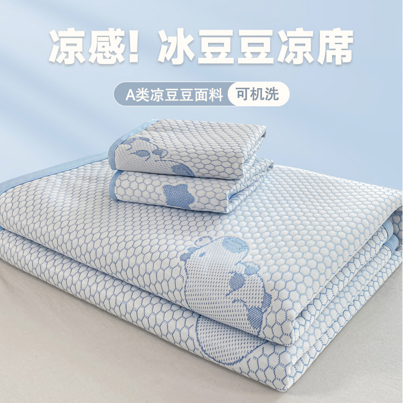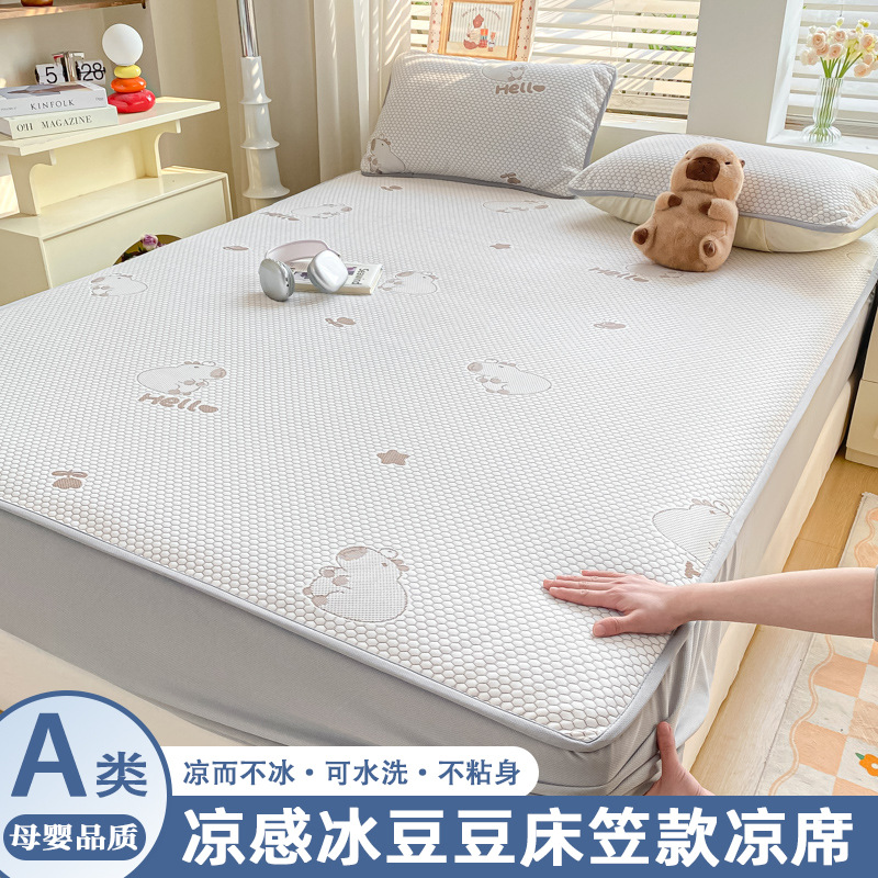 A类凉席三件套夏季冰丝席学生两件套可折叠床笠款席子冰丝床单