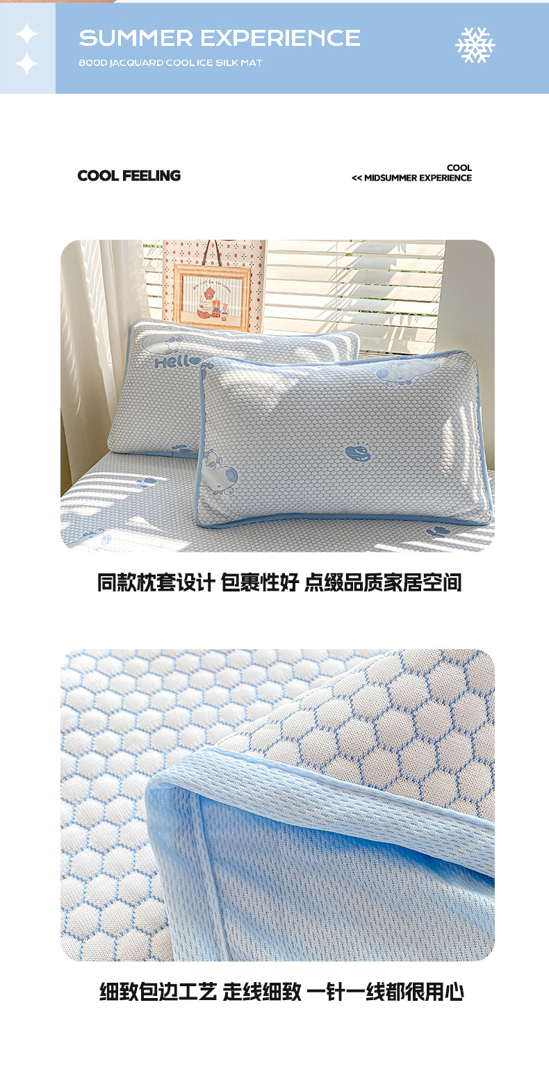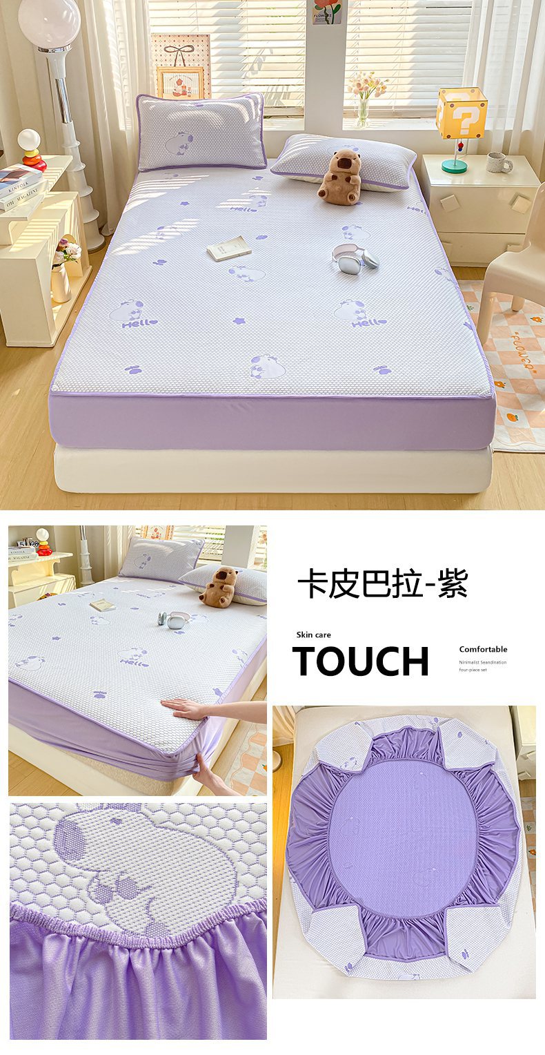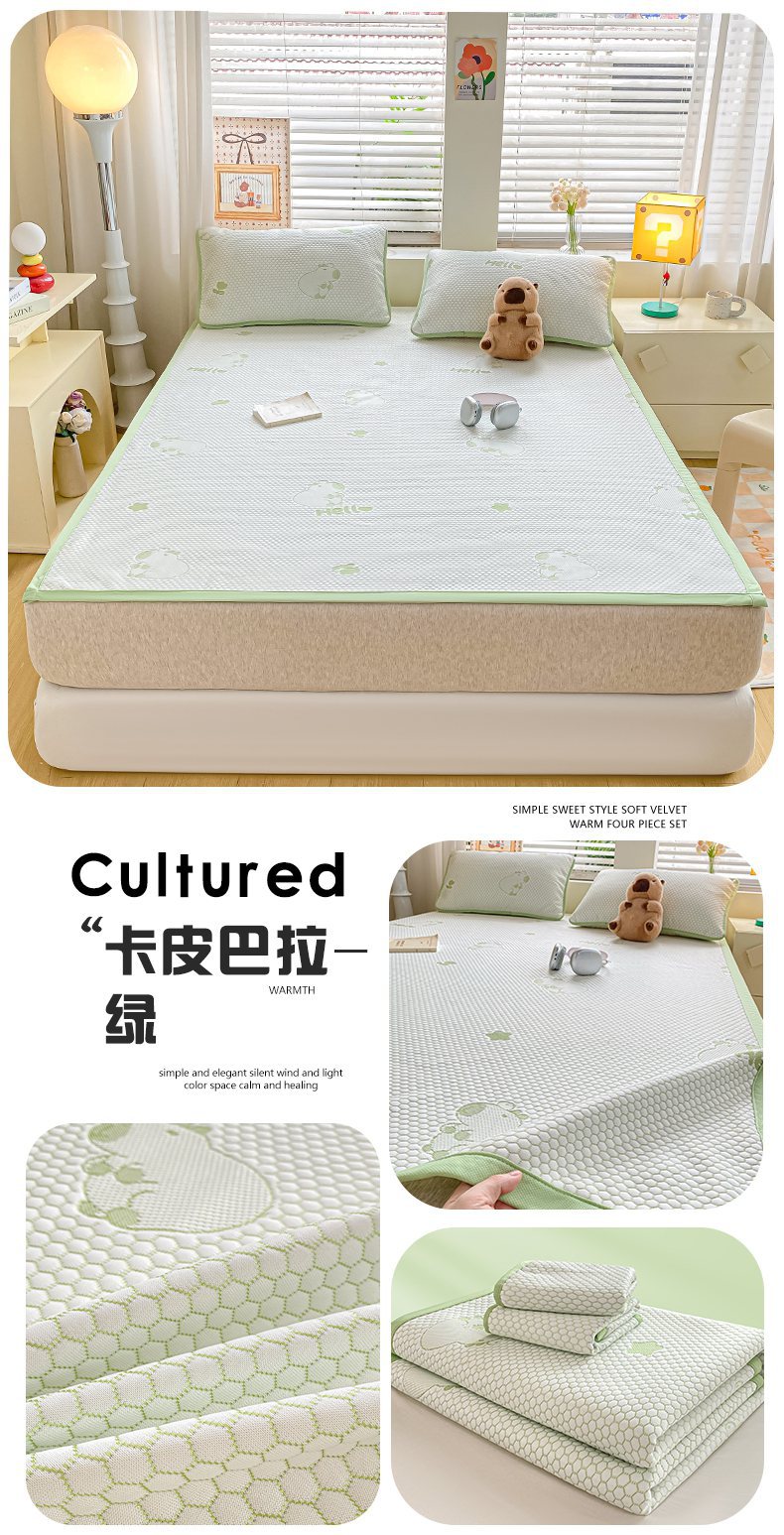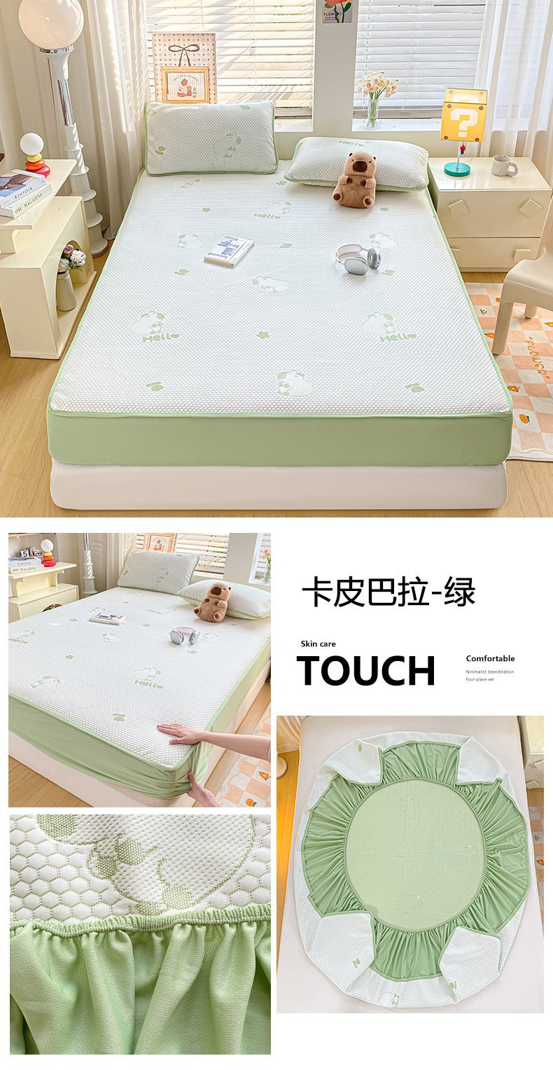 A类凉席三件套夏季冰丝席学生两件套可折叠床笠款席子冰丝床单