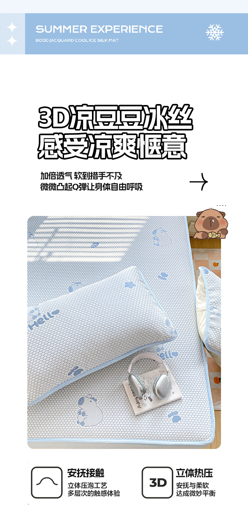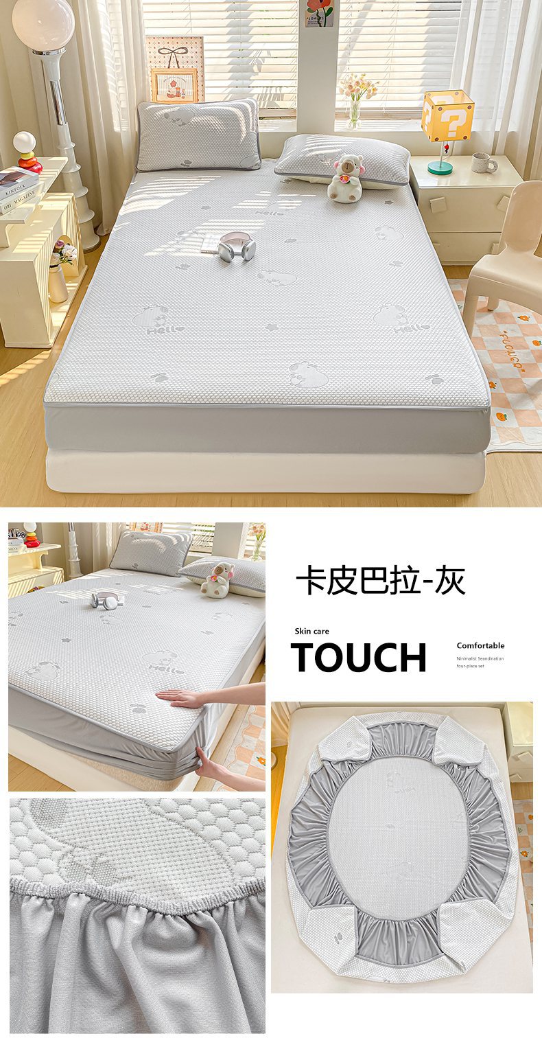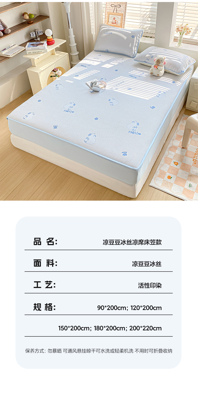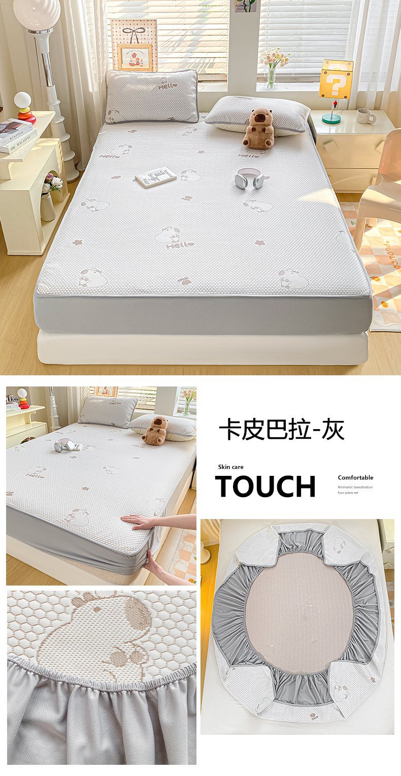 A类凉席三件套夏季冰丝席学生两件套可折叠床笠款席子冰丝床单