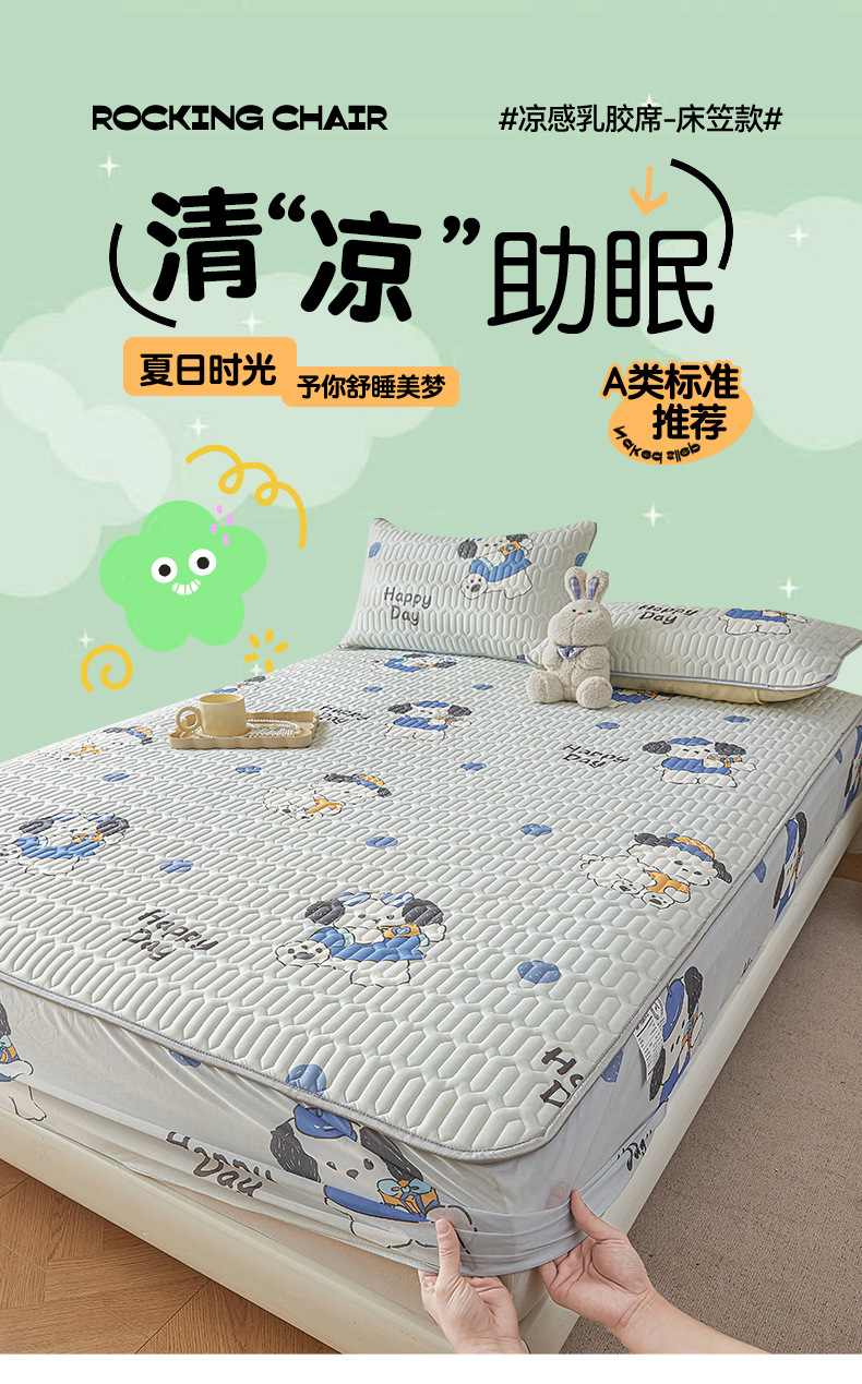 乳胶凉席三件套可机洗空调软席子冰丝席床笠夏季凉感夏凉席床垫套
