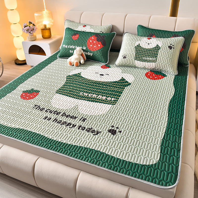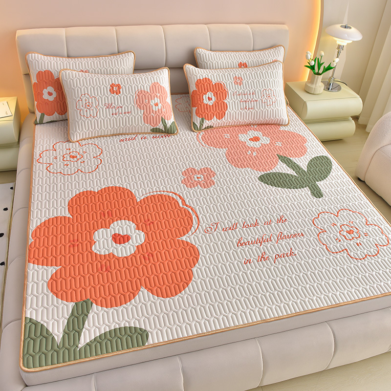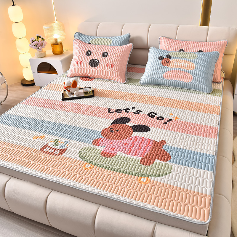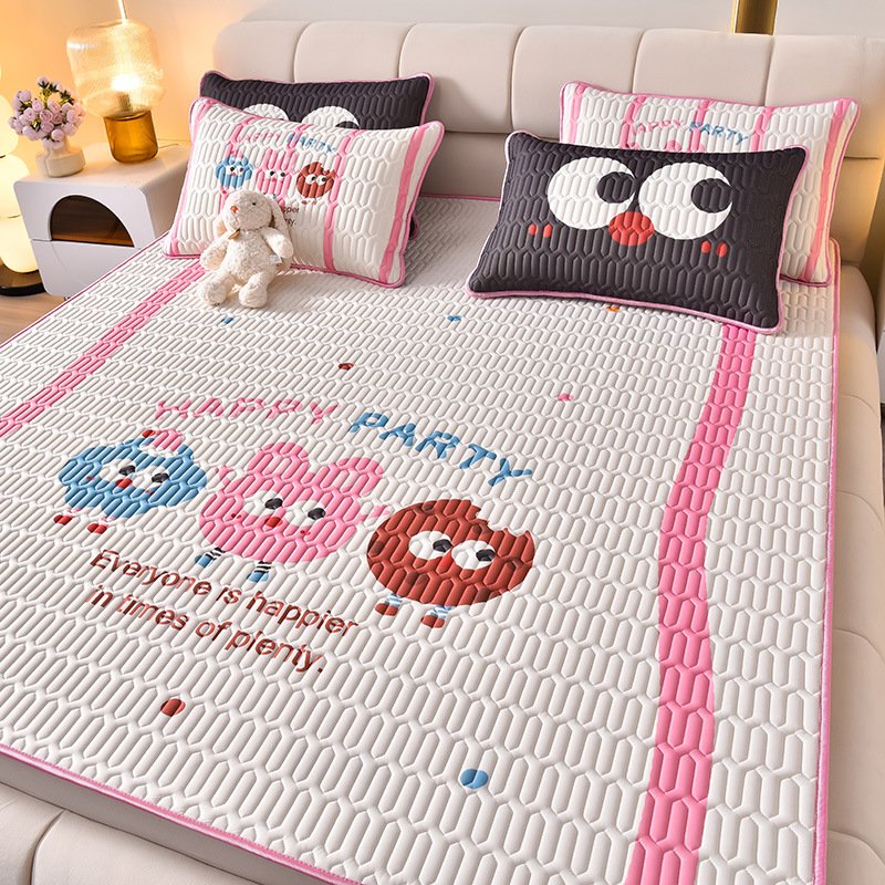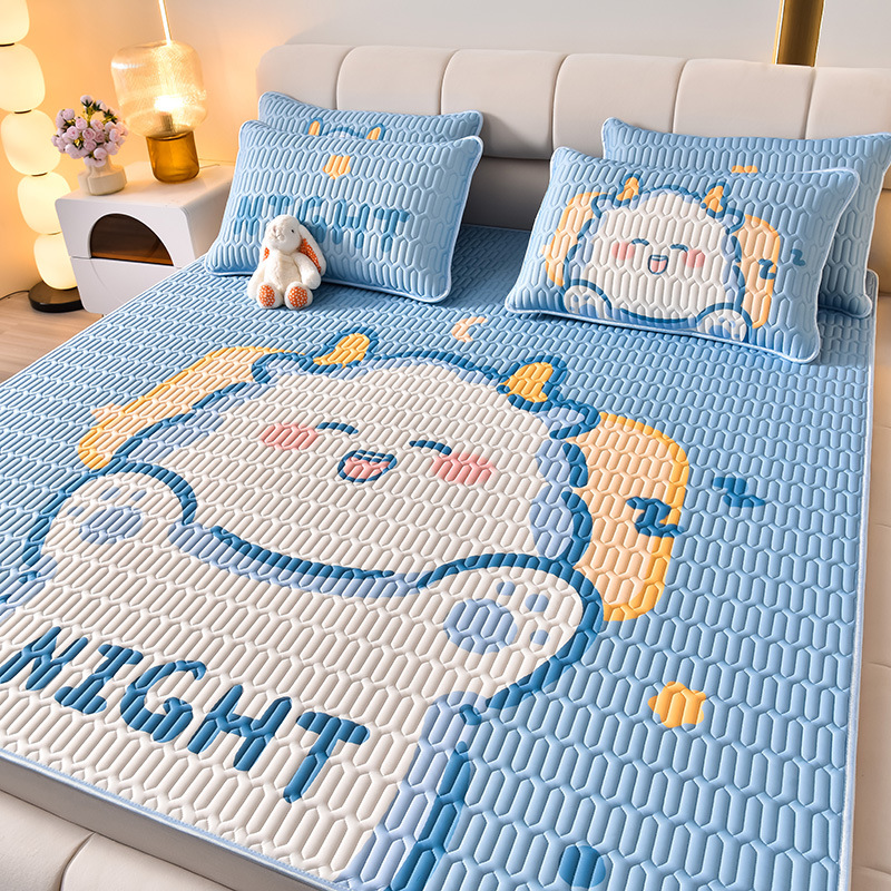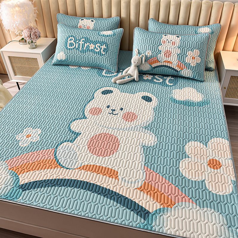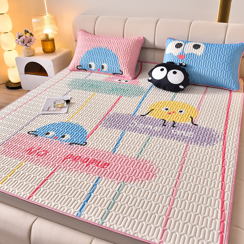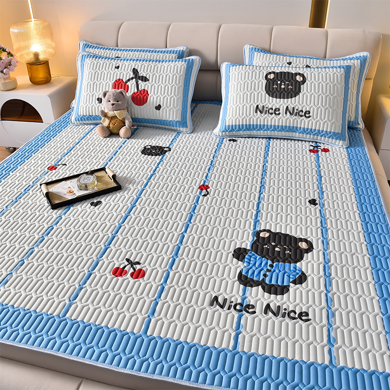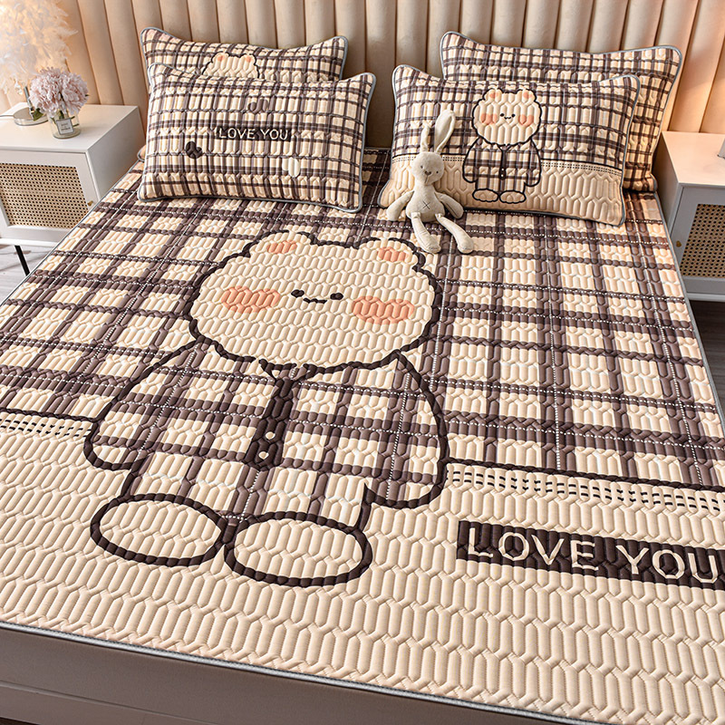 夏季冰丝乳胶凉席三件套床单款空调软席子学生宿舍可水洗家用凉席