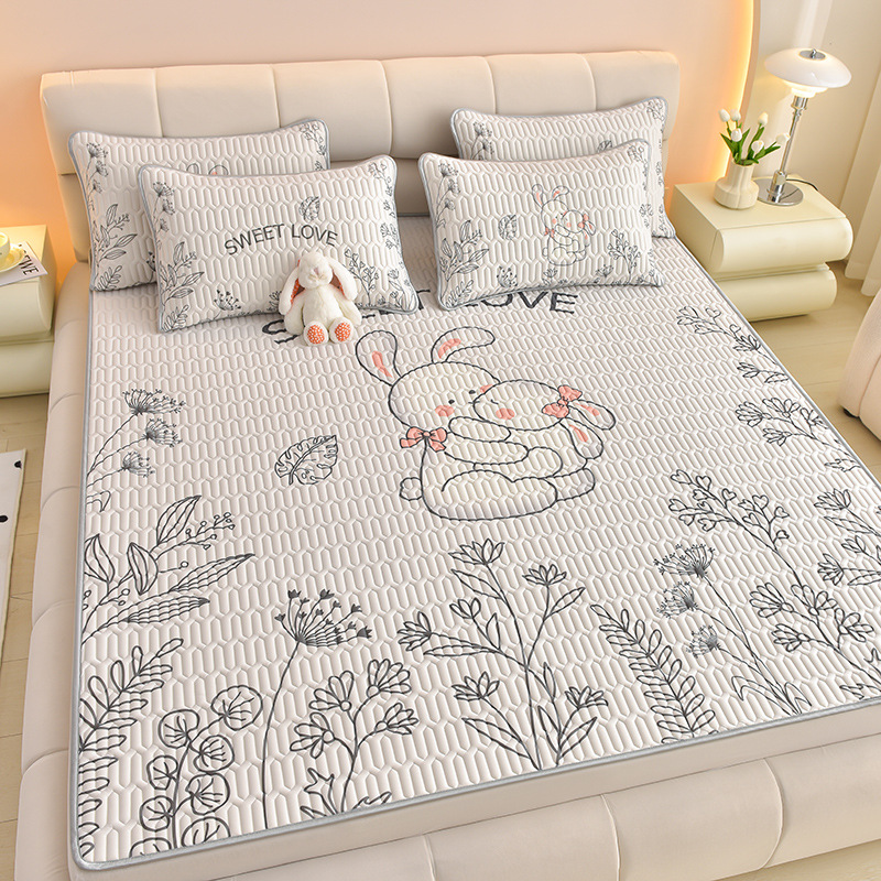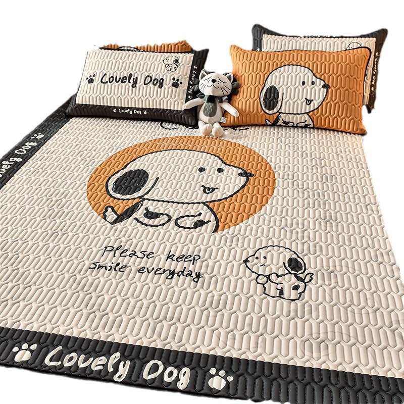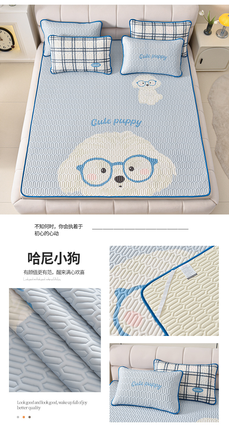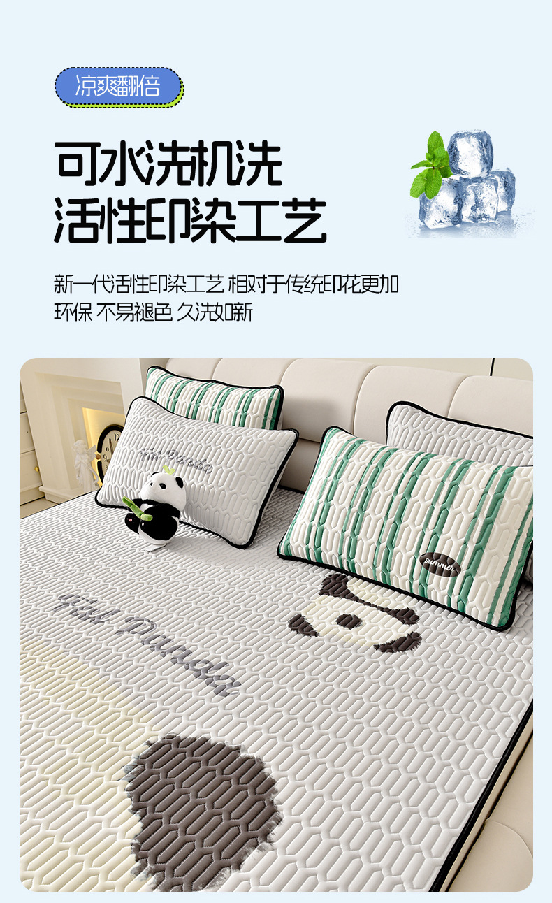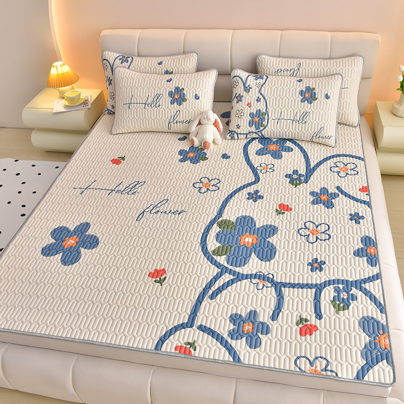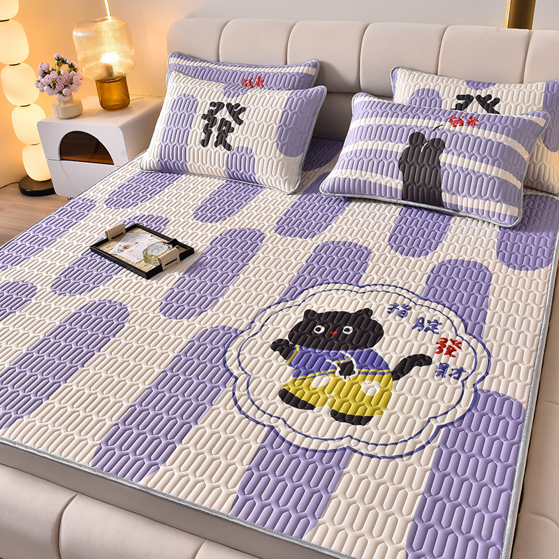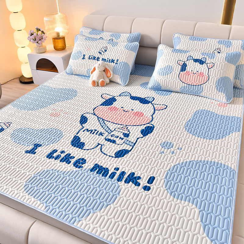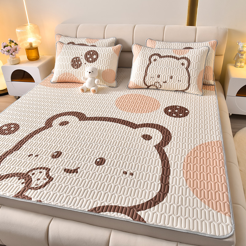 夏季冰丝乳胶凉席三件套床单款空调软席子学生宿舍可水洗家用凉席
