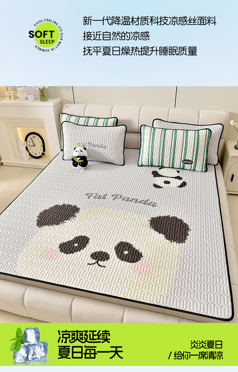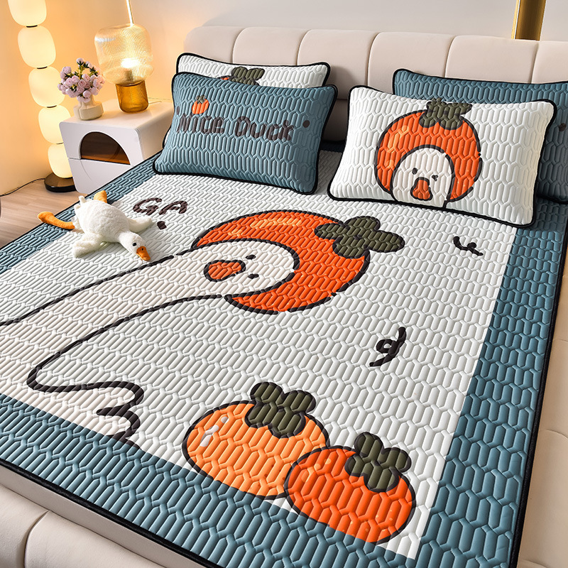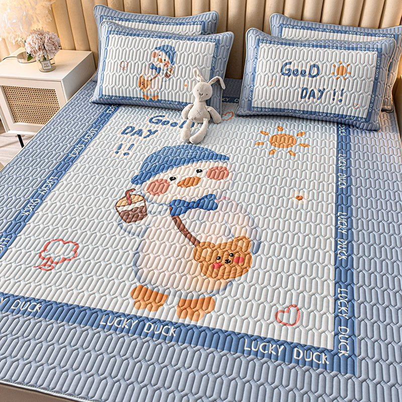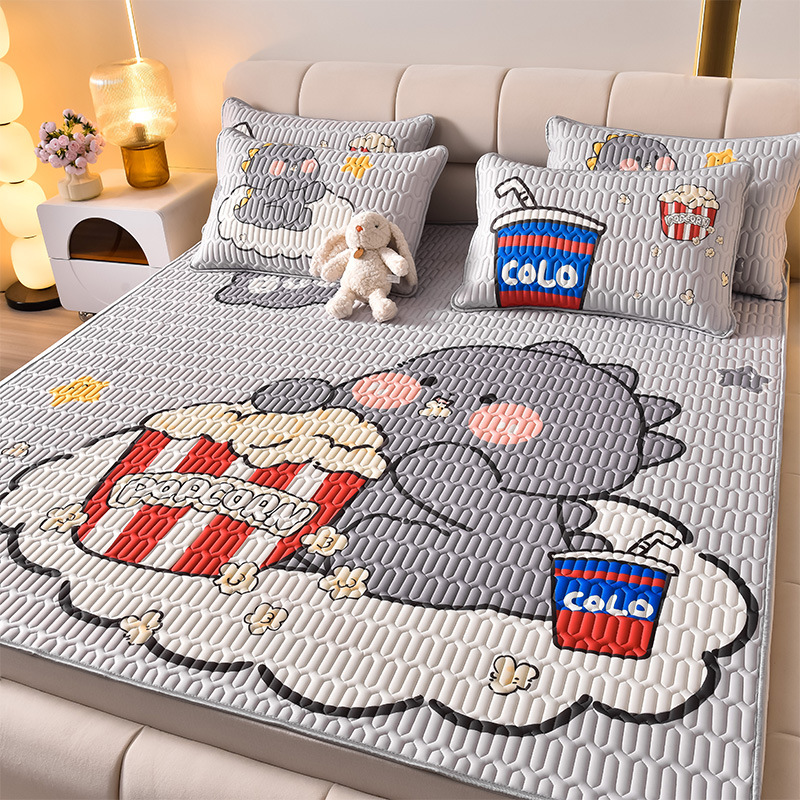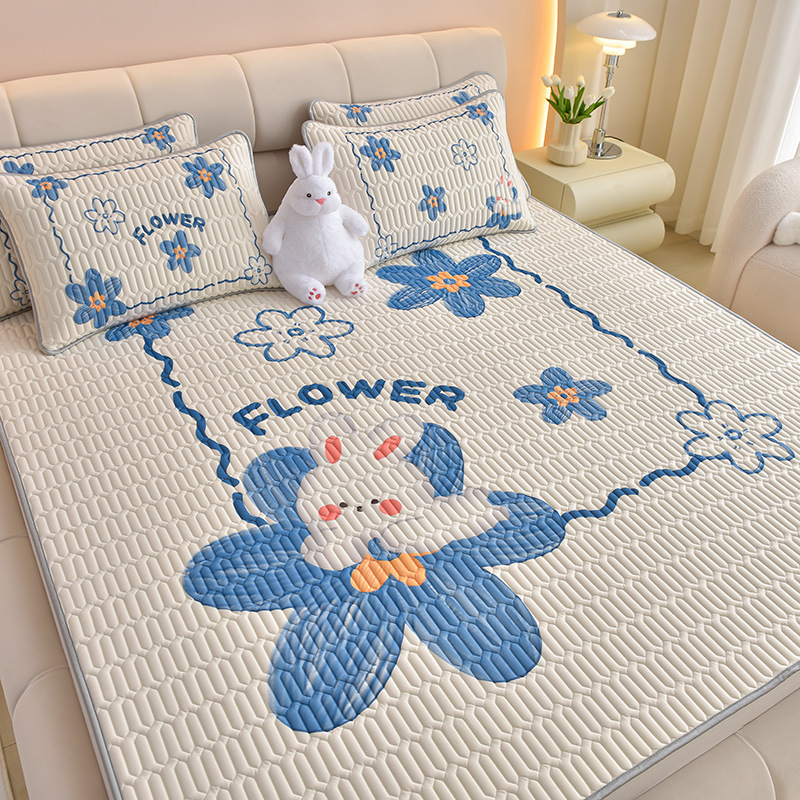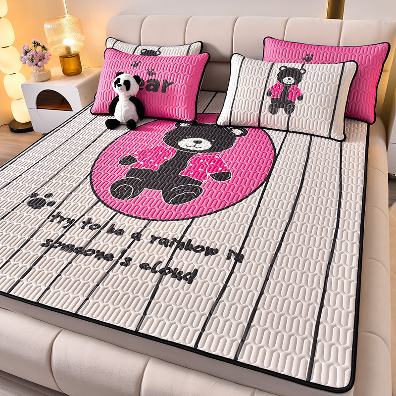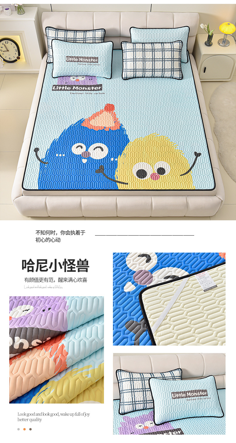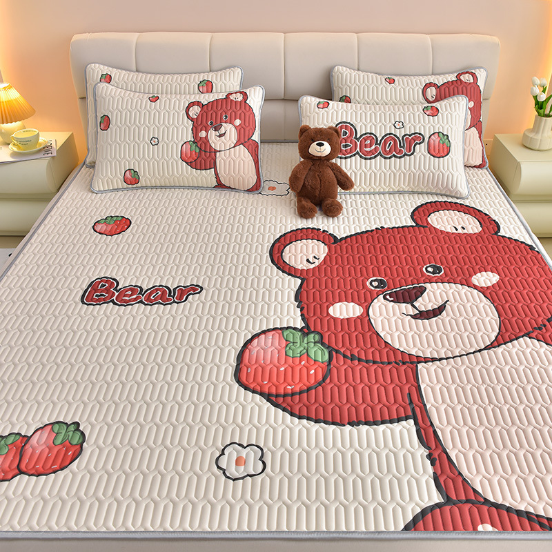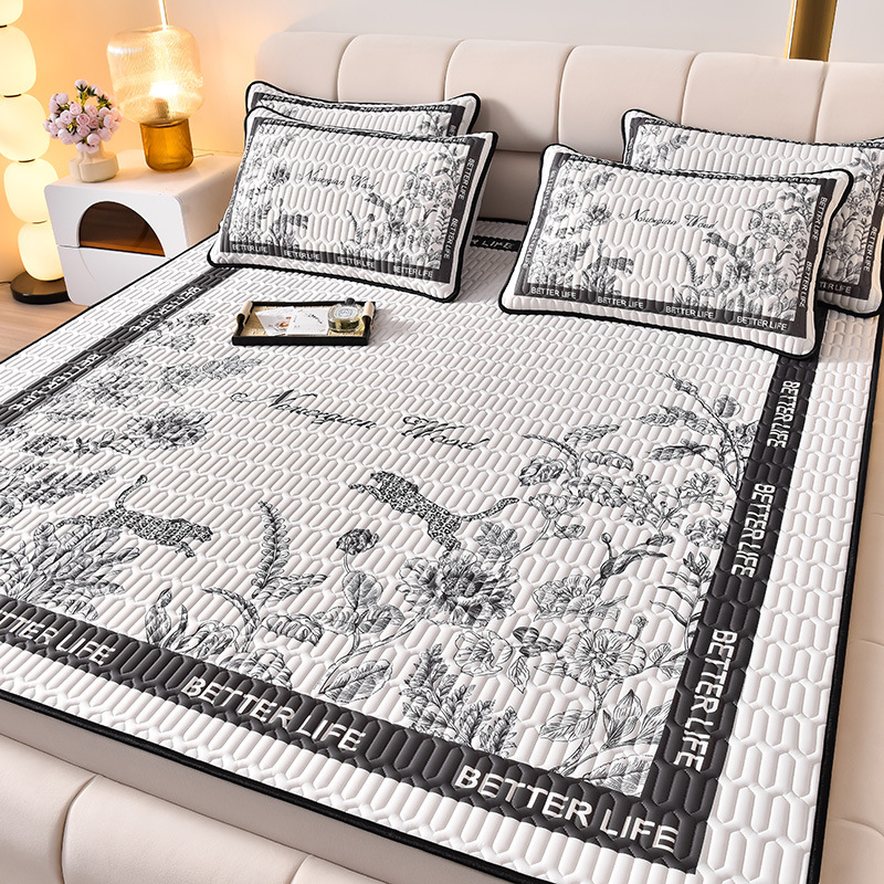 夏季冰丝乳胶凉席三件套床单款空调软席子学生宿舍可水洗家用凉席