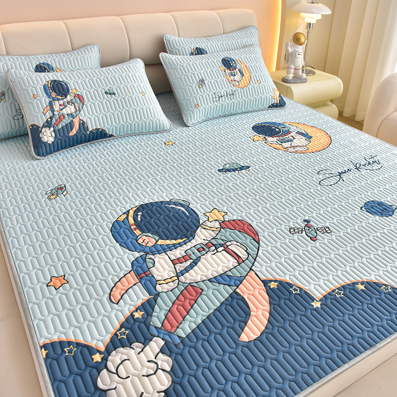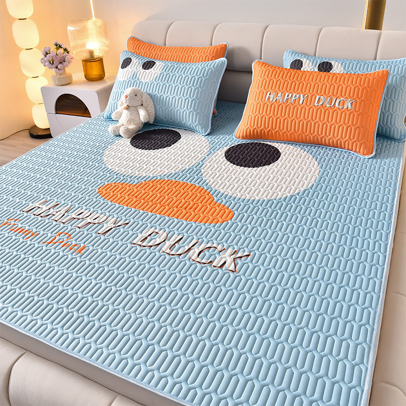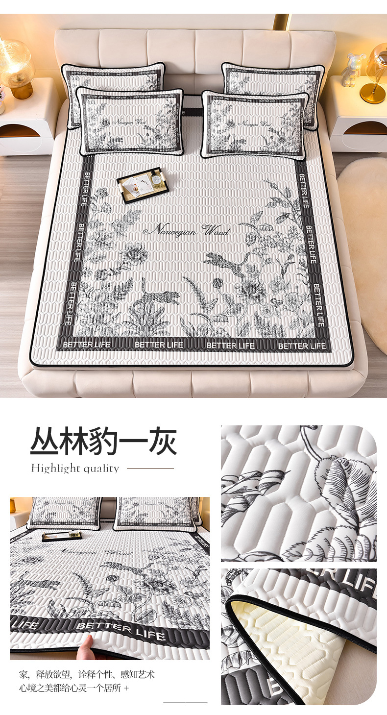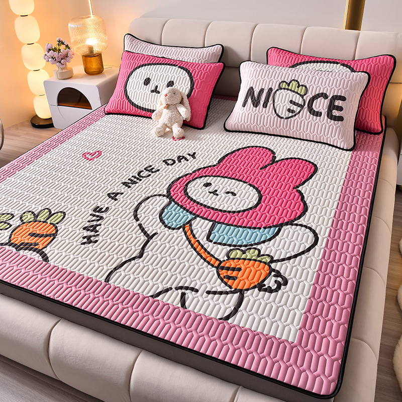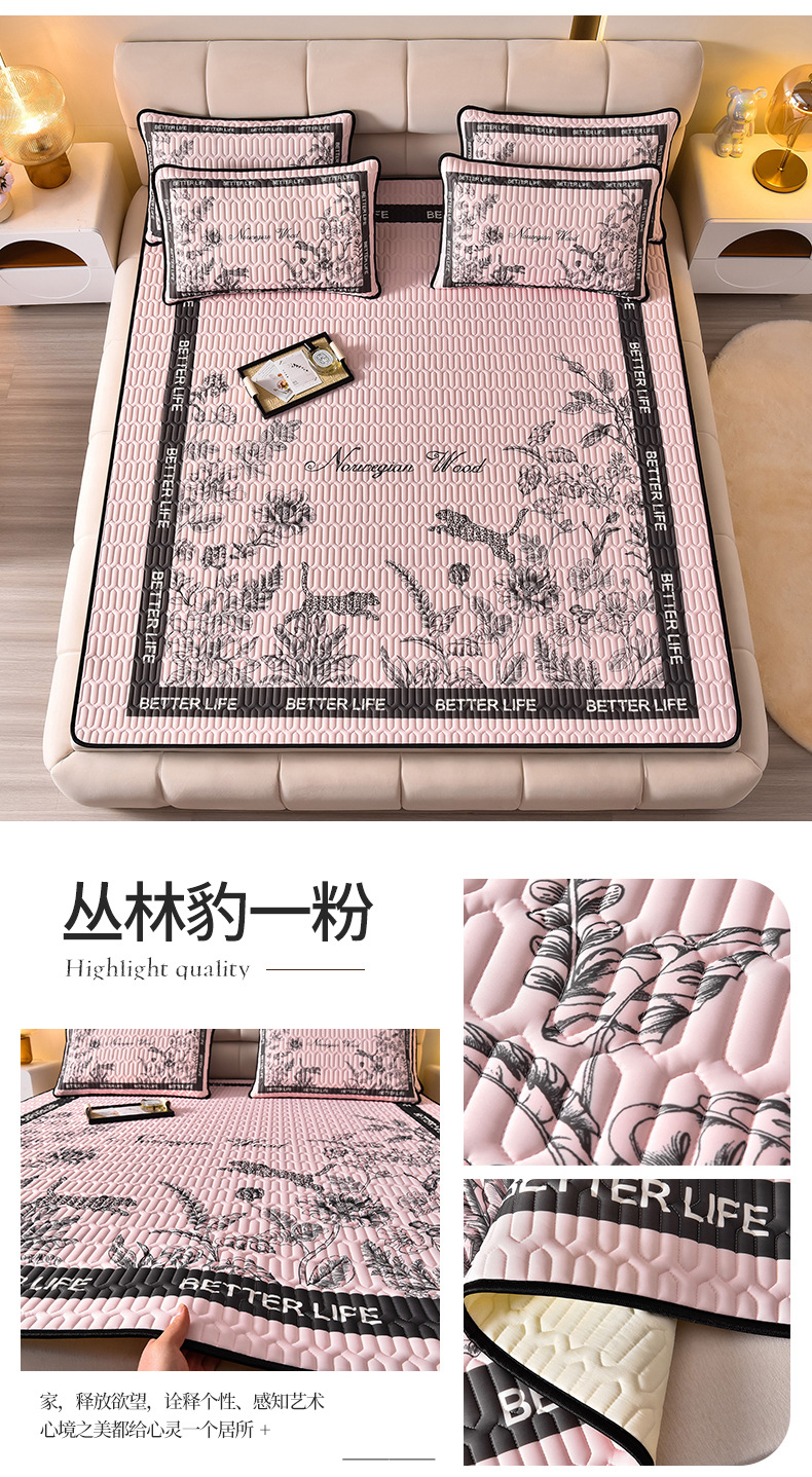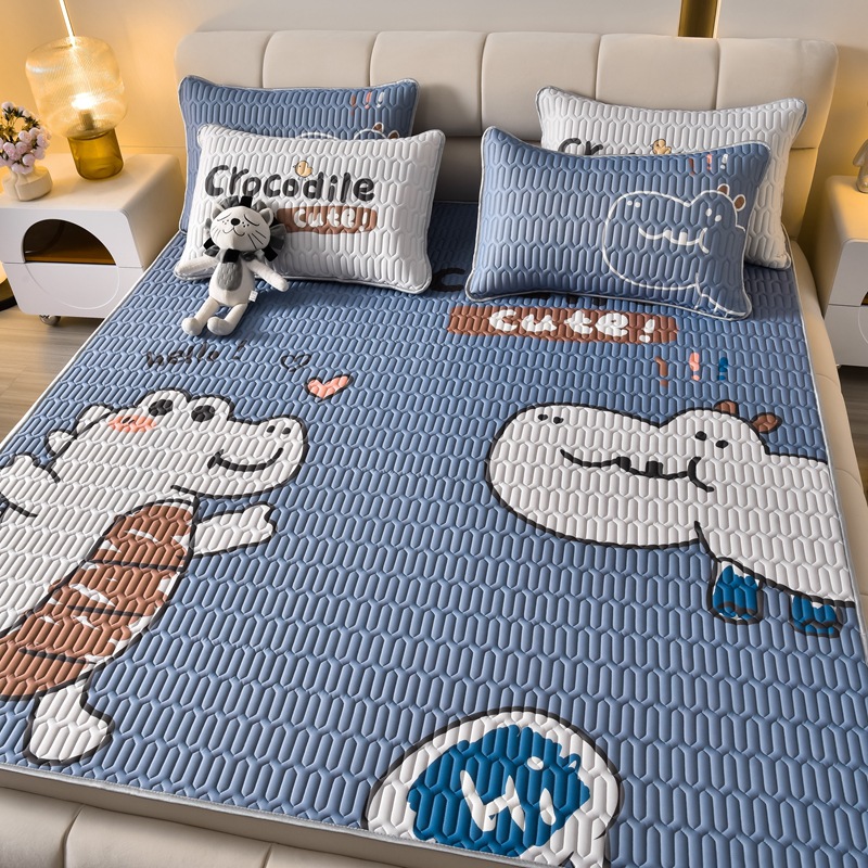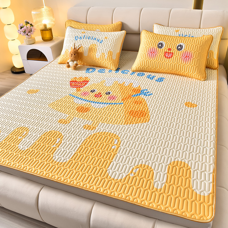 夏季冰丝乳胶凉席三件套床单款空调软席子学生宿舍可水洗家用凉席
