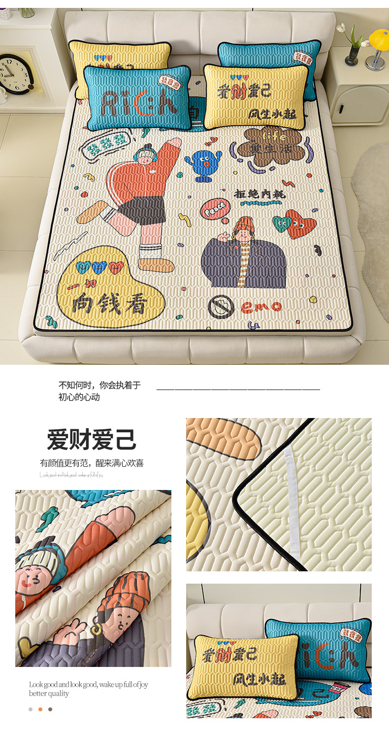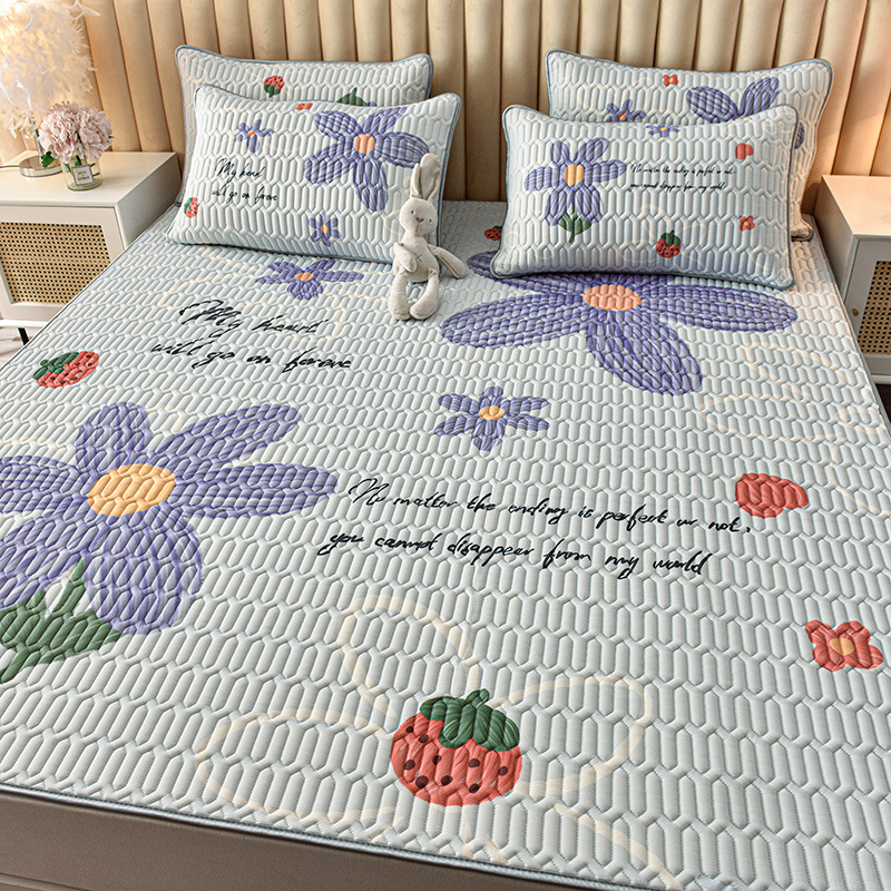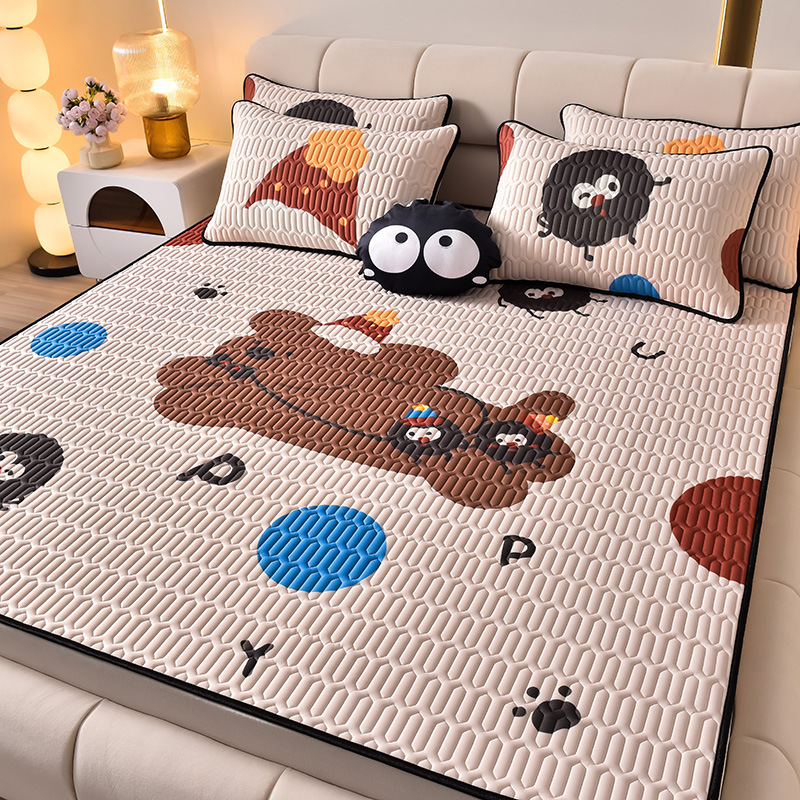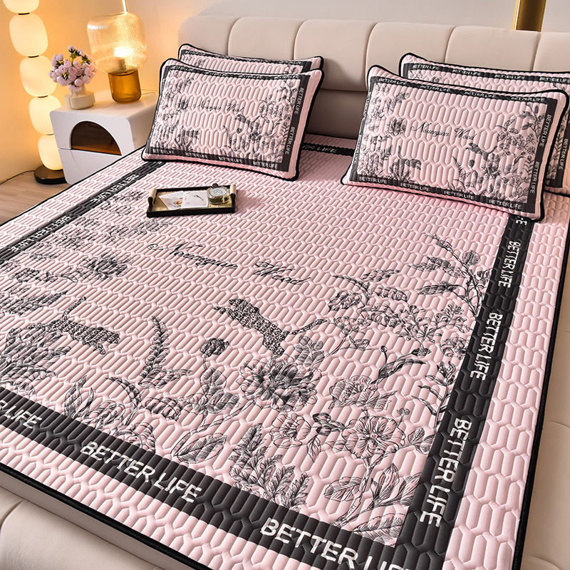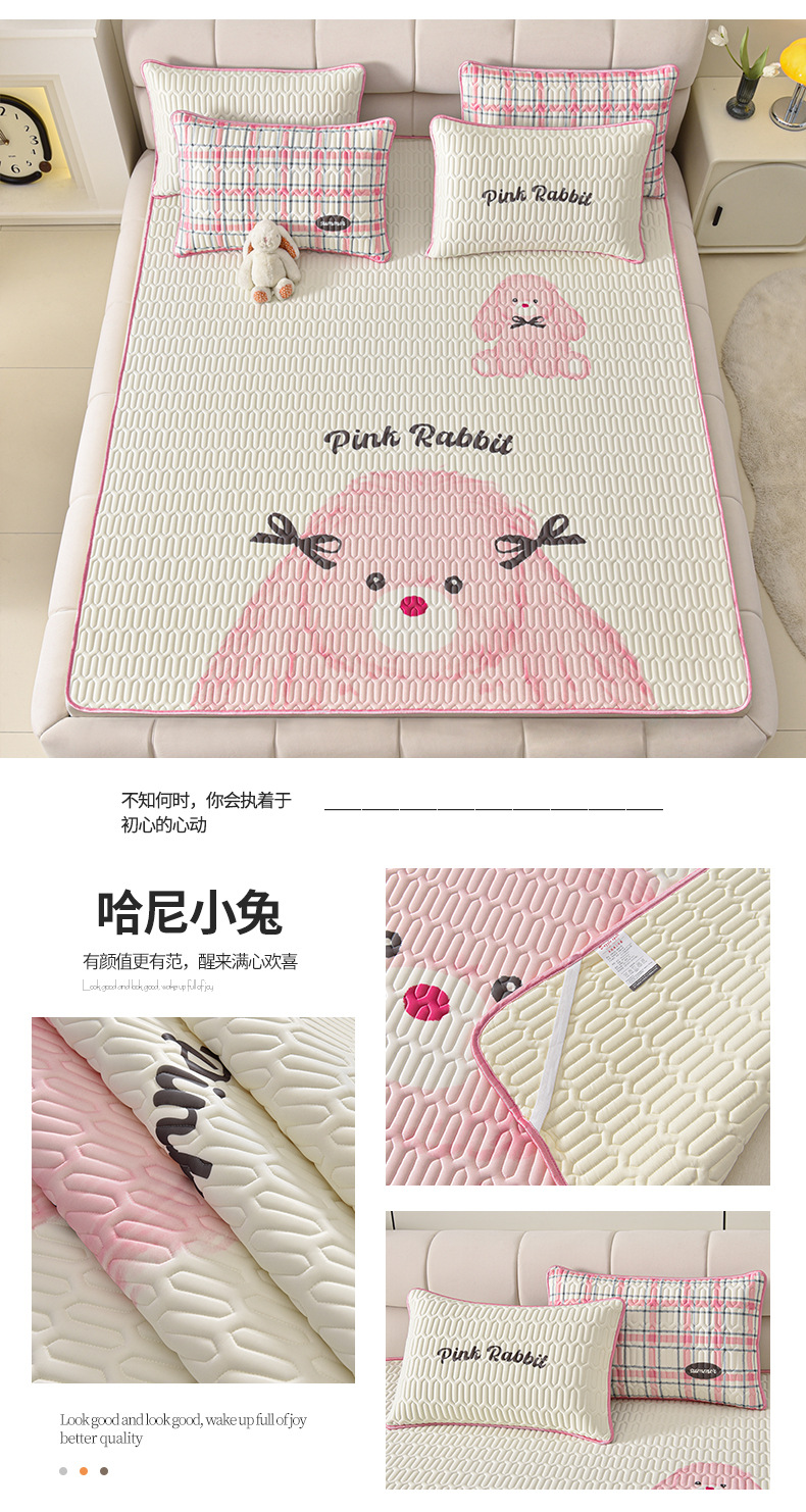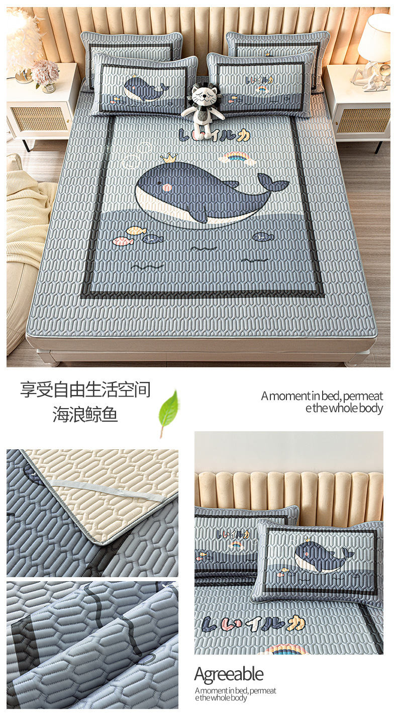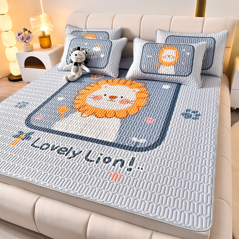夏季冰丝乳胶凉席三件套床单款空调软席子学生宿舍可水洗家用凉席