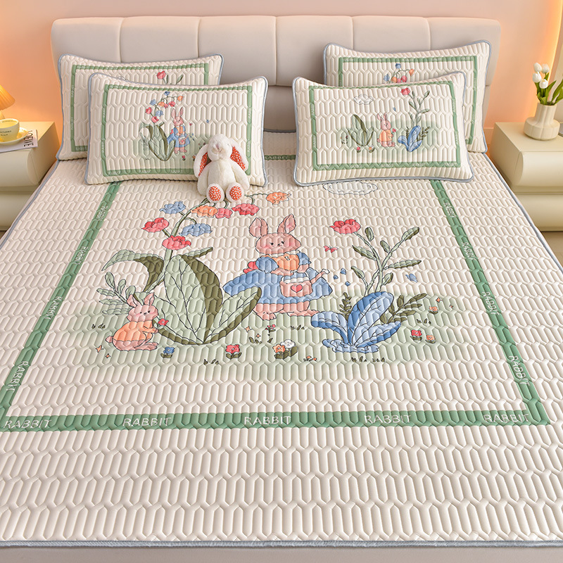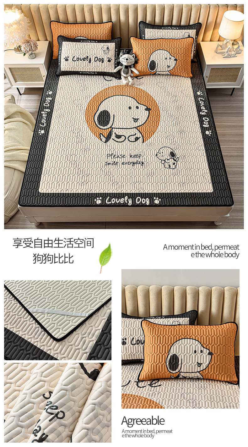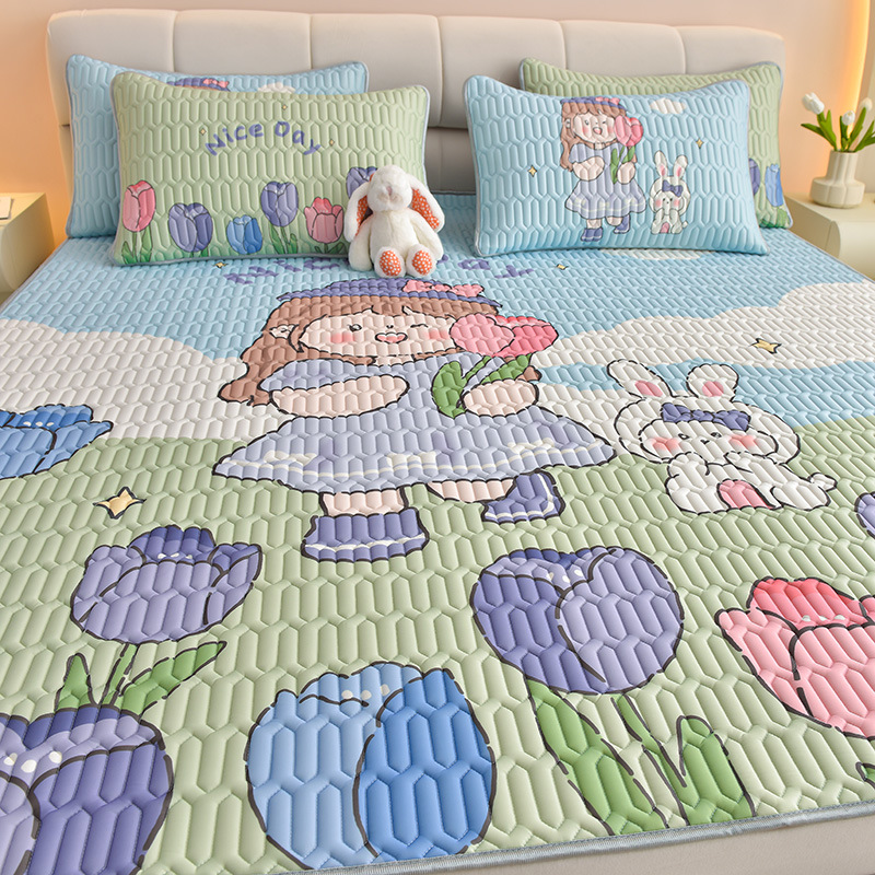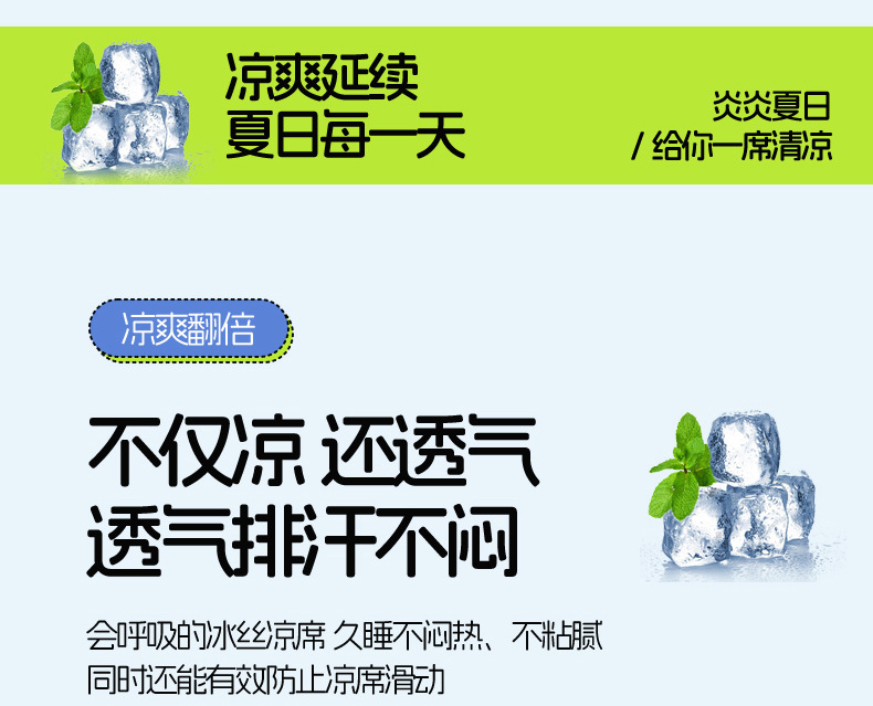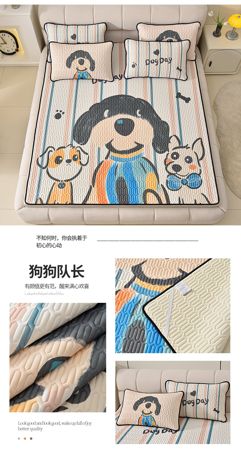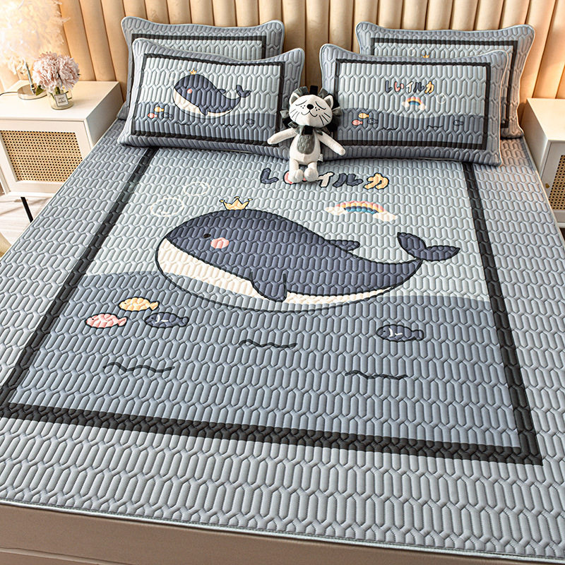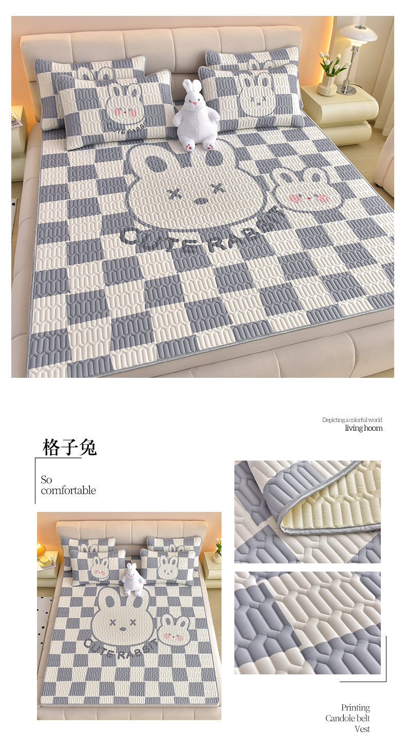 夏季冰丝乳胶凉席三件套床单款空调软席子学生宿舍可水洗家用凉席
