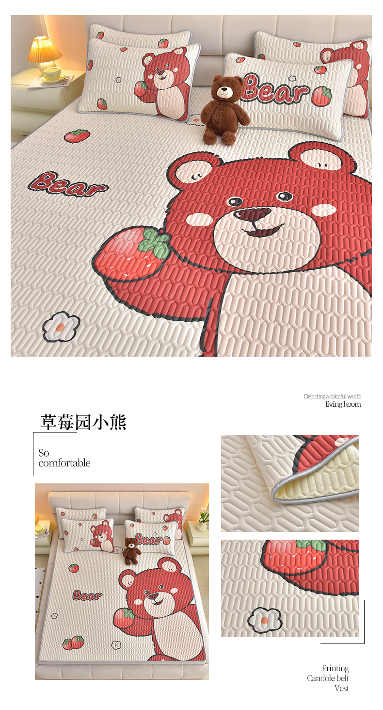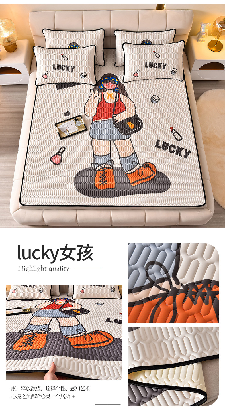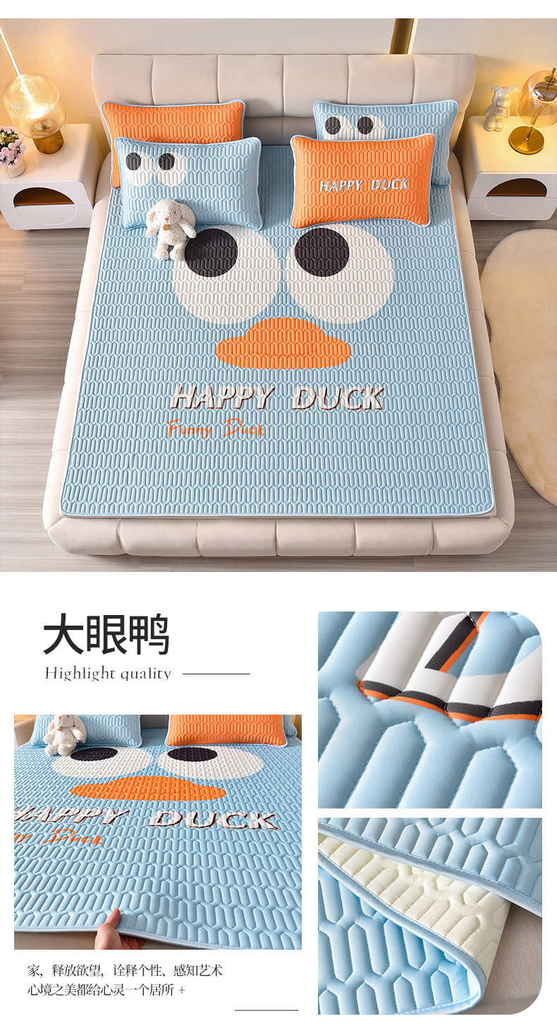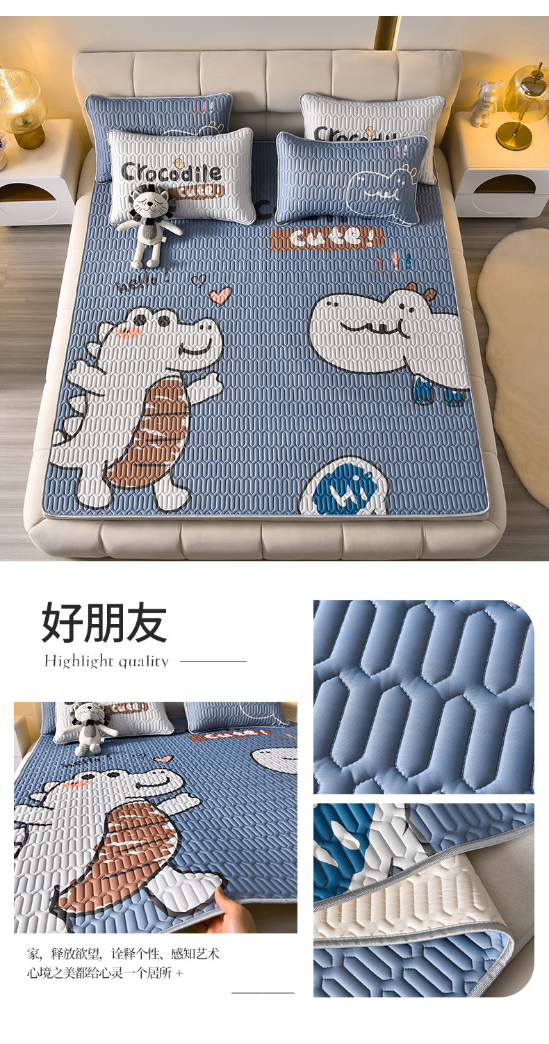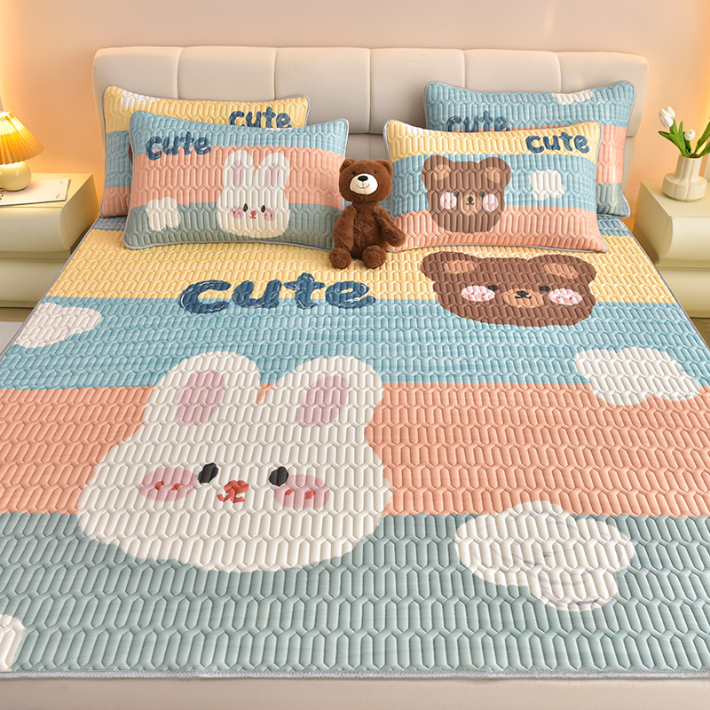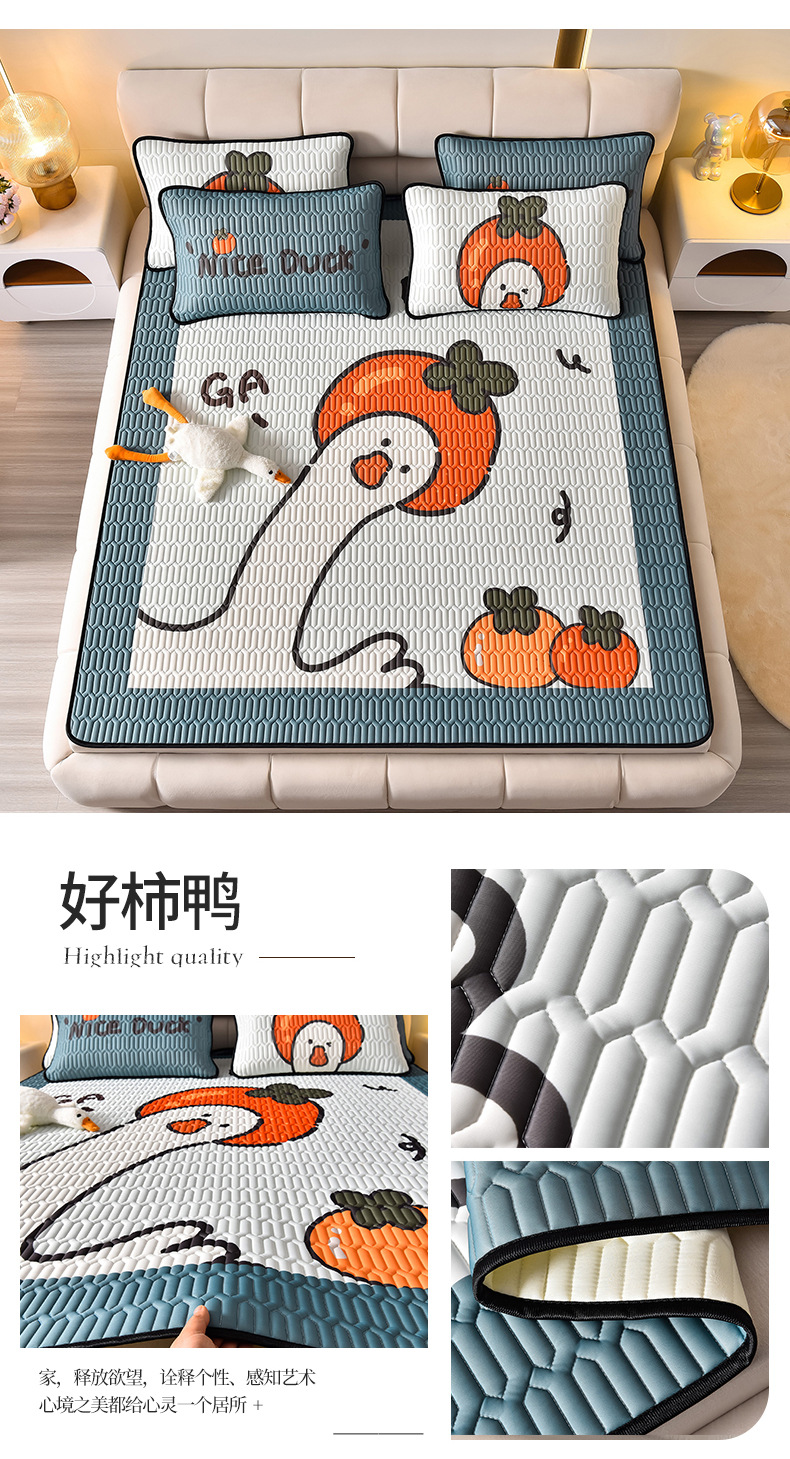 夏季冰丝乳胶凉席三件套床单款空调软席子学生宿舍可水洗家用凉席