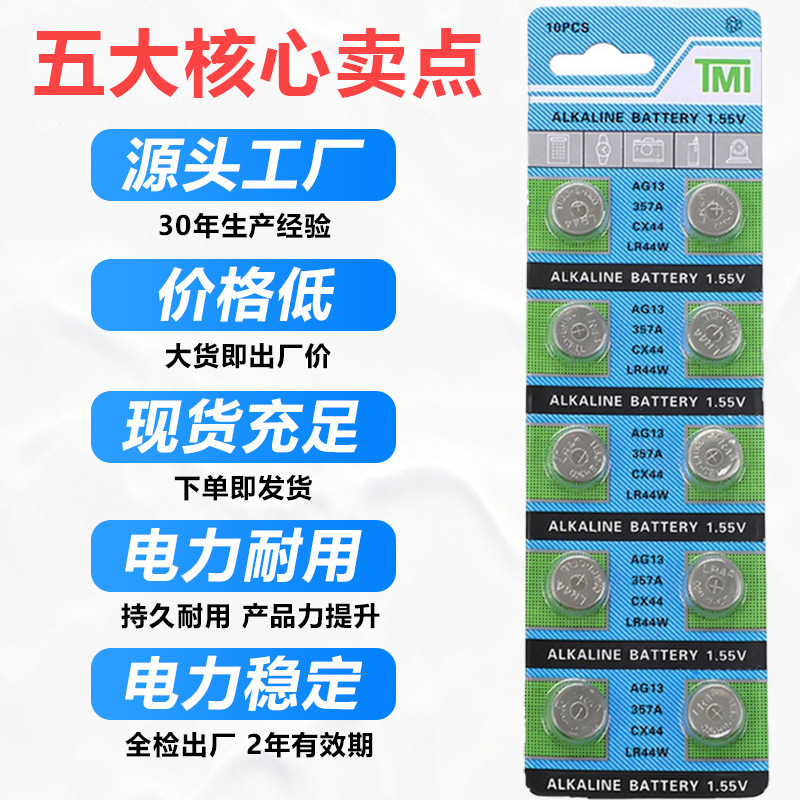 TMI1.55V纽扣电池LR44电池LR41厂家直供AG1手表LR621电子产品