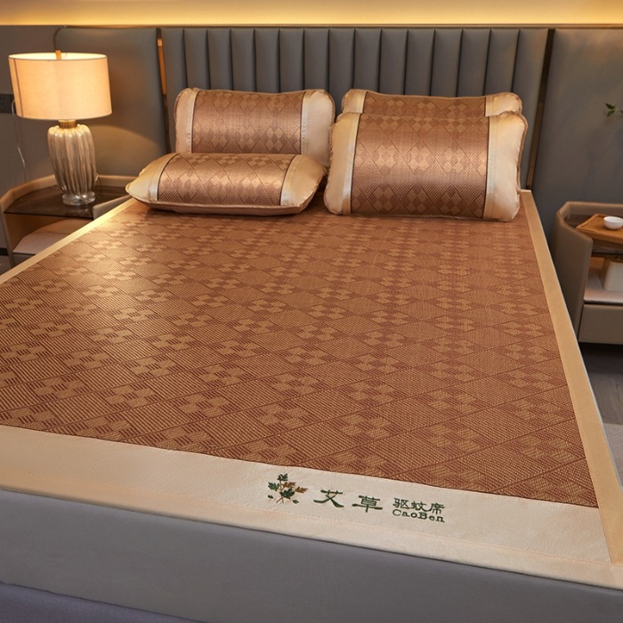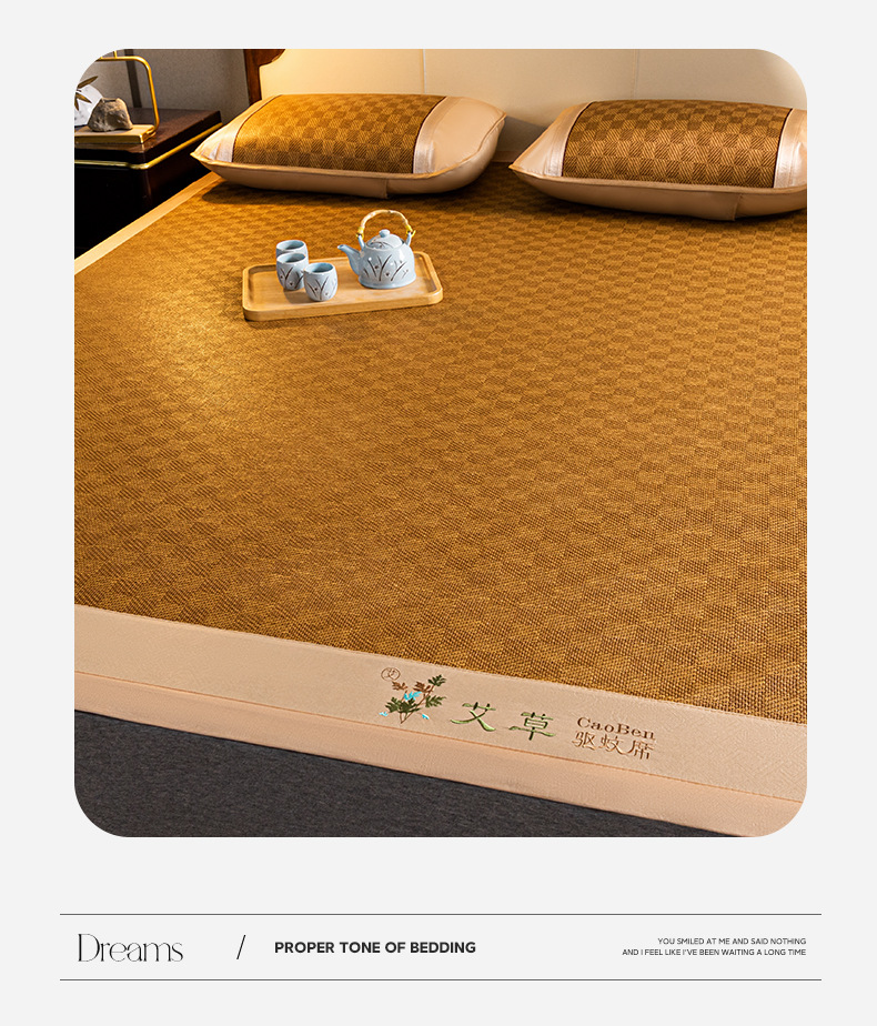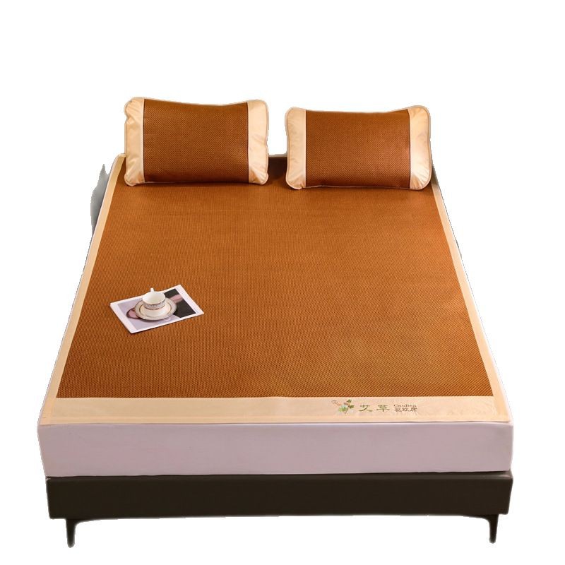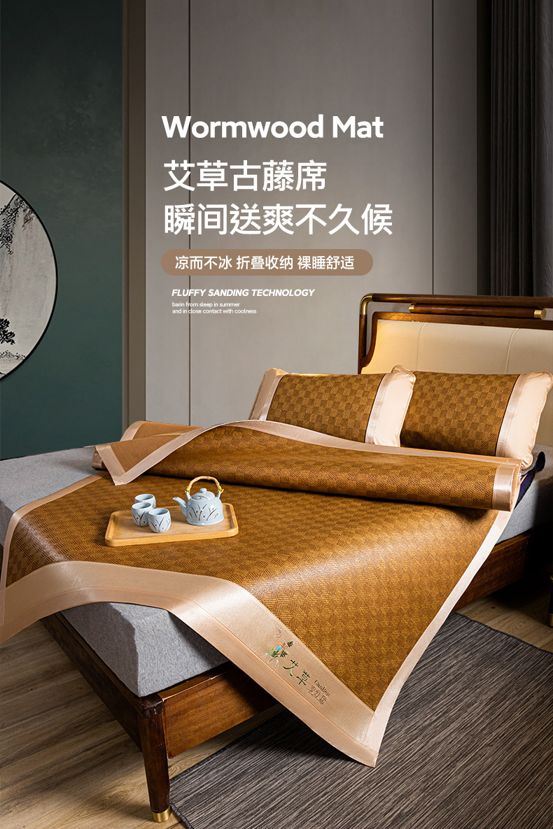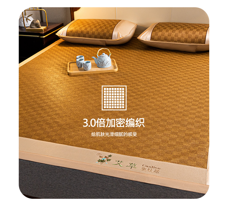 夏季艾草凉席藤席三件套双人床可折叠学生宿舍加厚席子冰丝席竹席
