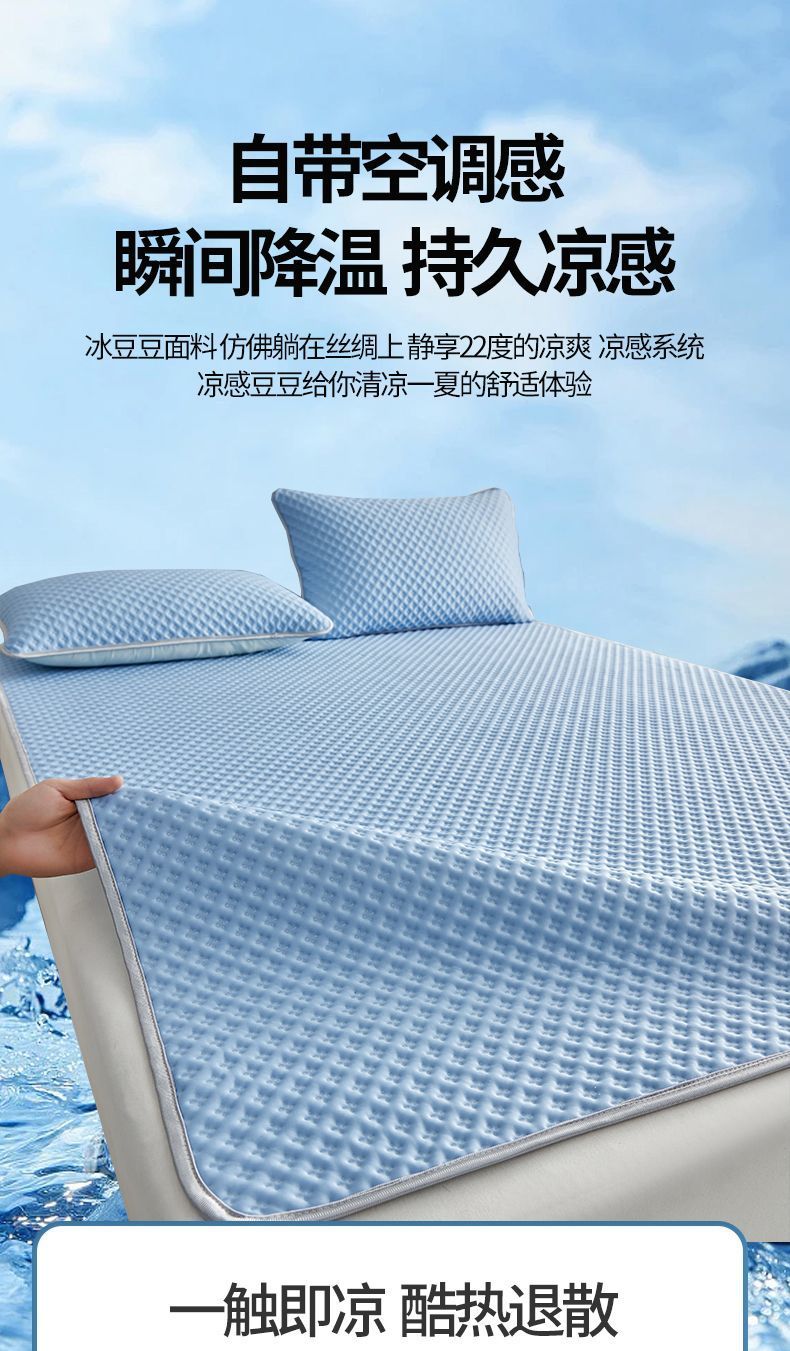 冰丝凉感A类软空调夏季家用双人凉席三件套冰席子水洗豆豆可机洗