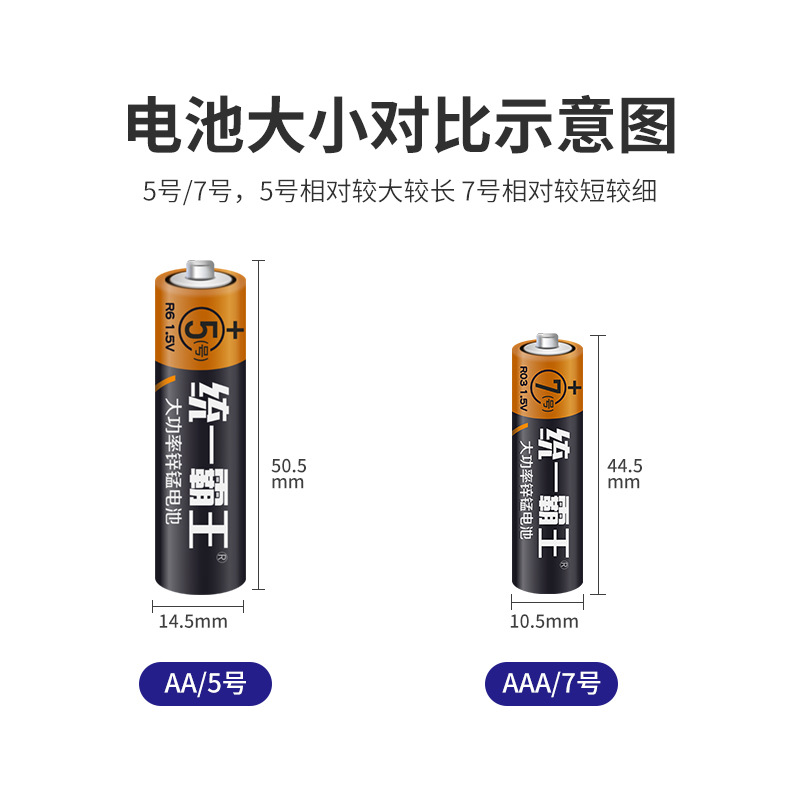 统一霸王5号7号电池 四粒卡装AA电池2元店多元店玩具电池配套批发