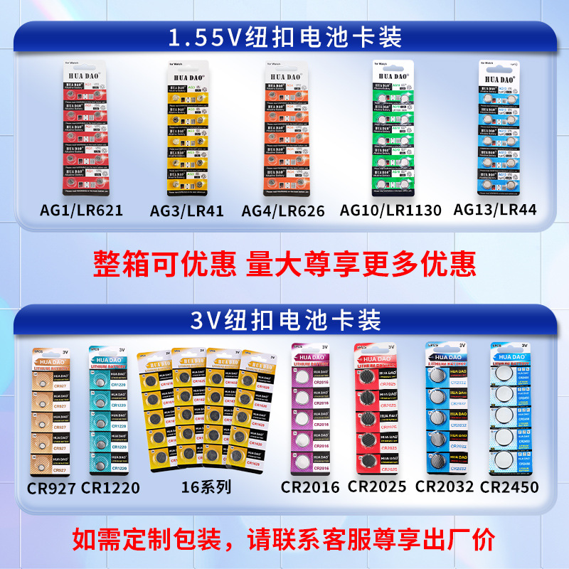 批发AG3AG10AG13电子LR1130LR41LR44CR2450CR2025CR2032纽扣电池