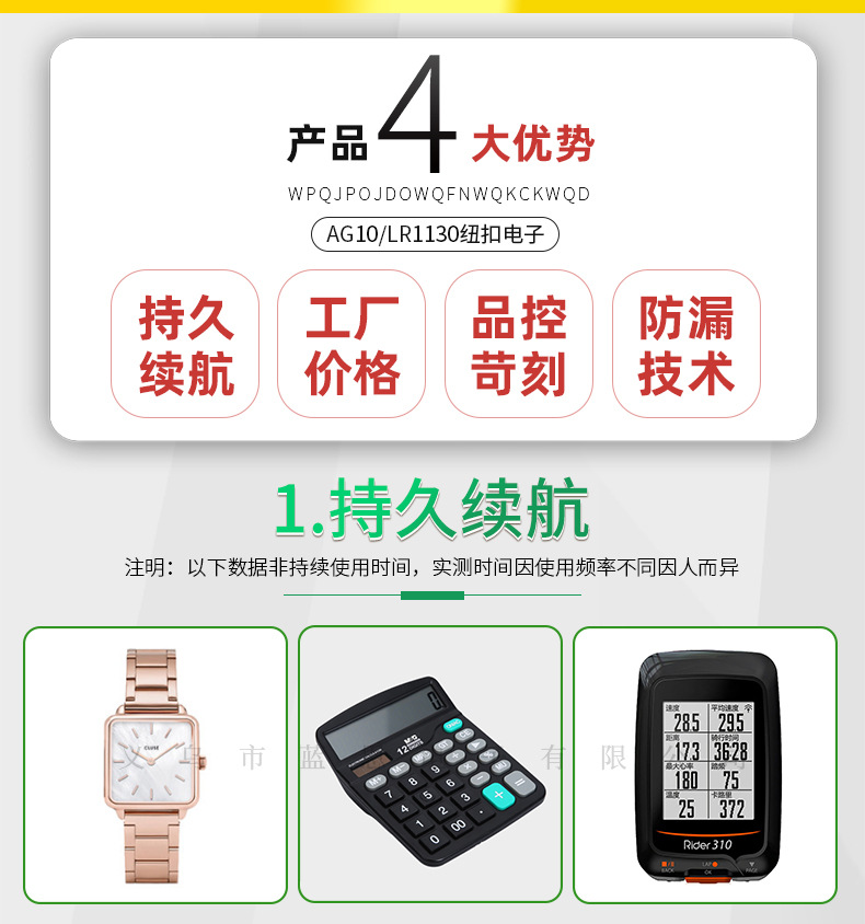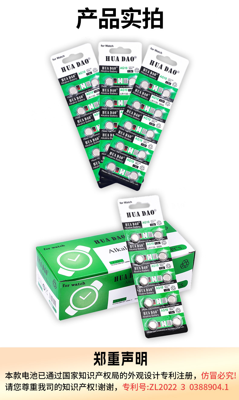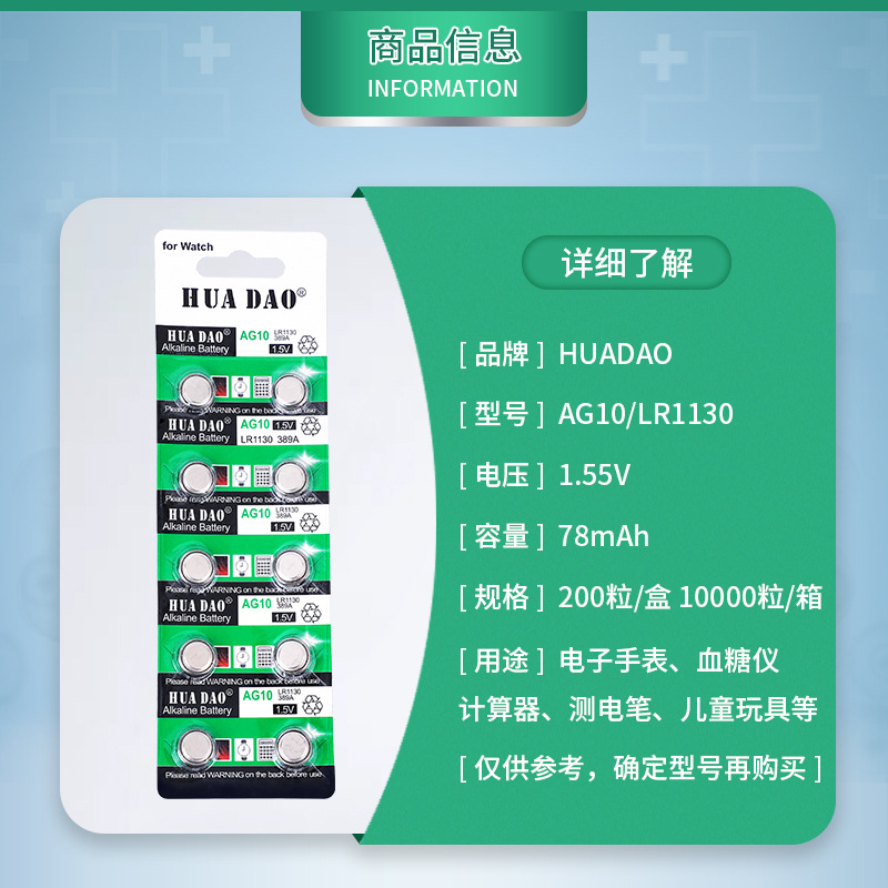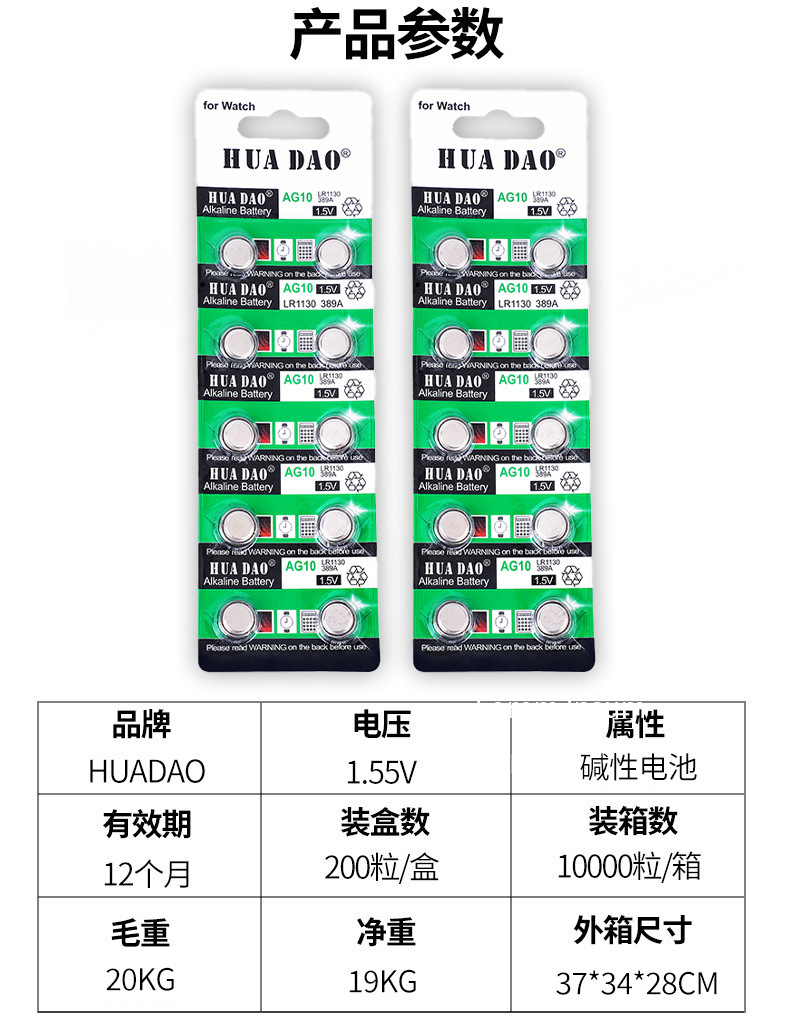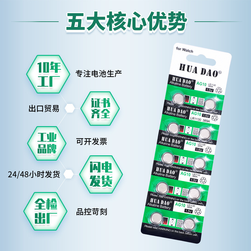 AG10纽扣电池 LR1130手表感应灯专用华道牌LR54钮扣电子厂家批发