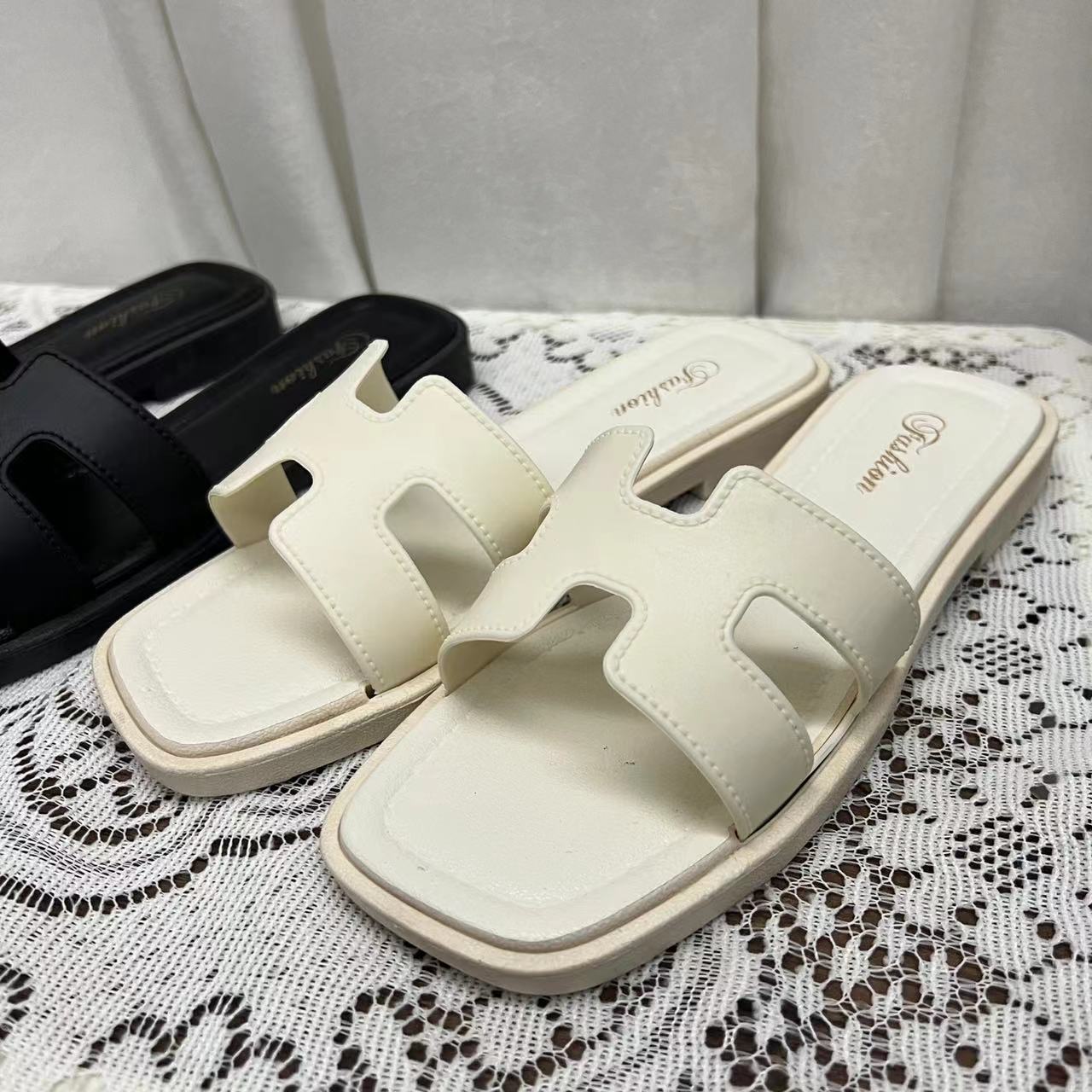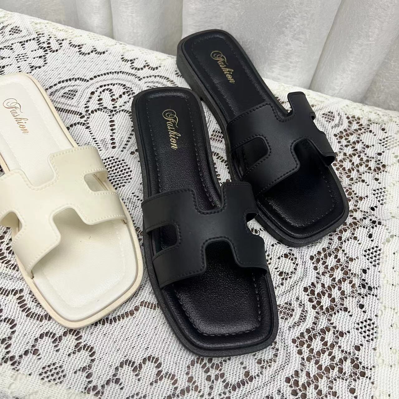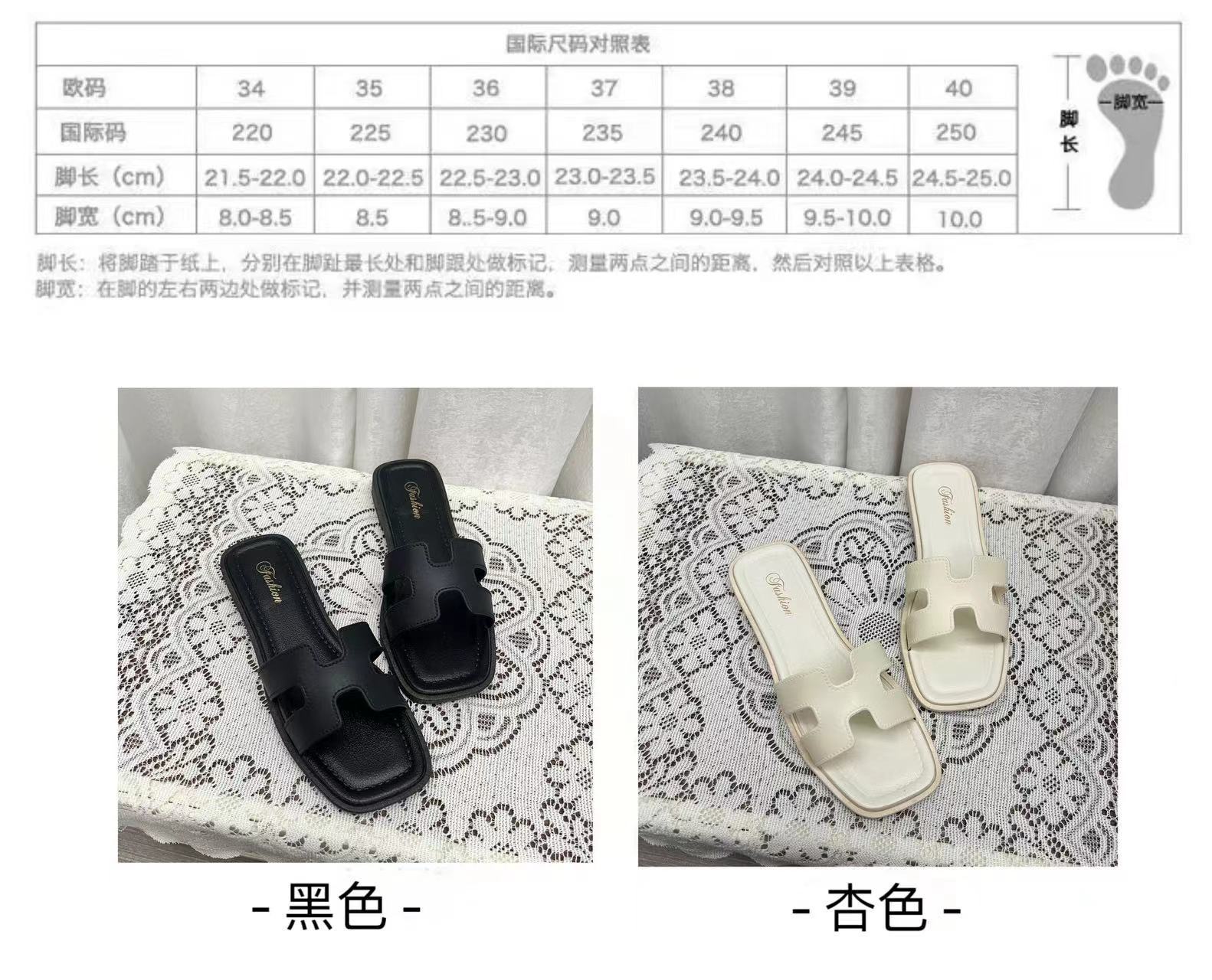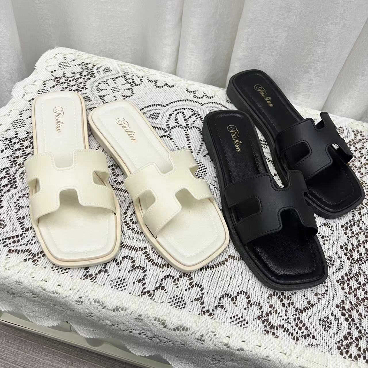 2024新款方头时尚百搭仙女风简约一字拖鞋平底罗马沙滩拖鞋女跨境