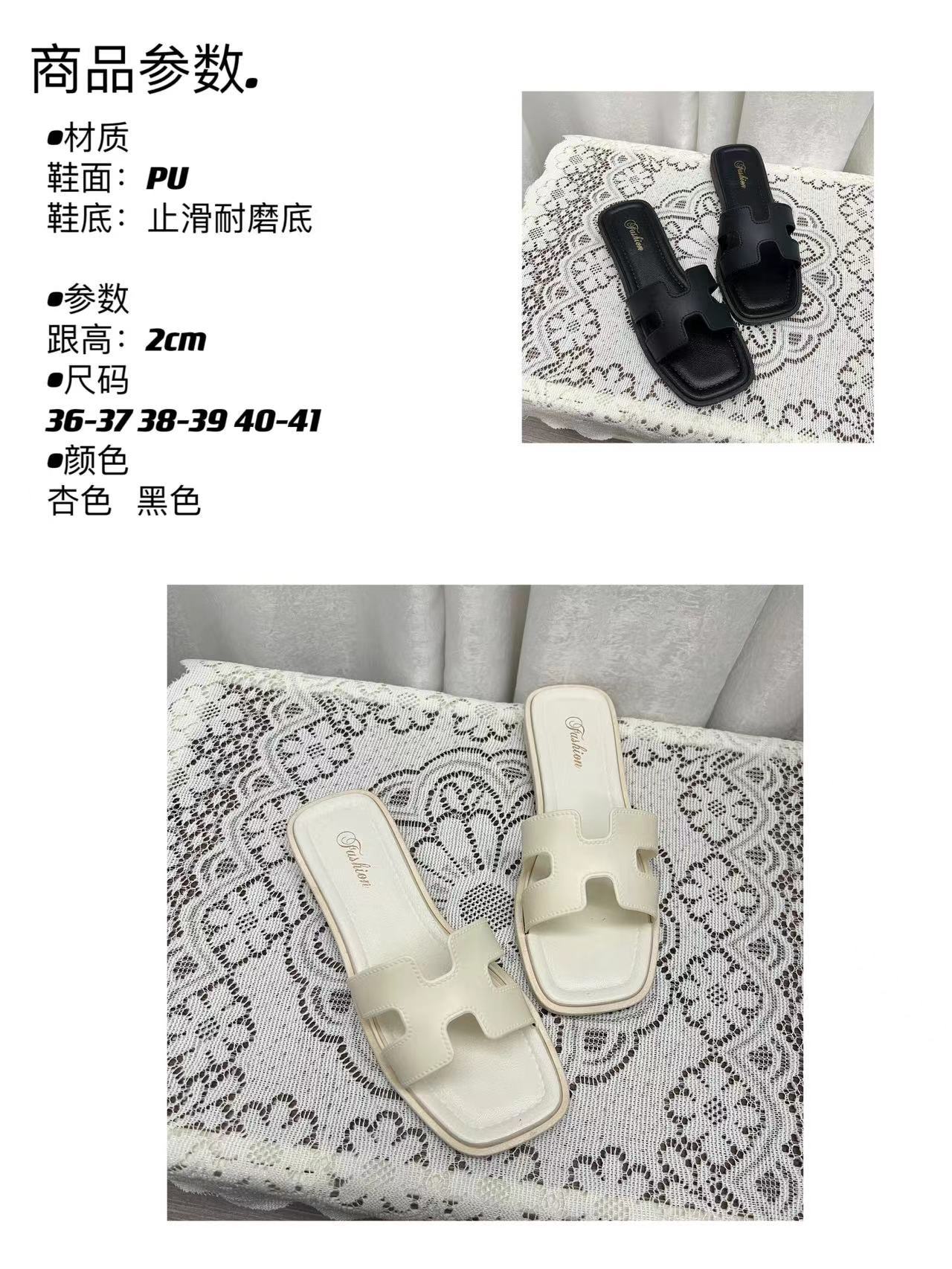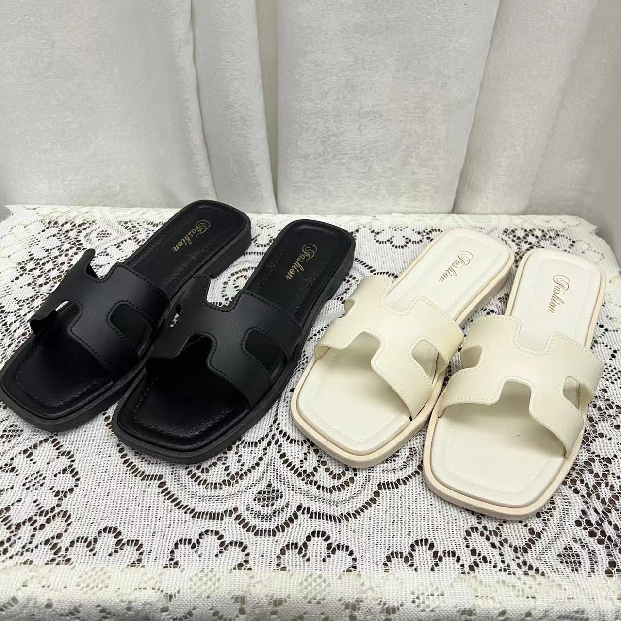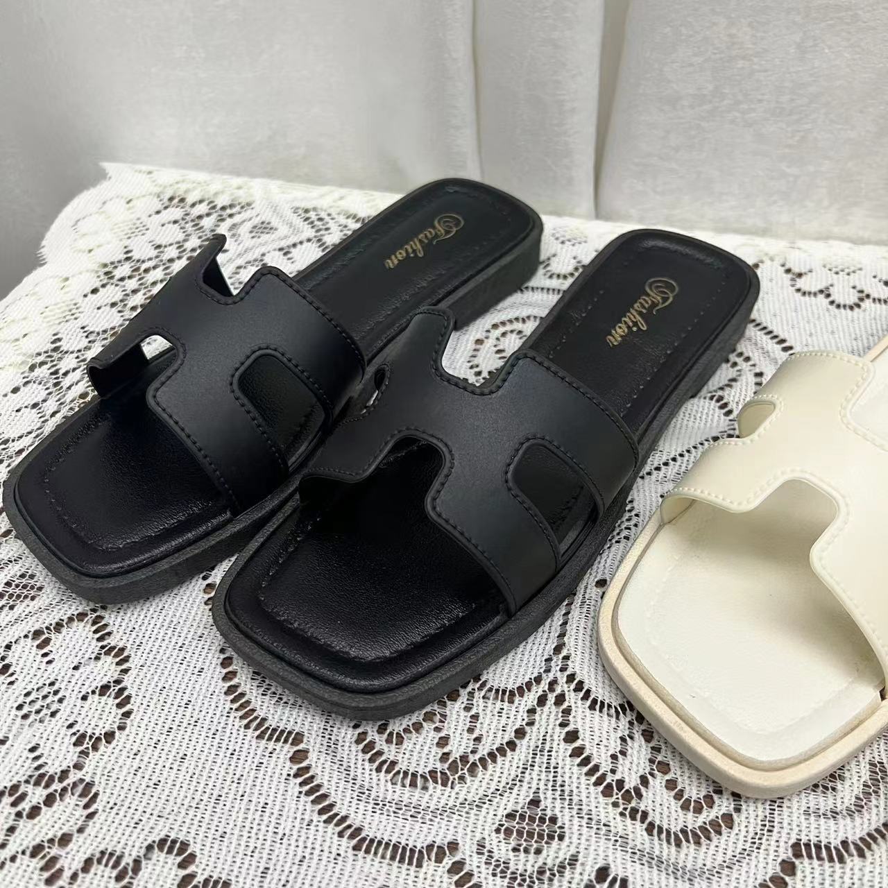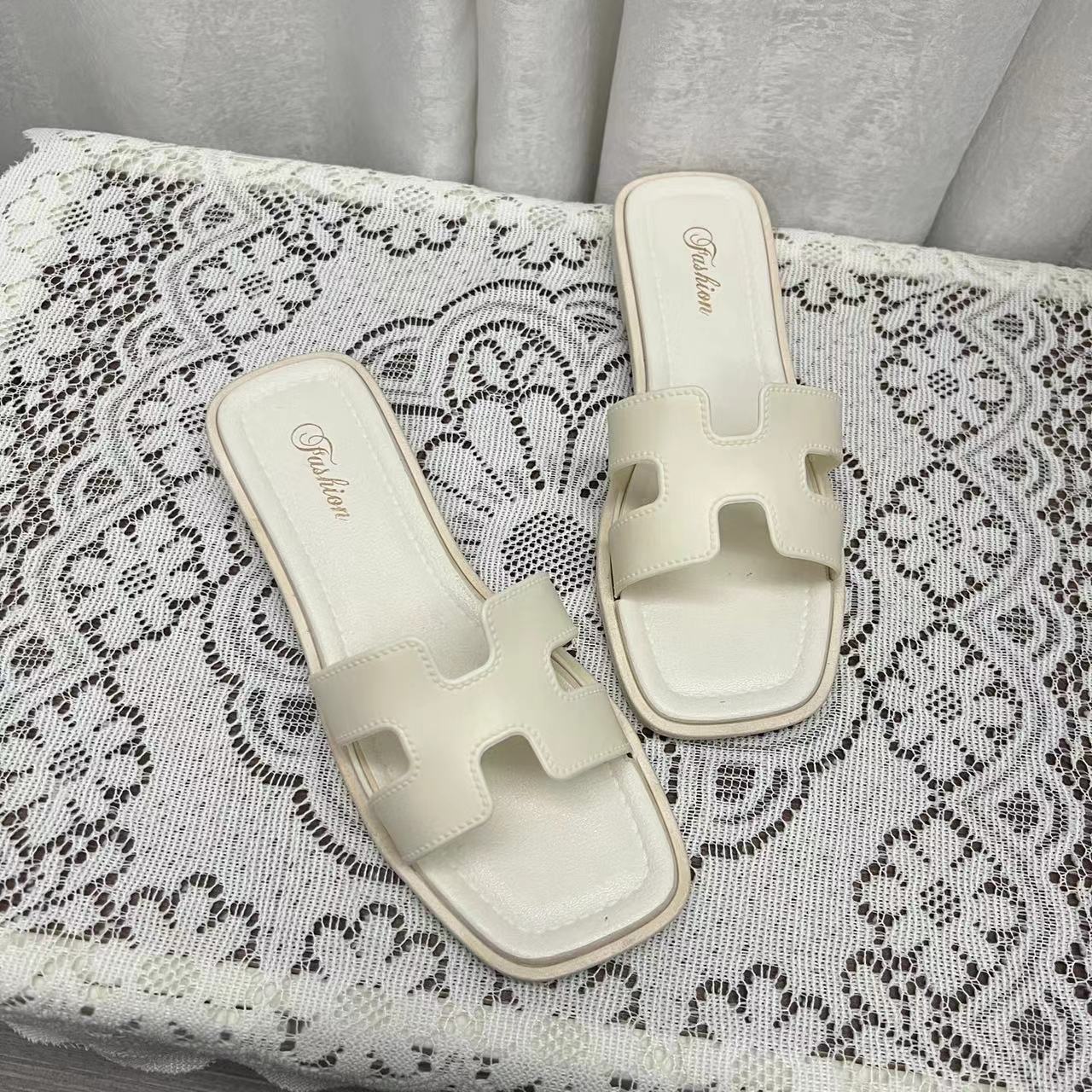 2024新款方头时尚百搭仙女风简约一字拖鞋平底罗马沙滩拖鞋女跨境