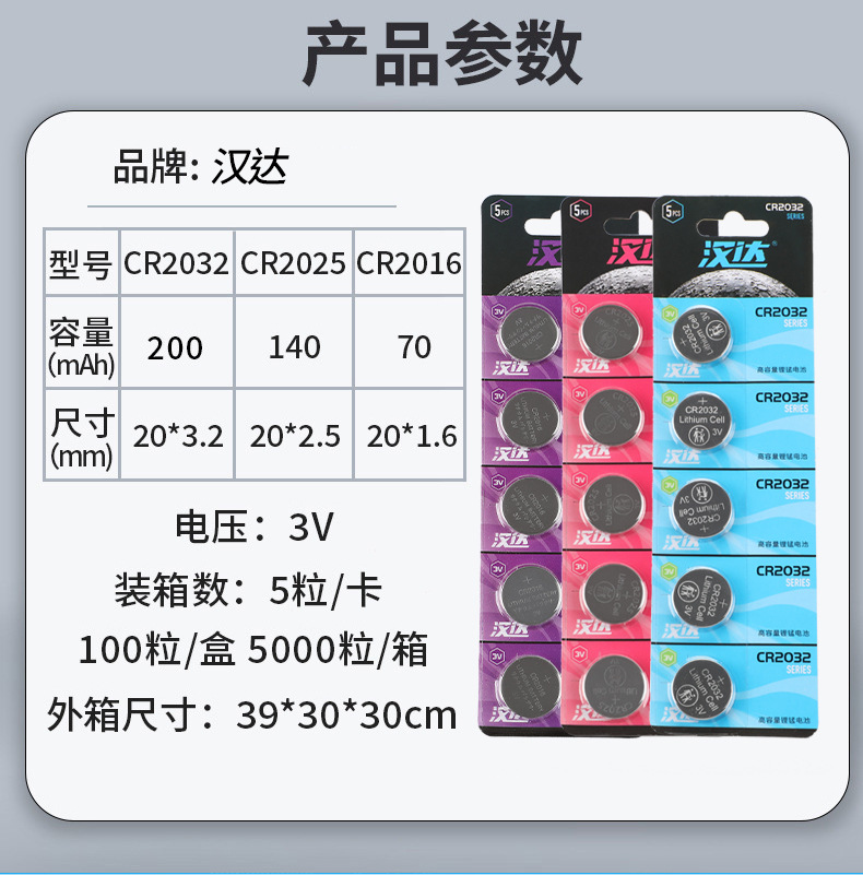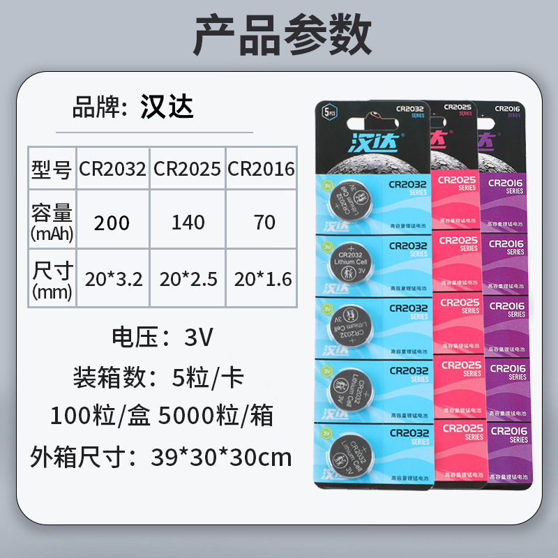 批发CR2032型号的纽扣电池3V汽车钥匙CR2025CR2016扣式锂锰电池