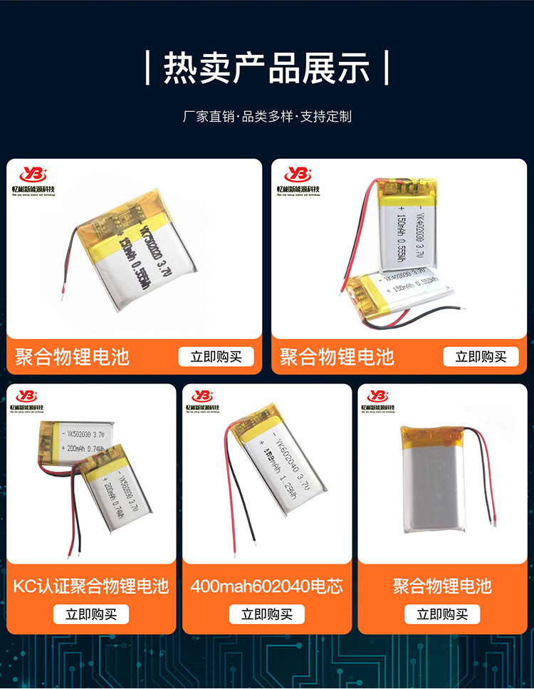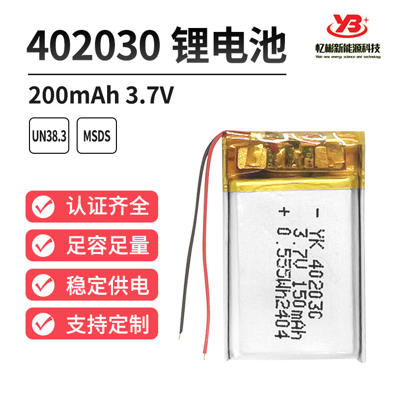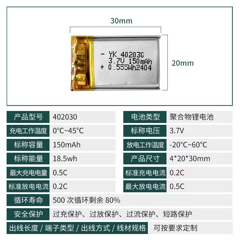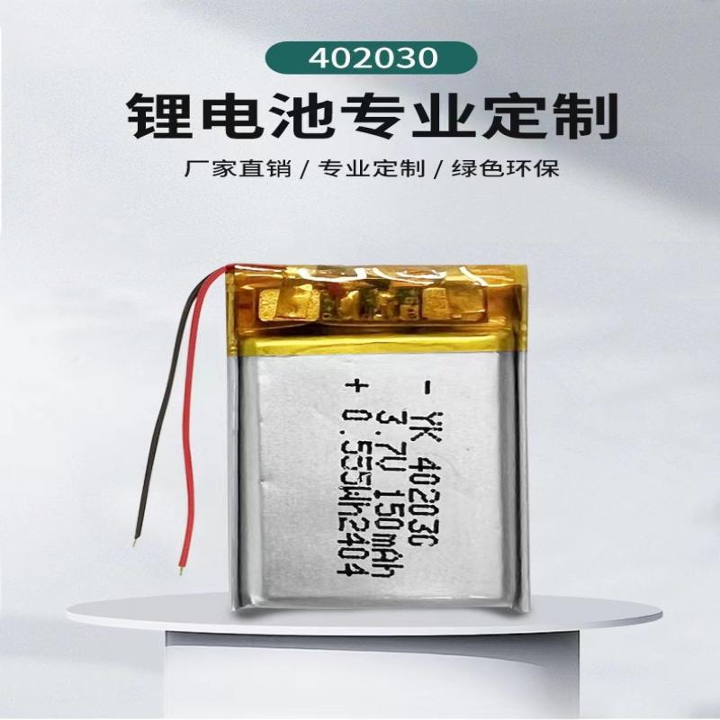 402030聚合物锂电池150mAh支持kc认证美容仪蓝牙音箱可充电锂电池