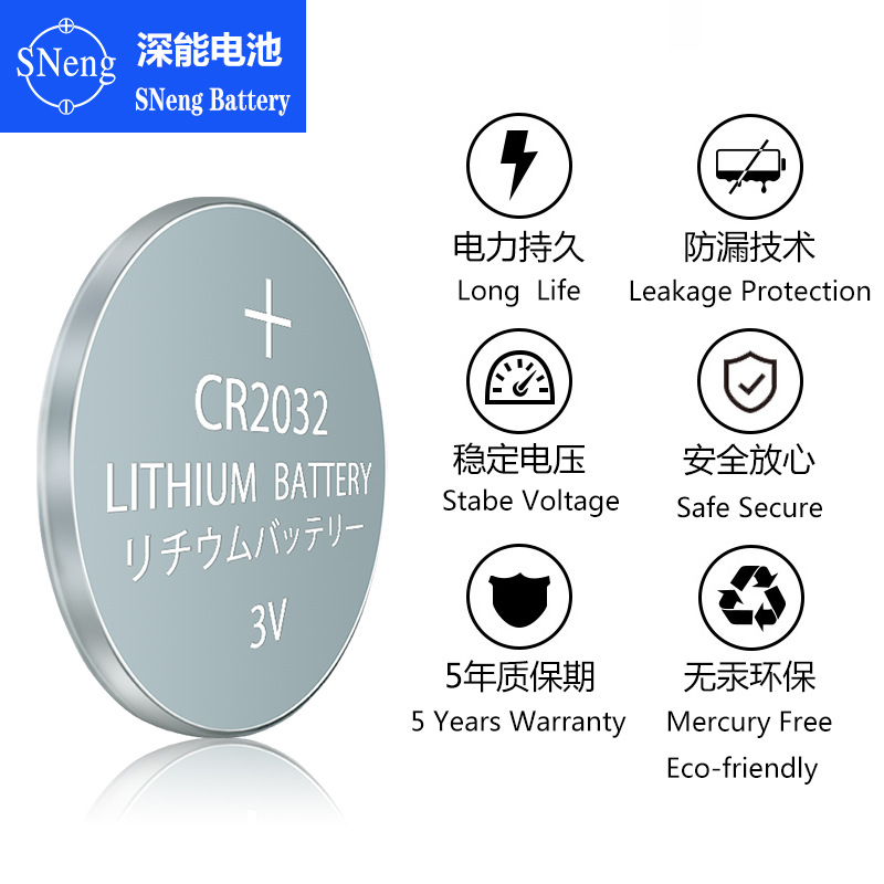 深圳深能环保3V锂离子纽扣电池CR2032摇控器玩具灯电子秤蜡烛灯
