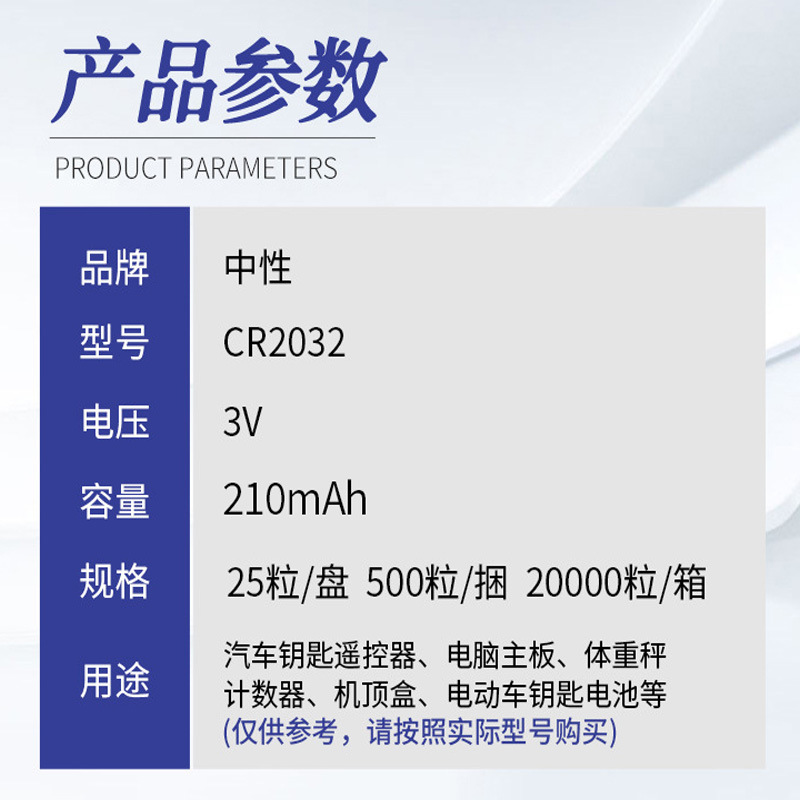 CR2032纽扣电池全系 散装CR2032体重秤串灯钮扣3V锂电池厂家批发