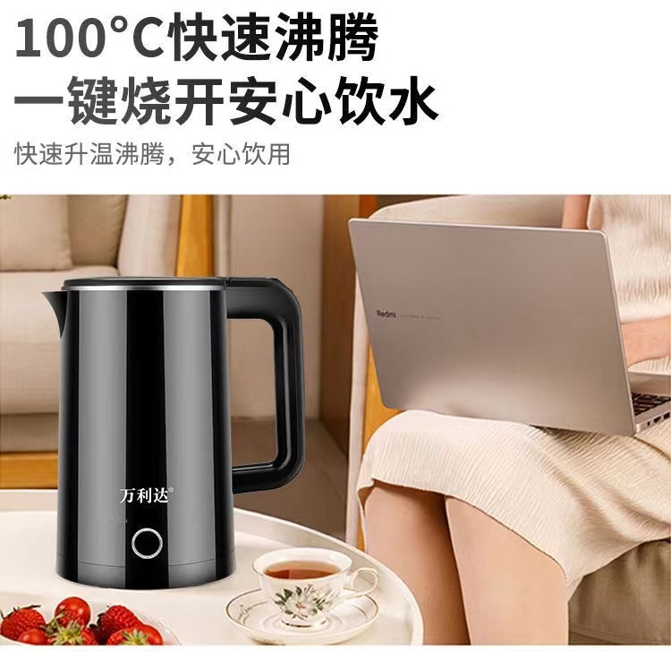 万利达电热水壶304大容量家用快速烧水壶礼品批发防烫自动断电